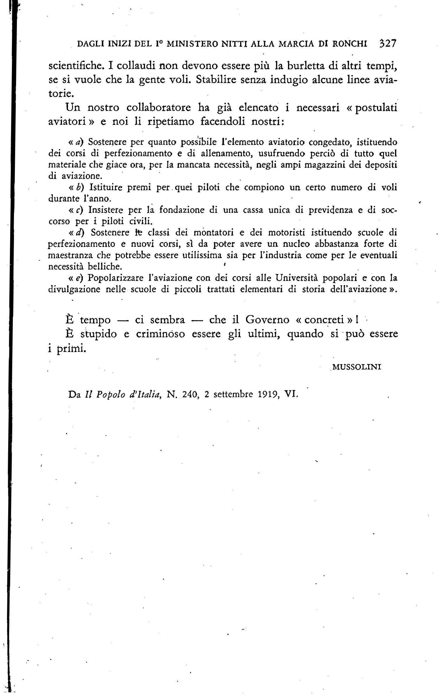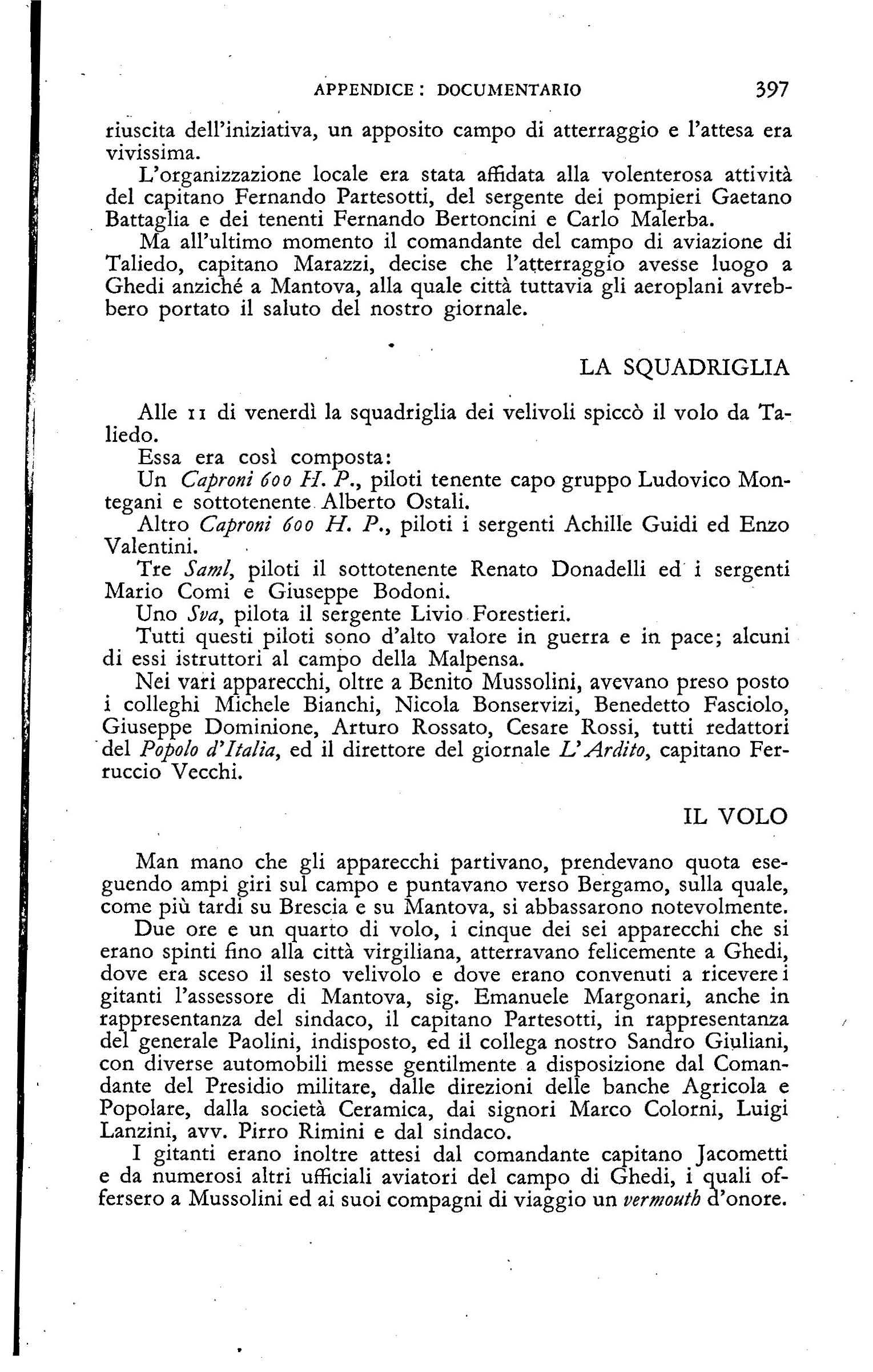 l o scritto anonimo contrassegnato con (q) è· attribuito a Benito Mussolini da Guido Mattioli i n: M11uolini aviatore - Casa editrice.Pind.:uu., Roma, 1936,