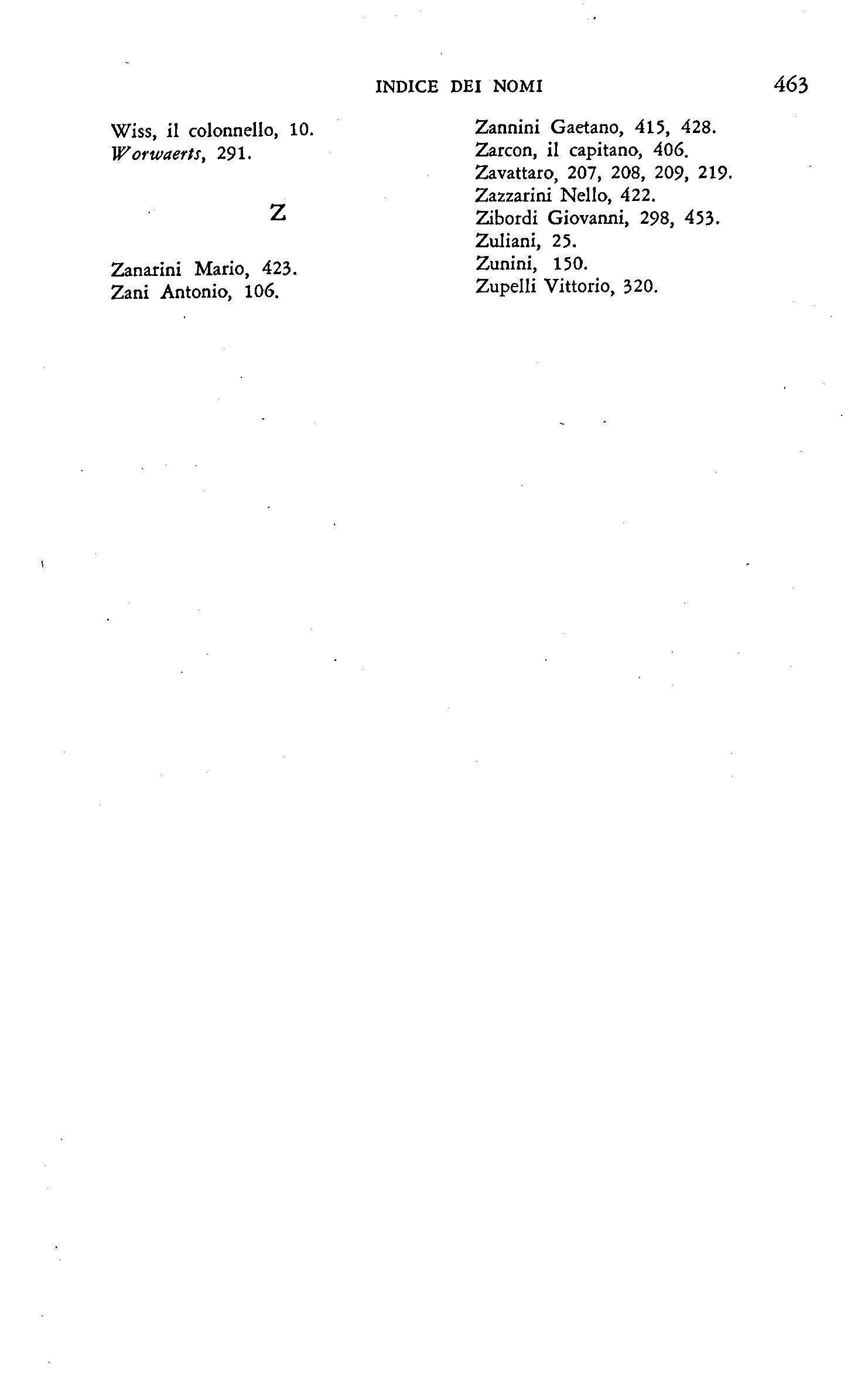 Zannini G aetano, 41~, 4 28, Zaccon, il capitano, 406.