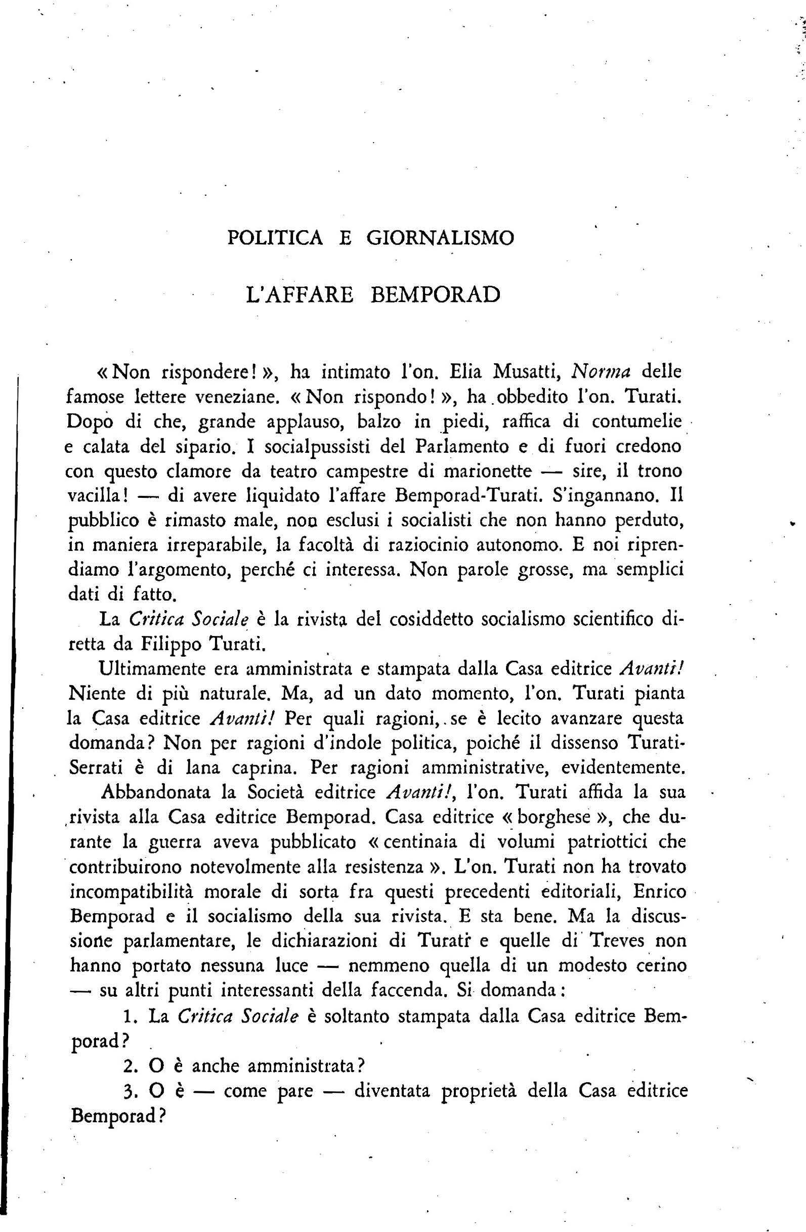Nel complesso, il discorso Turati, mentre approfondisce il solco fra ·socialisti e comunisti, aumenta il disagio tra transigenti ed iritransìgcrlti nel seno dello stesso Part ito Socialista.