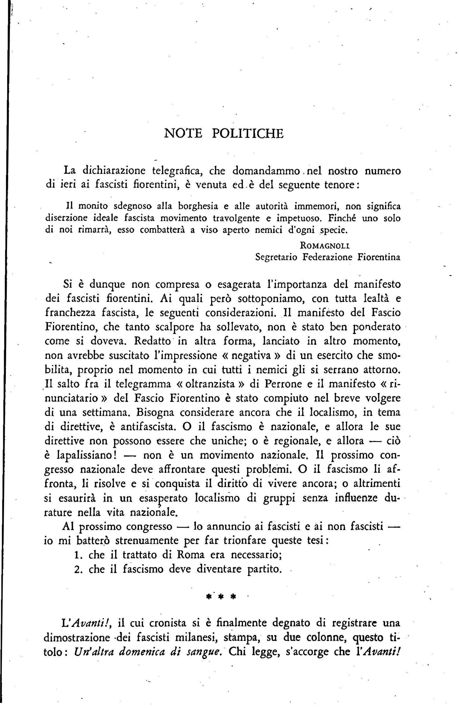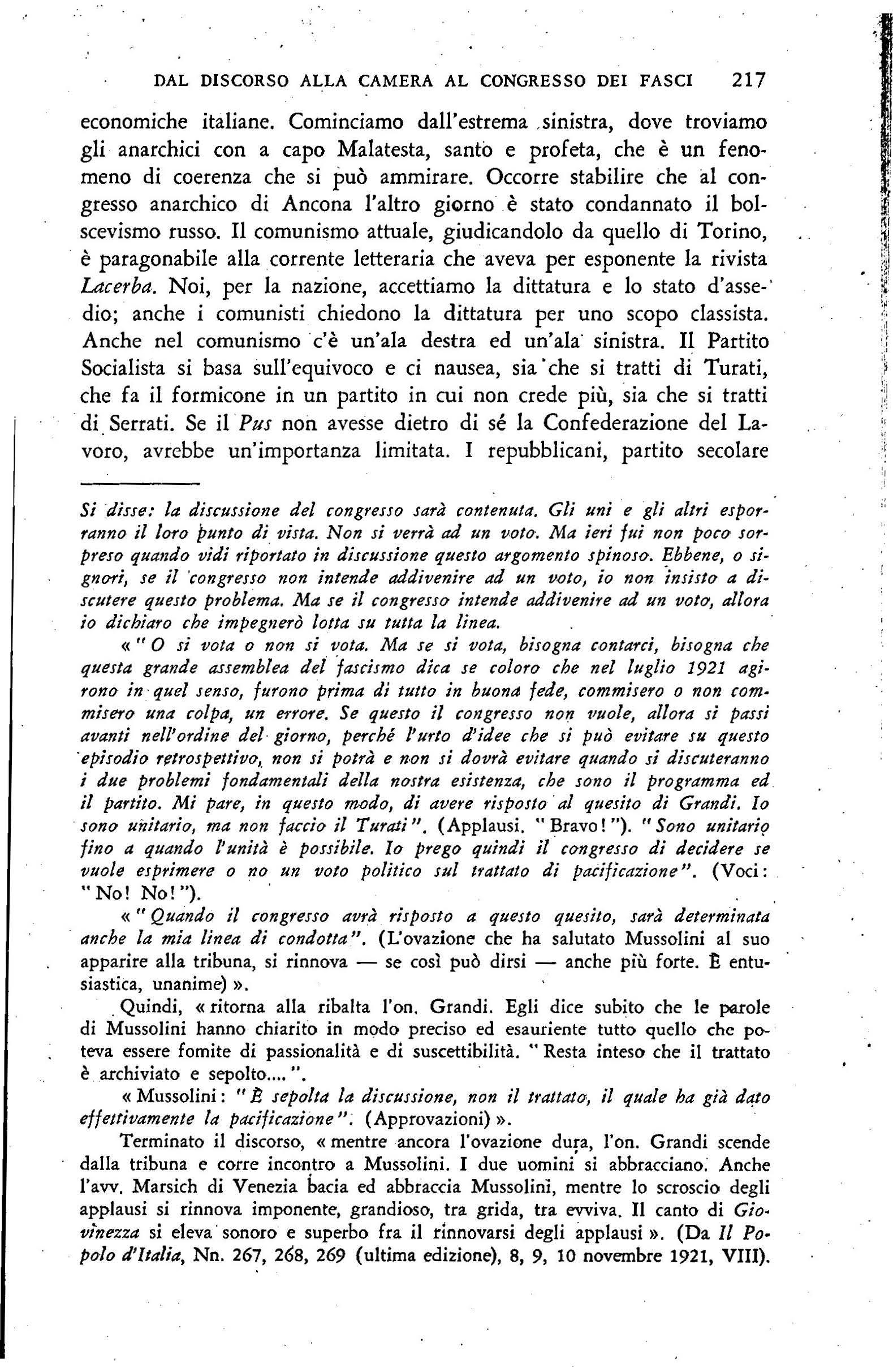 Lo scrilto anonimo contrassegnato con (p) è attribÙito a Benito Mussolini da G. A. CHIURCO in: $Joria della riw/1,1zione fasrisia (1919,1922), voi. lllVallecchi, Firenze, 1929.
