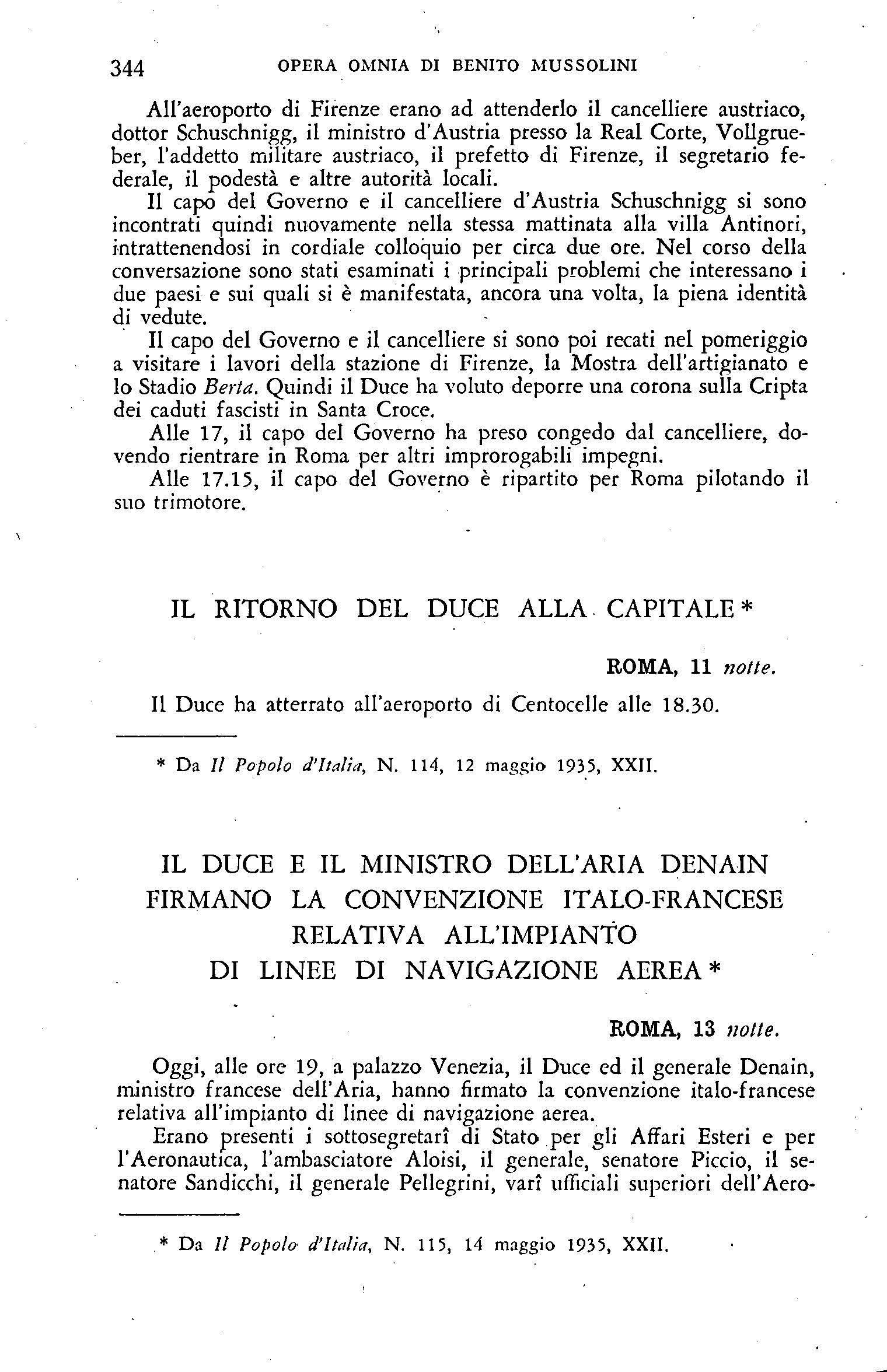 Mussoli ni g iunge in volo a Firenze pilotando il suo trimot~re. Cordiale colloquio di circa due ore· con il cancelliere d'Austria (12 maggio 1935)