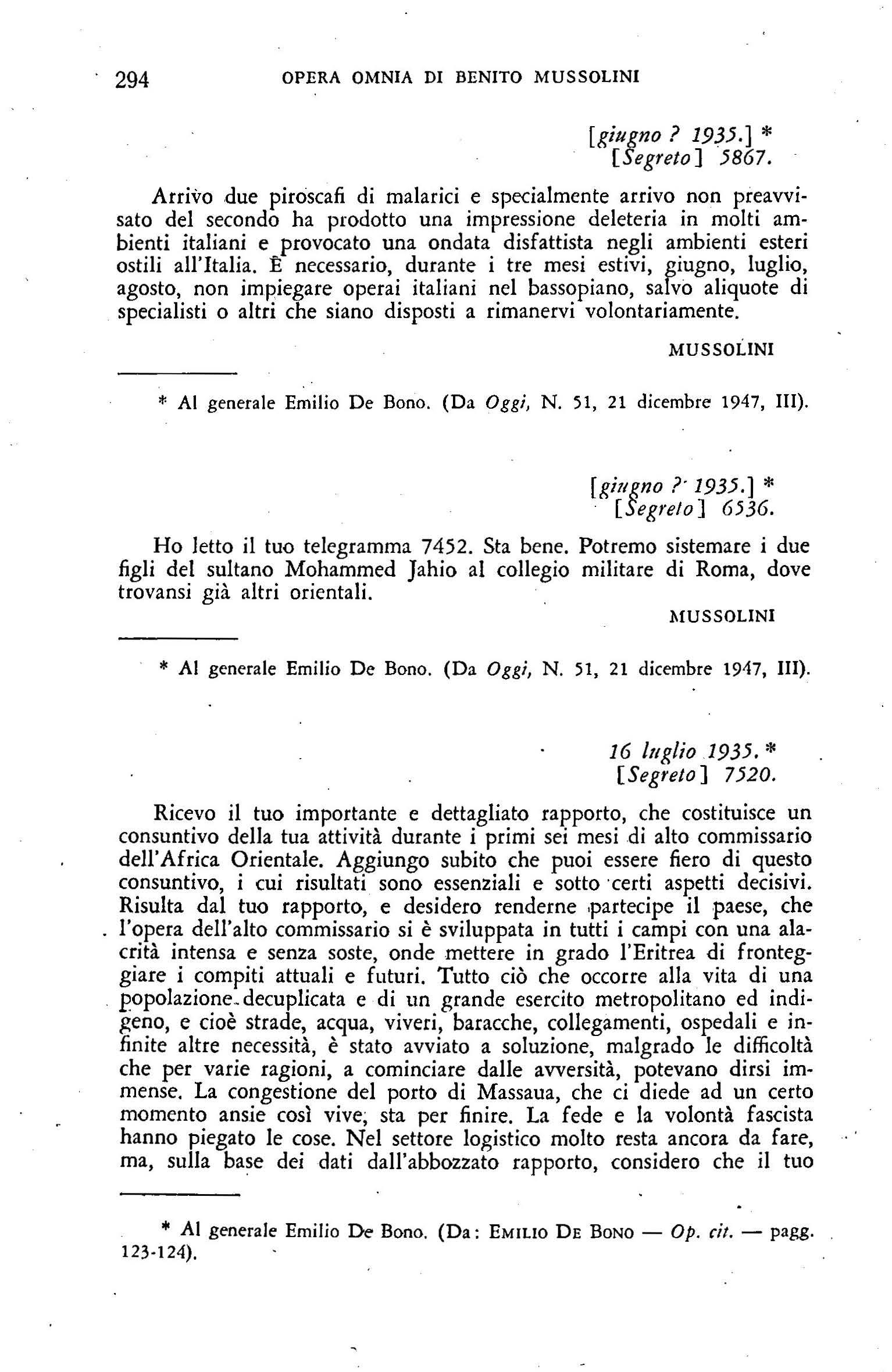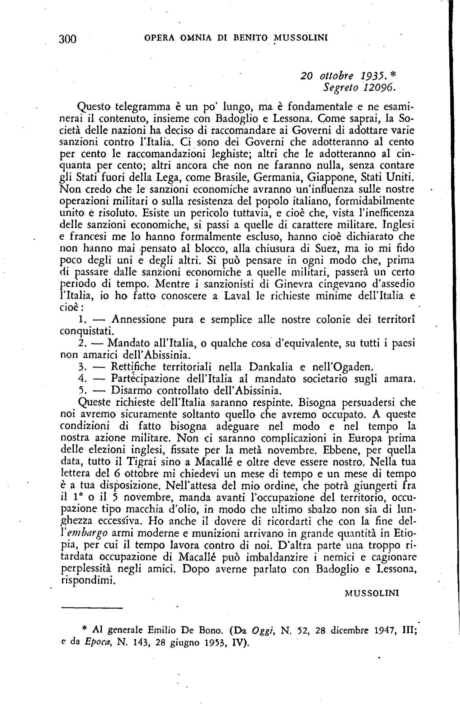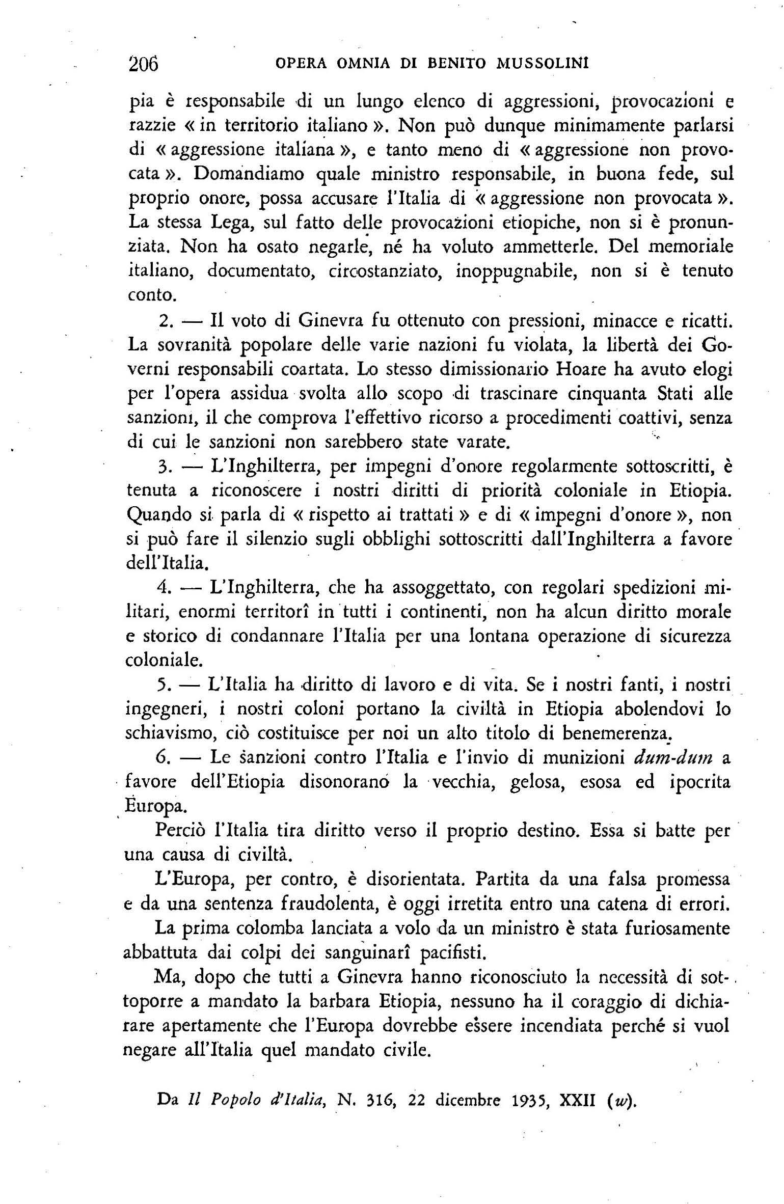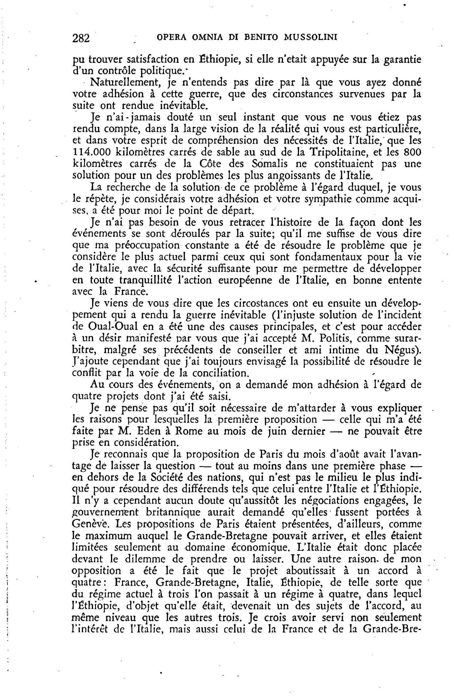 La conclusione dei co lloqui Mussolini-Eden. Possibilità d i sv iluppi d ell 'intesa italo-franco-ing lese. La questione etiopica esaminata nei suoi termini attual i (26 giugno 1935)