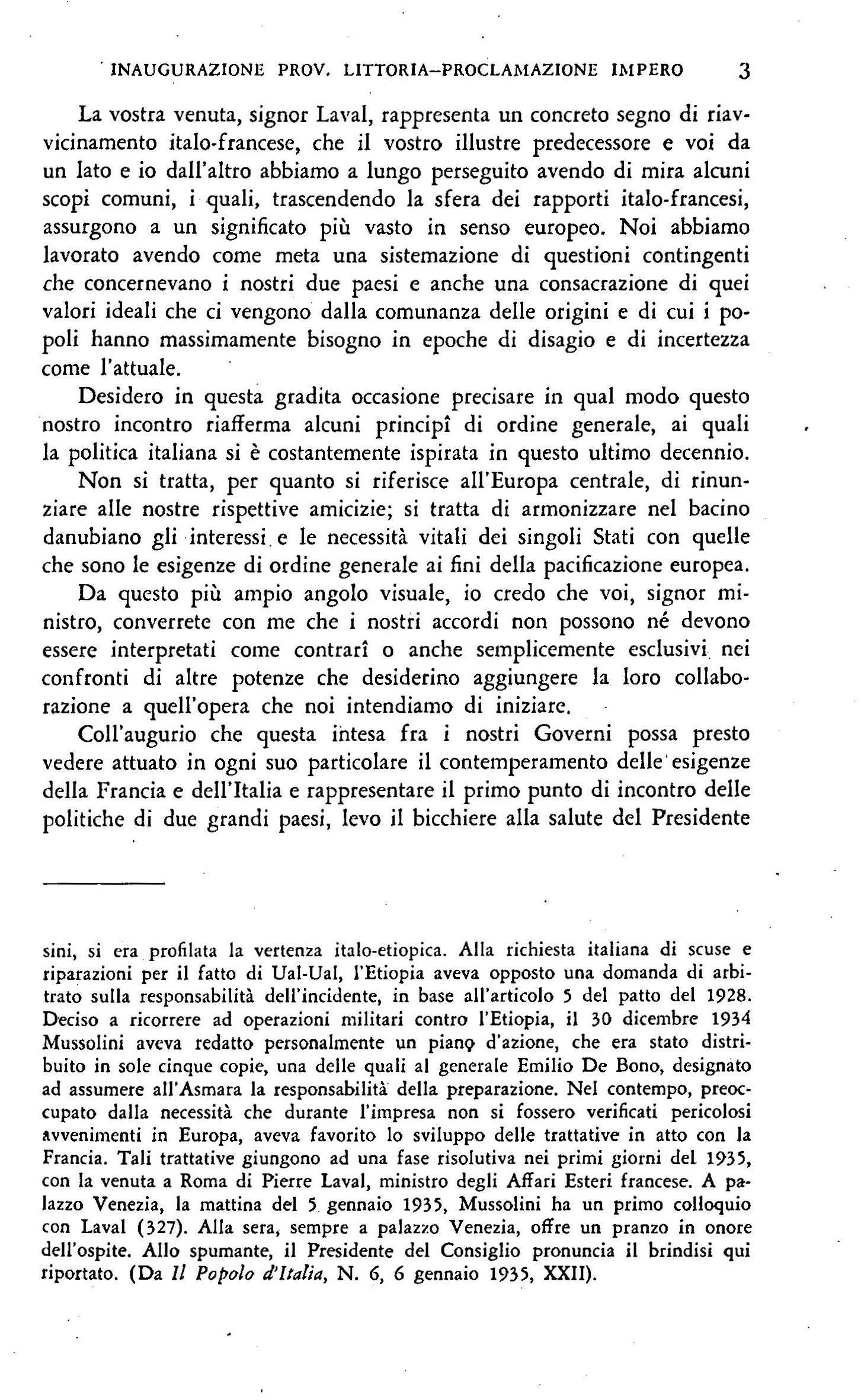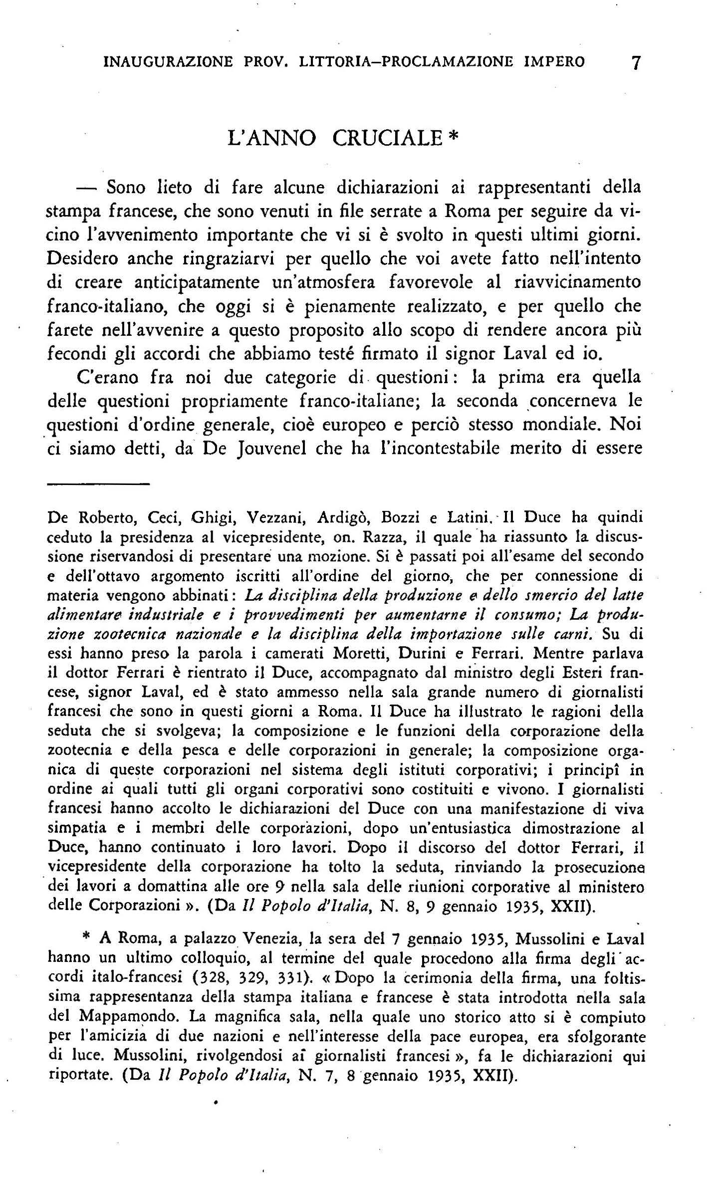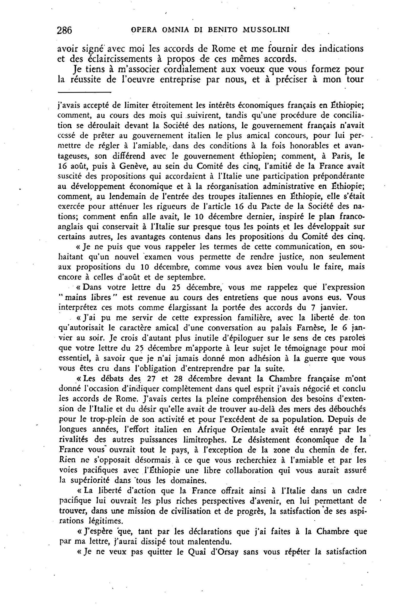 Gli accordi italo-fraflcesi. Il testo della dichiarazione generale firmata da Mussolini e Lavai sul consolidamento dell'amicizia e sulla piena cooperazione fra i due paesi (12 gennaio 1935)