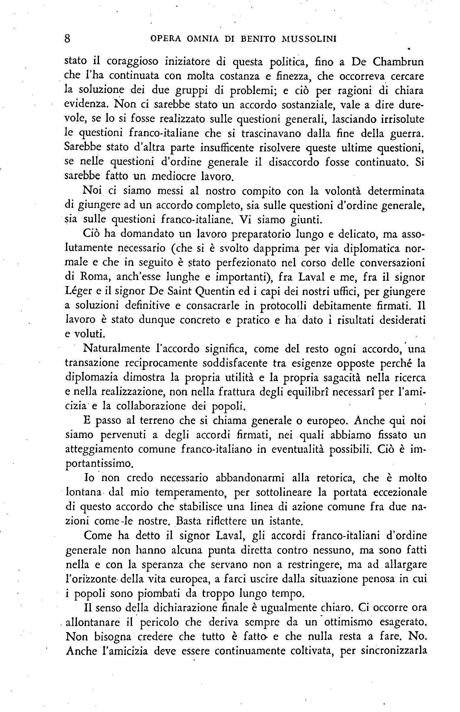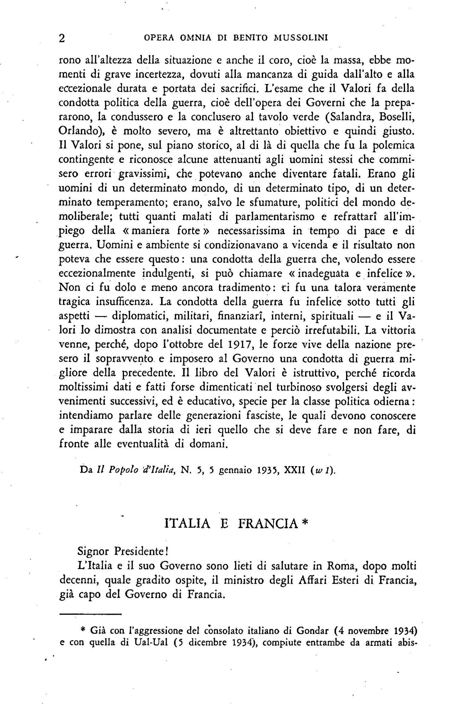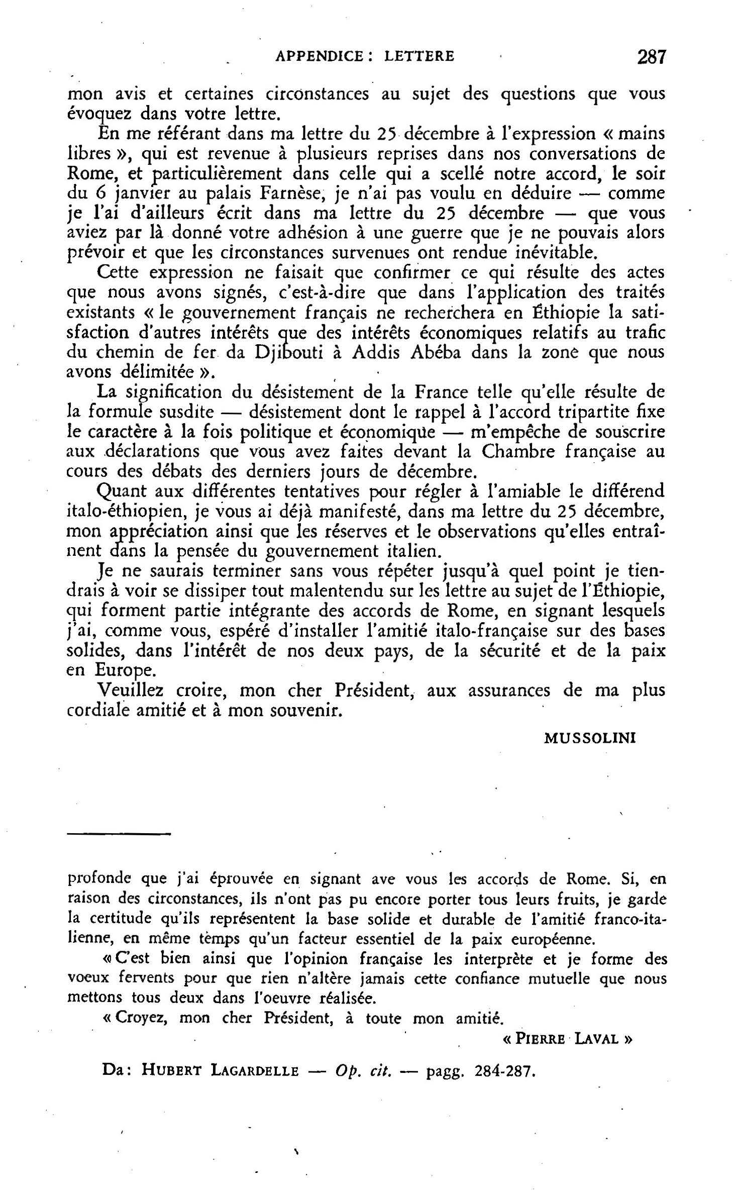 Gli accordi italo-fraflcesi. Il testo della dichiarazione generale firmata da Mussolini e Lavai sul consolidamento dell'amicizia e sulla piena cooperazione fra i due paesi (12 gennaio 1935)