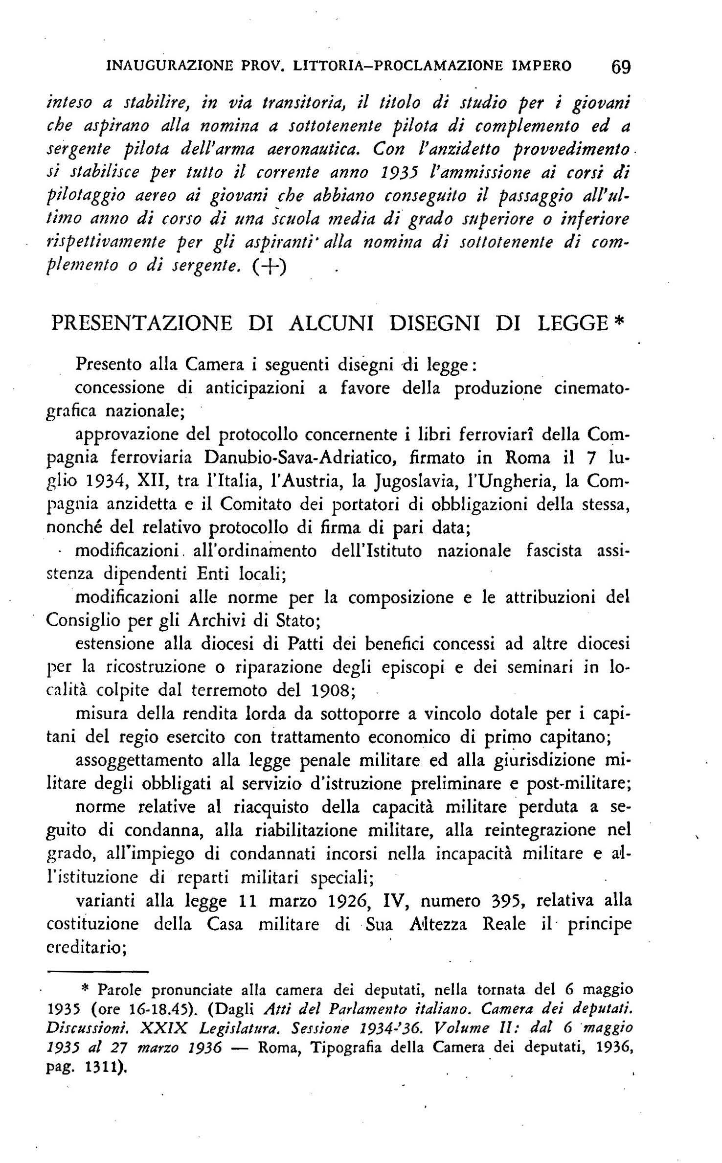 Presentazione di alcuni disegni J i legge (7 maggio 1935)