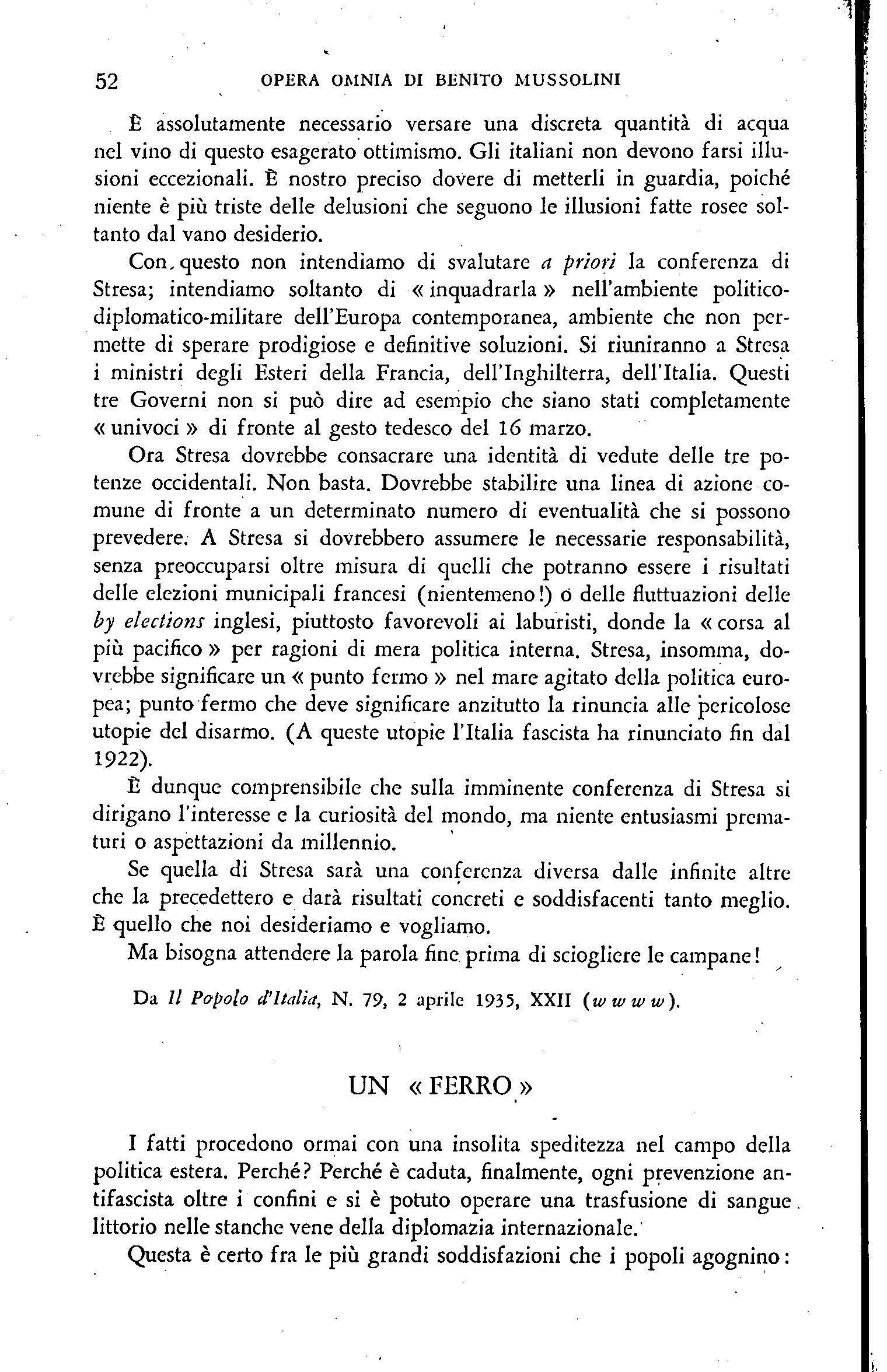 La. felice conclusione della conferenza internazionale di Stresa. L'aècordo delle tre nazioni (16 apri.le 1935). . . .