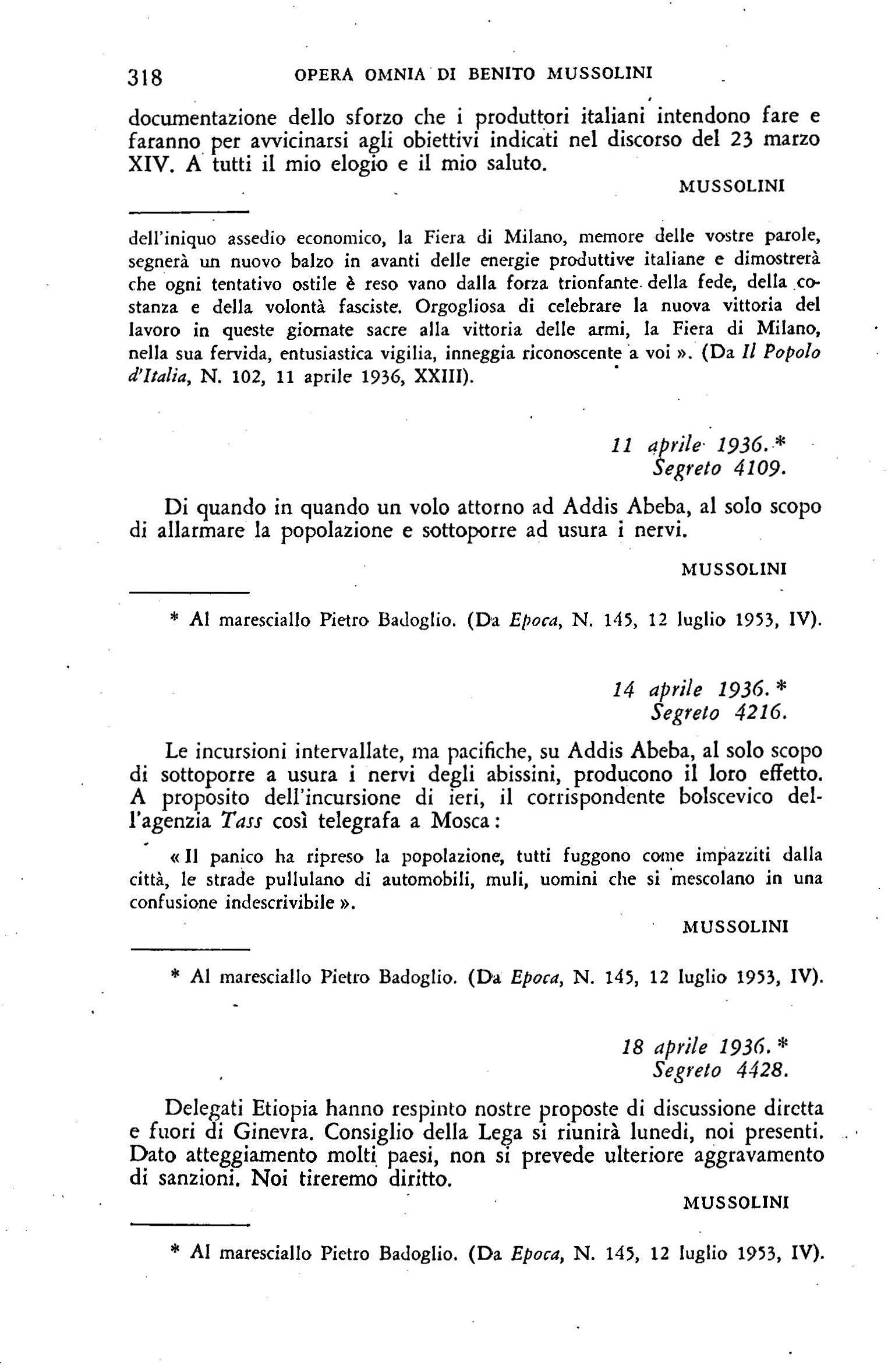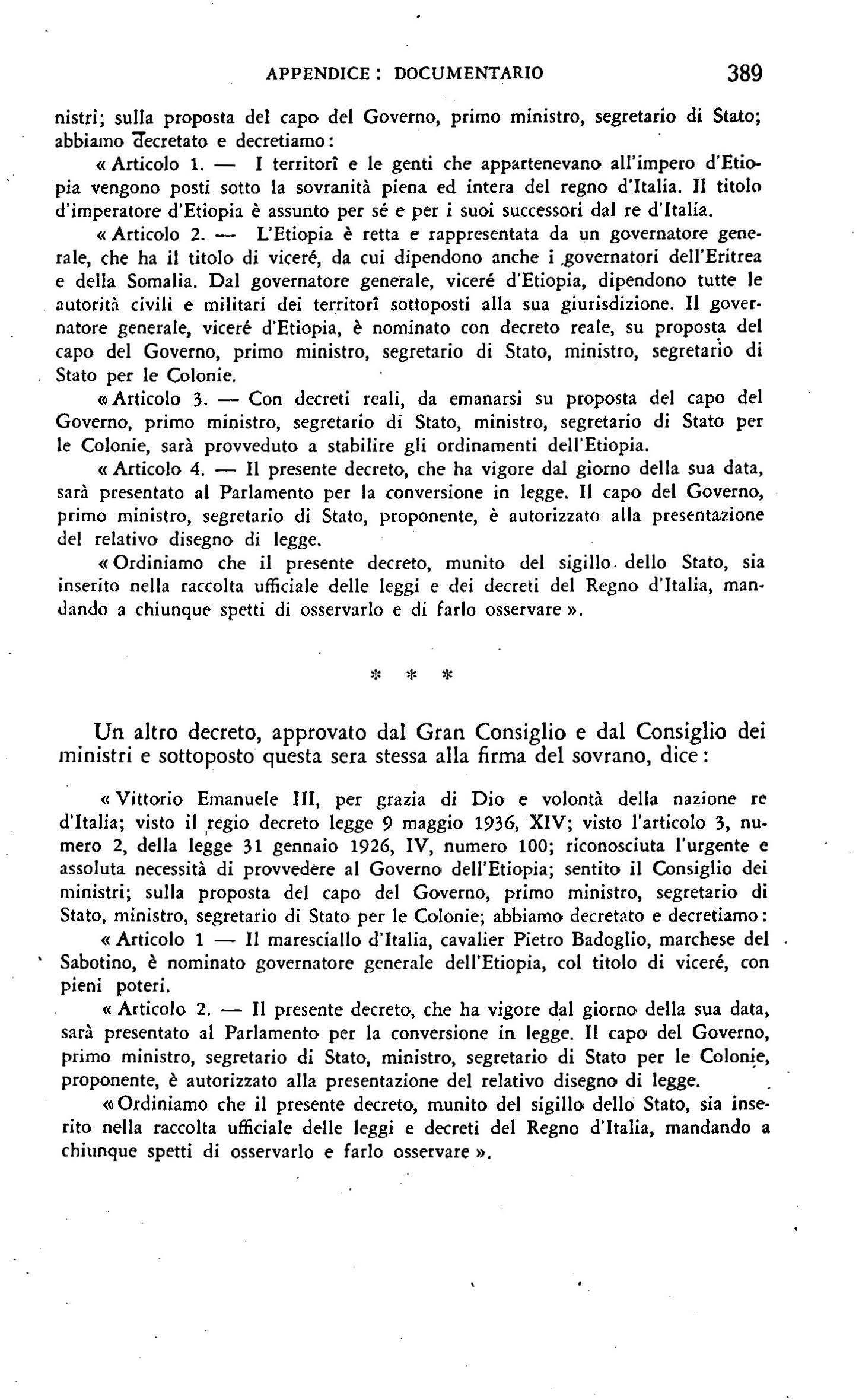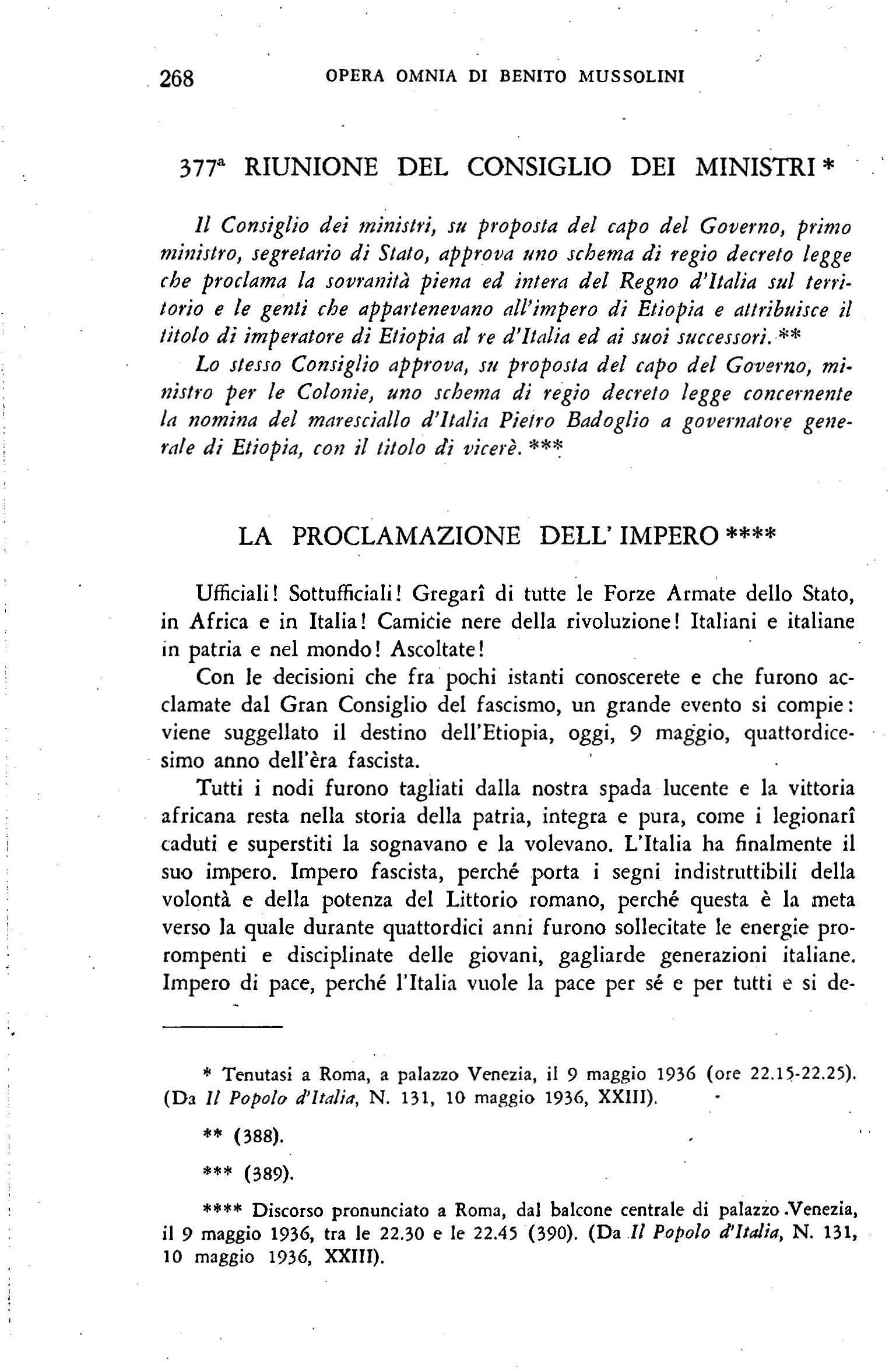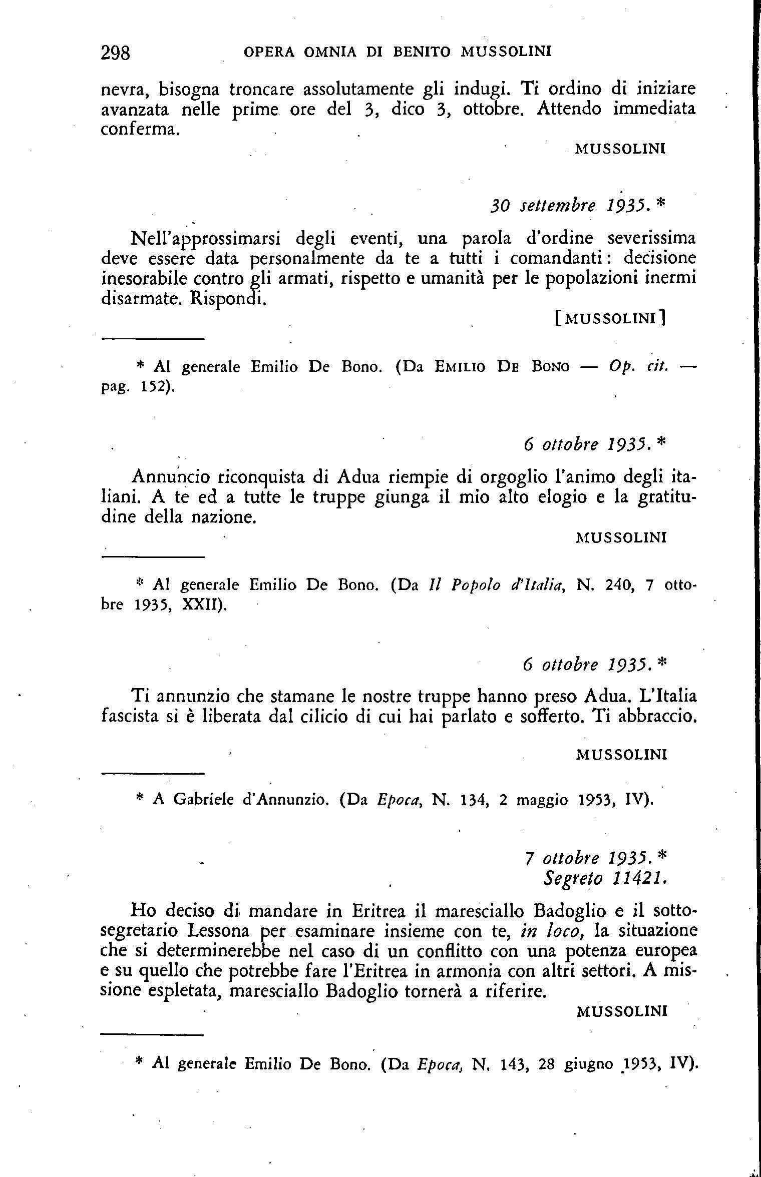 De Bono additato alla g rati tudine della nazione per l'opera compiuta e promosso maresciallo d'Italia. La nomina di Sua Eccellenza Badoglio ad alto comm issario per l'Africa Orienta le ( 17 novembre 1935) ,