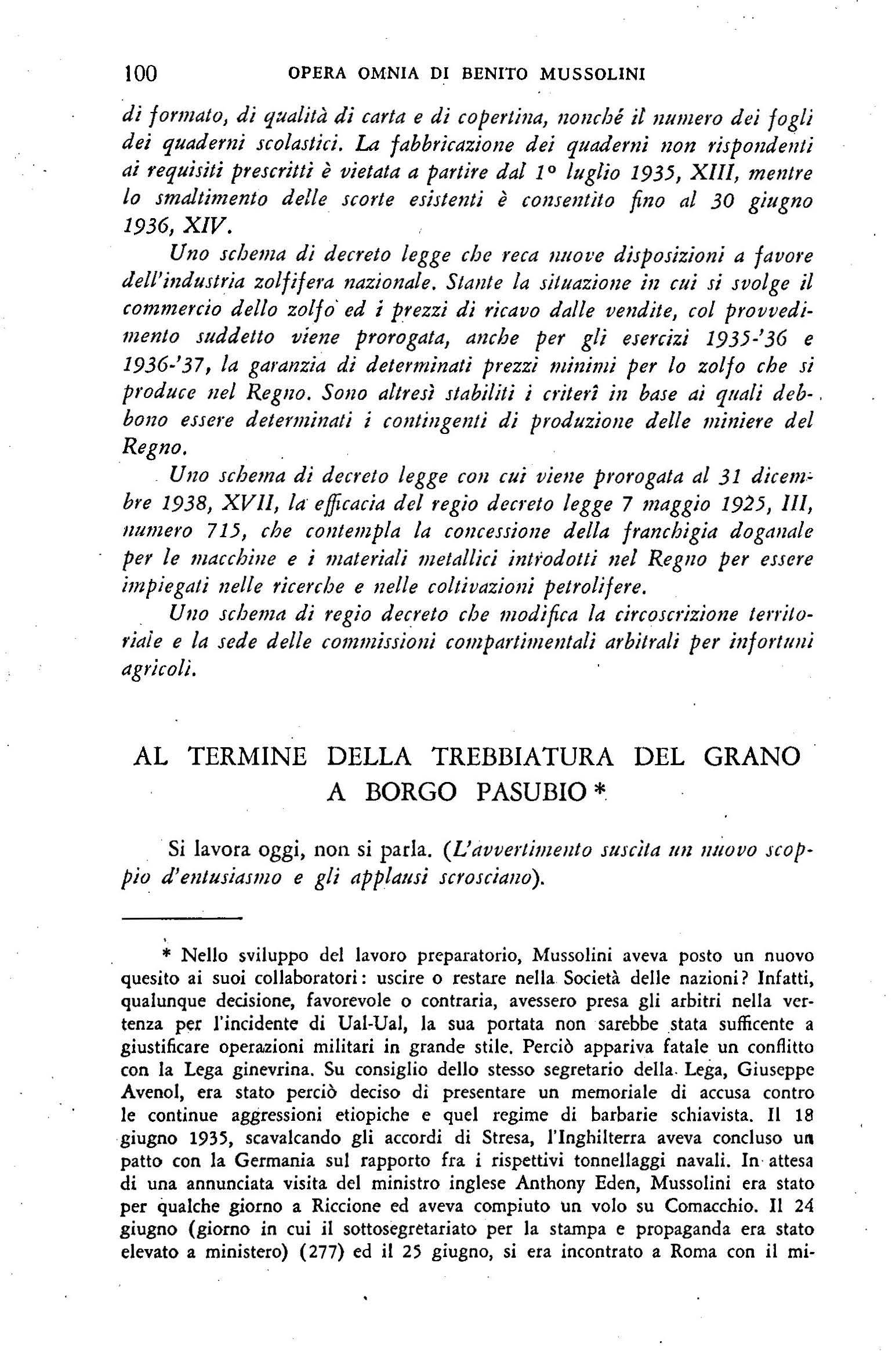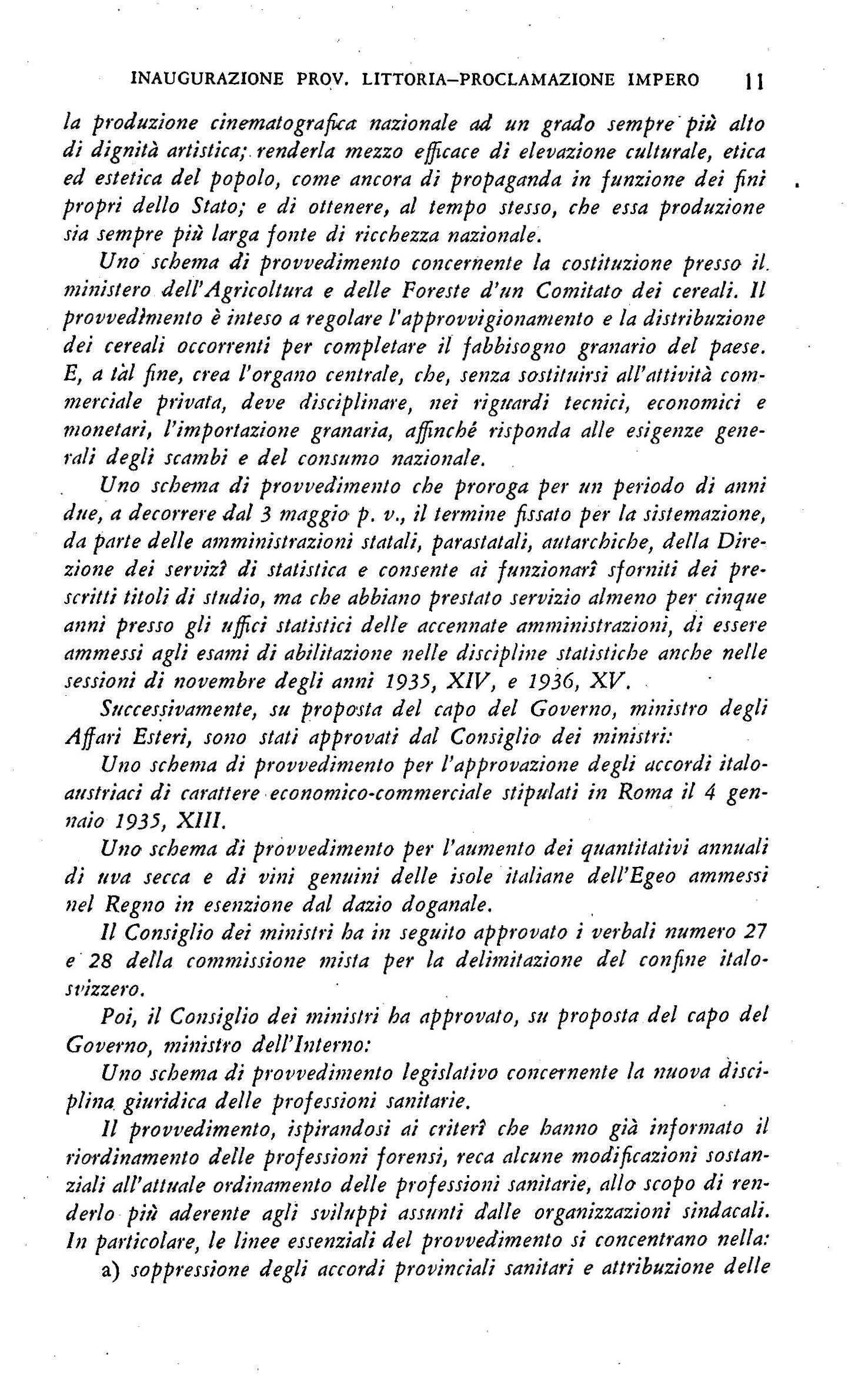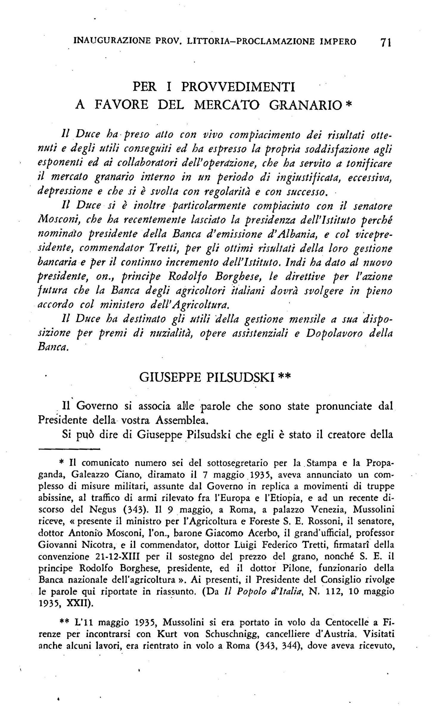 Per i provvedimenti a favore del mercato granario (9 maggio 1935) .