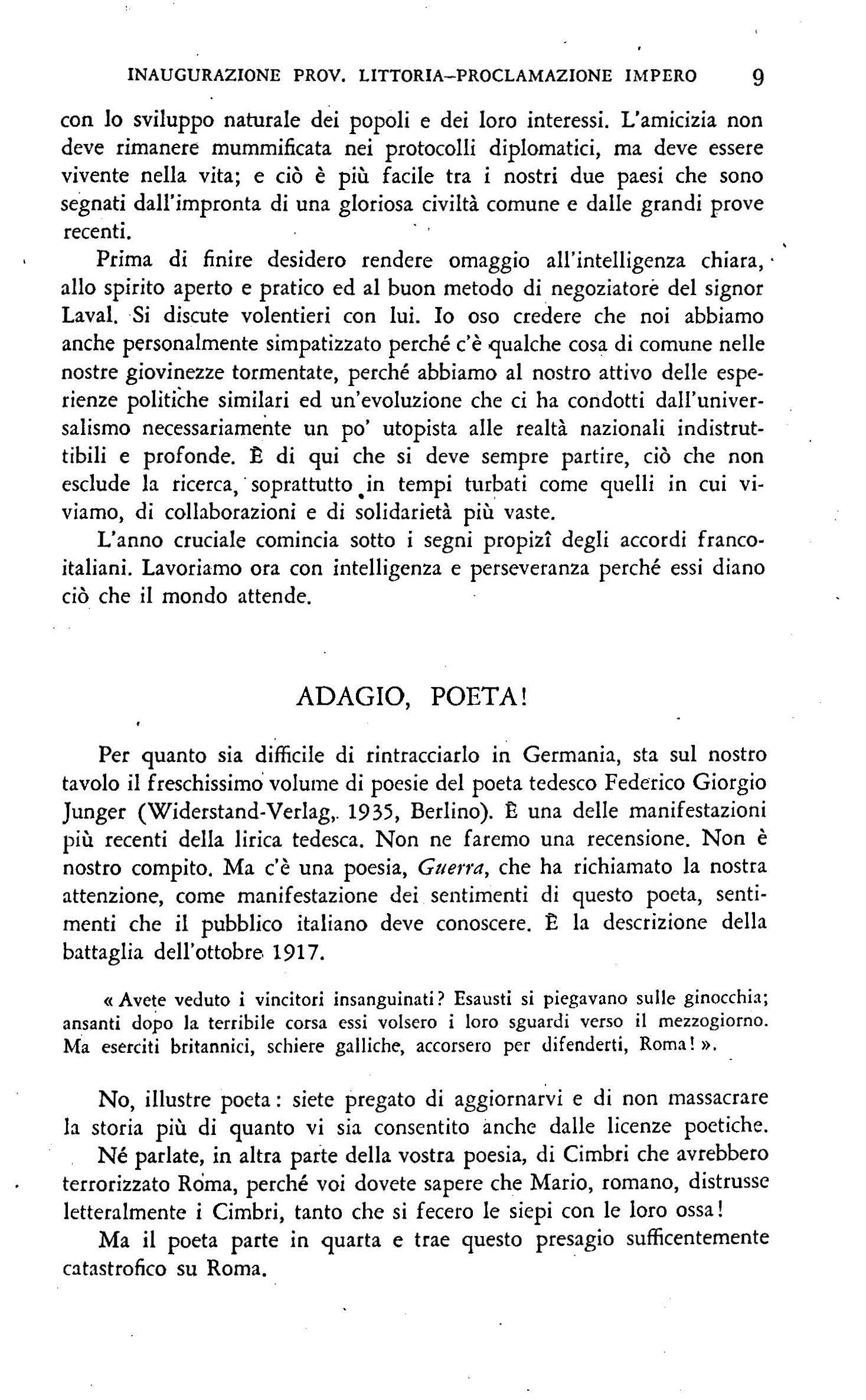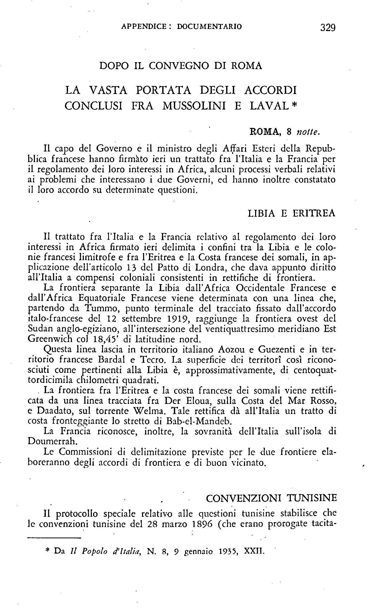D opo il convegno di Roma. La vasta portata degli accordi conclusi fra Mussolini e Lavai (9 gennaio 1935) . . .