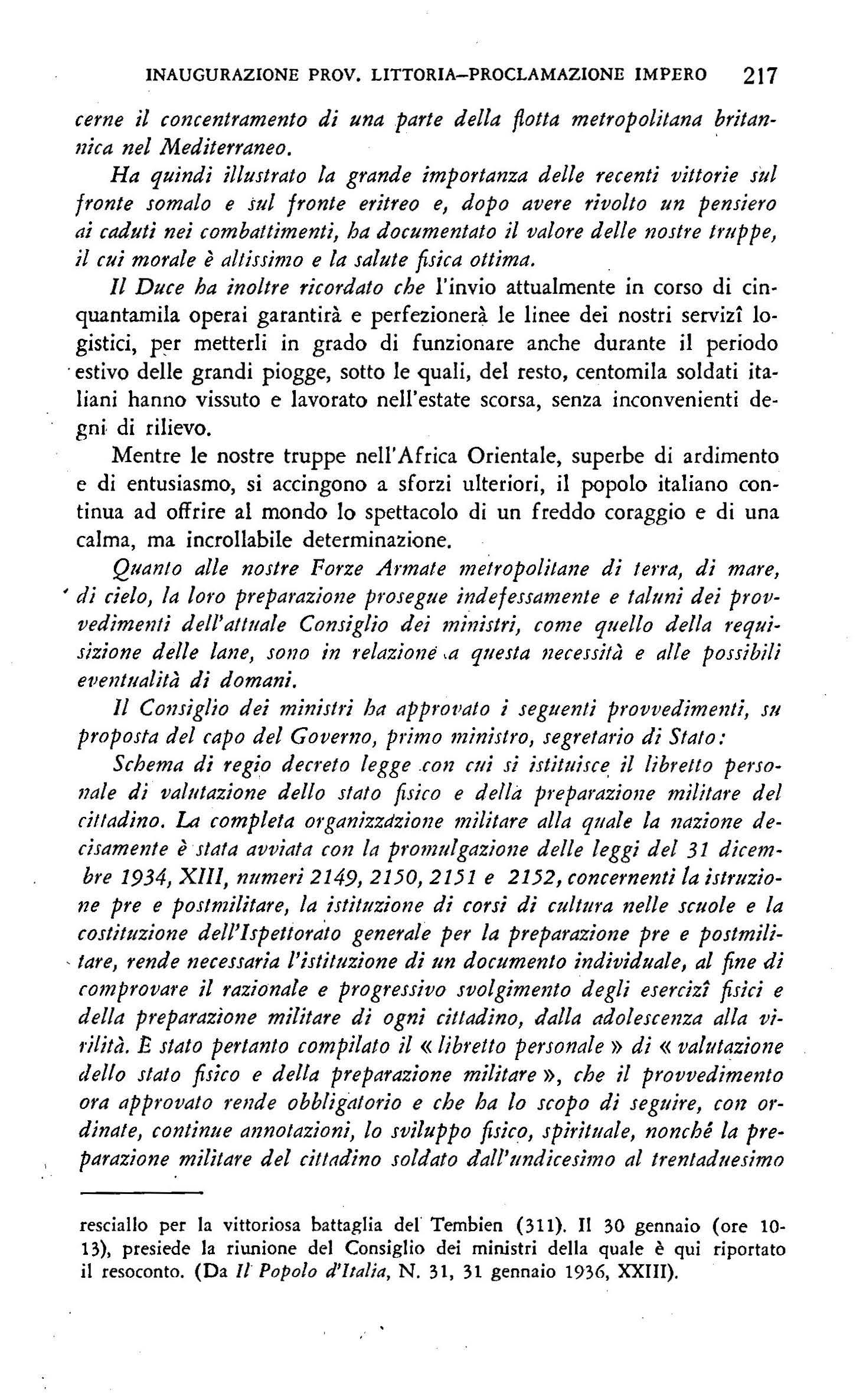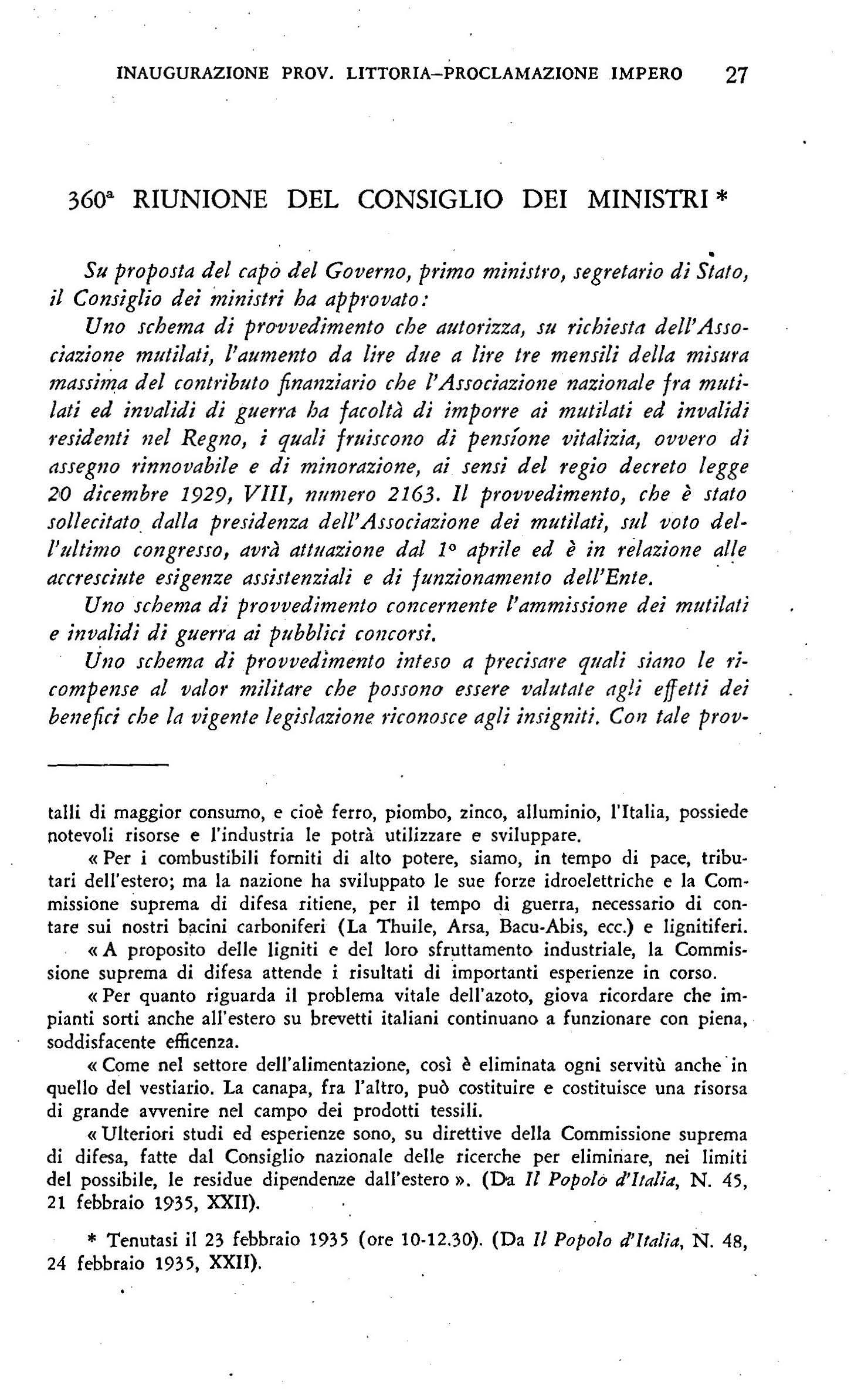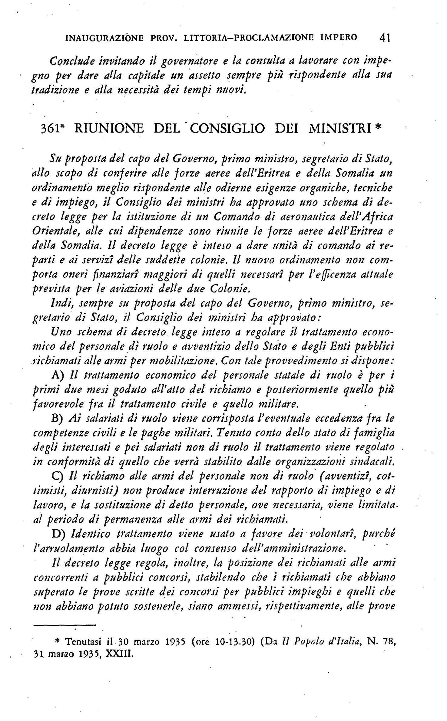 36P· riunione del Consiglio dei ministri (30 marzo 1935) .