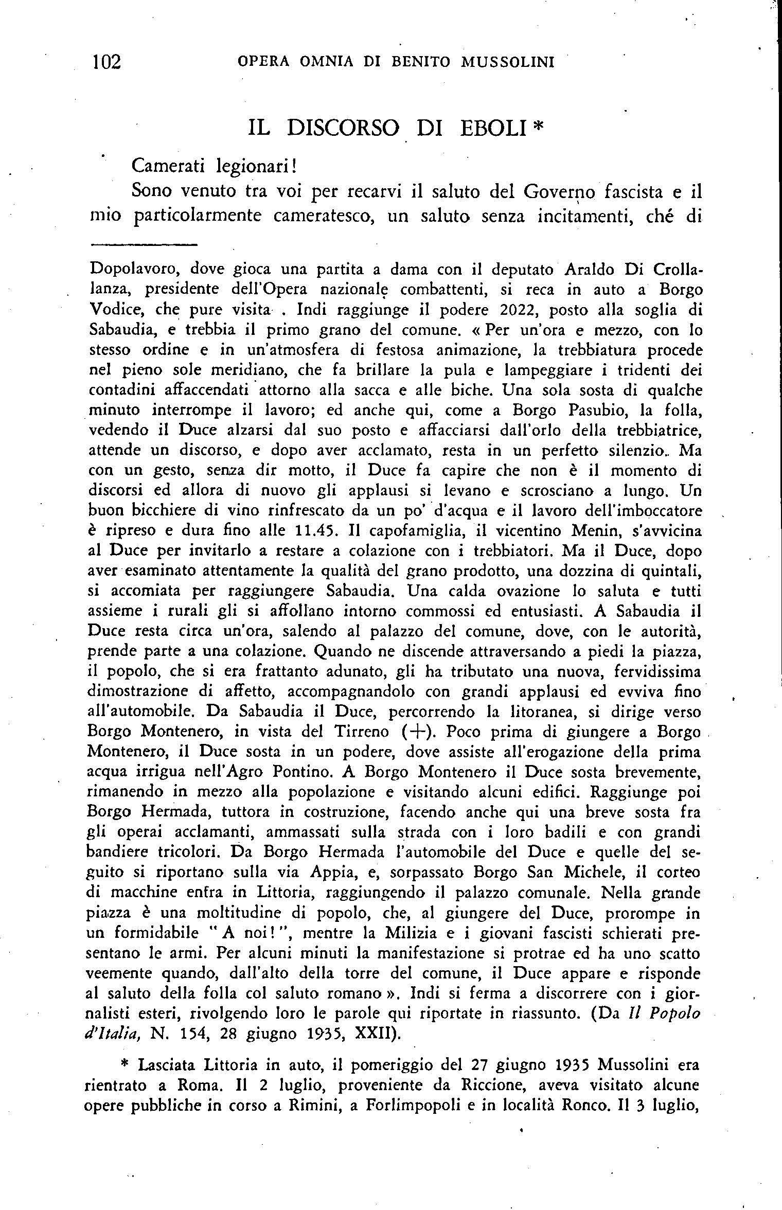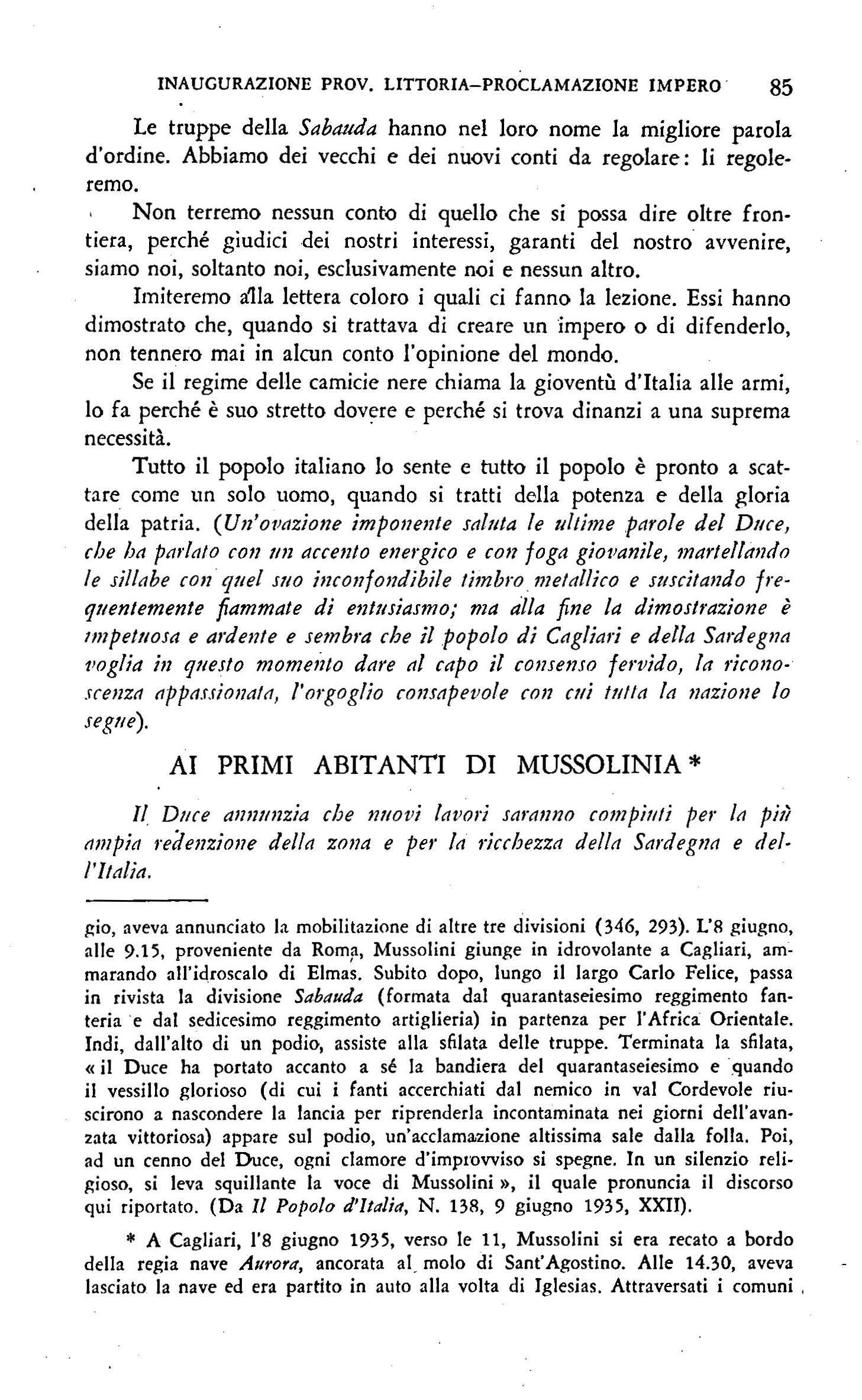 Ai p rimi abitanti di' Mussolinia (9 giugno 1935) .