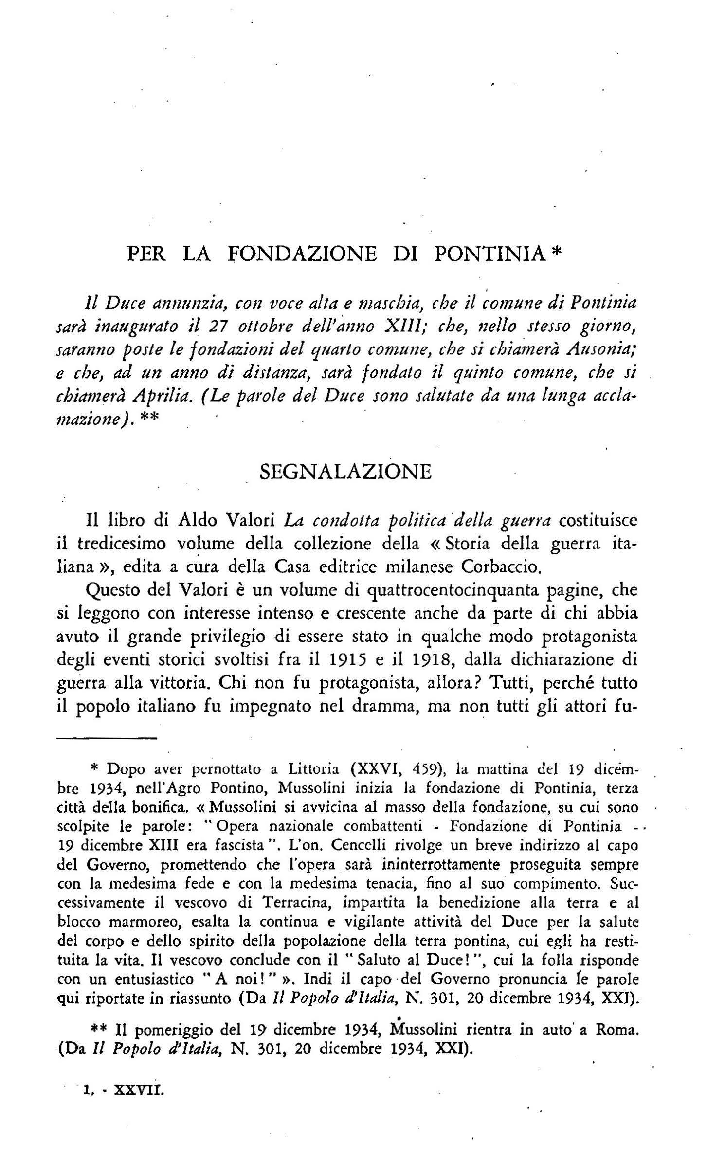 Gli scritti anonimi contrassegnati con (w), (w J), (ww), (ww bis), (wwww) sono di Benito Mussolini, come risulta da lla Condu1ione Dindle-Su1me/1 pubblicata nel t'ol XXVI d ell'Opera Omnia (pagg. VI-IX)
