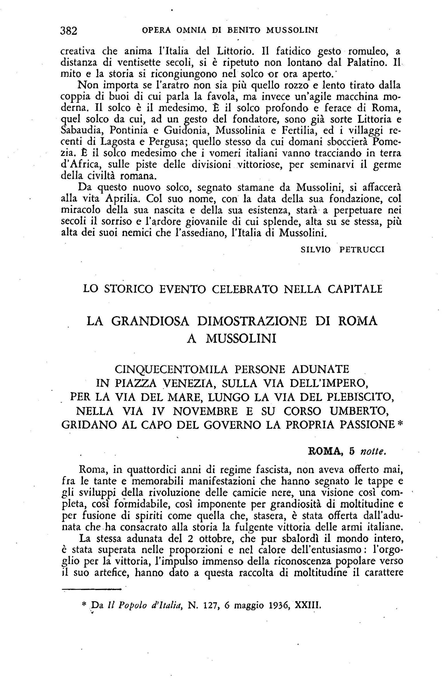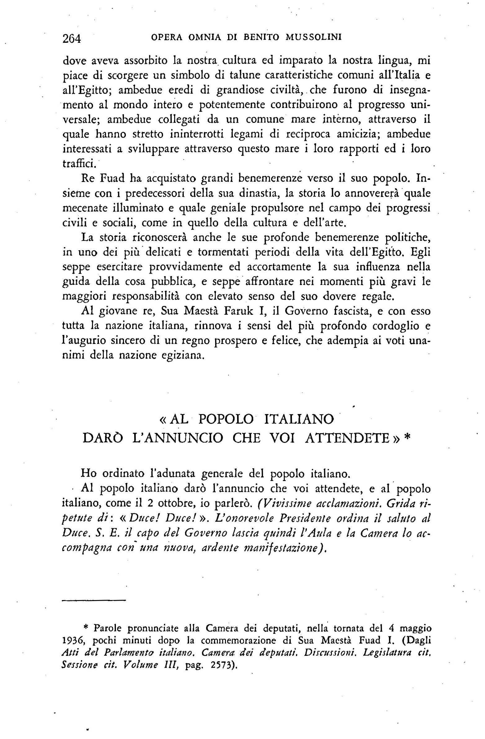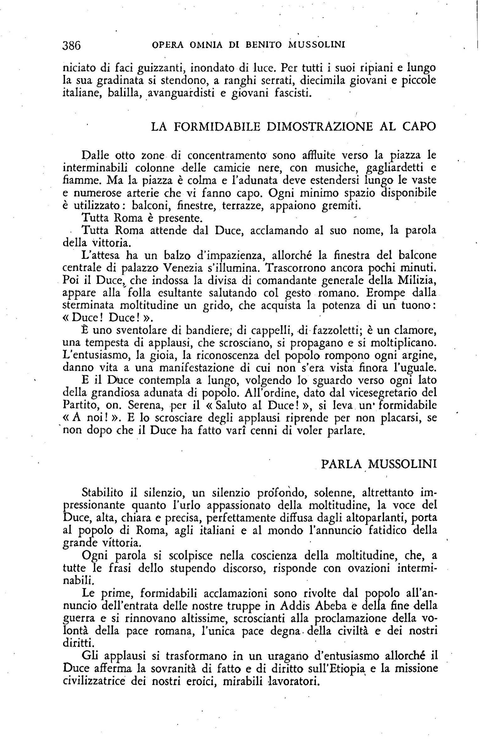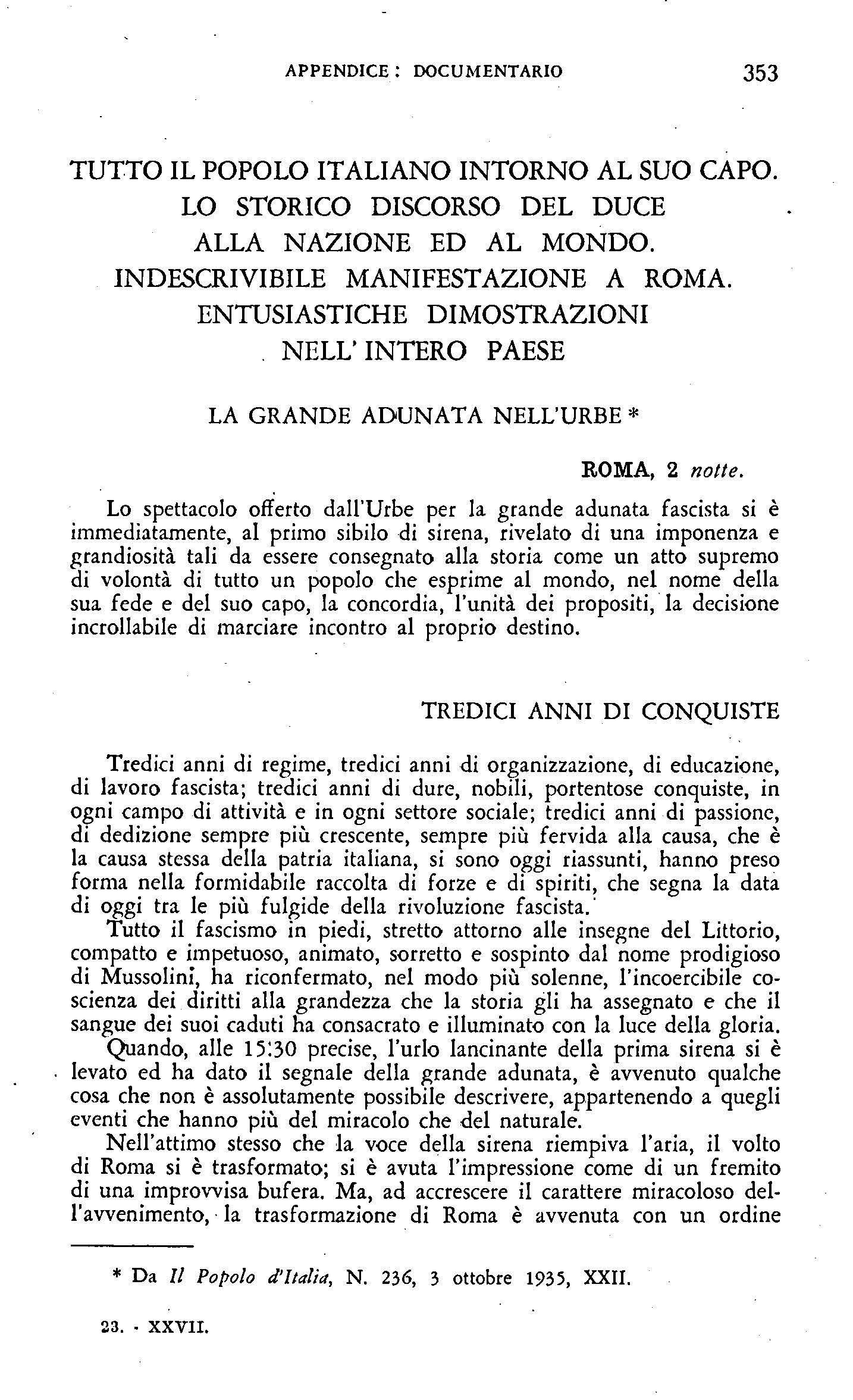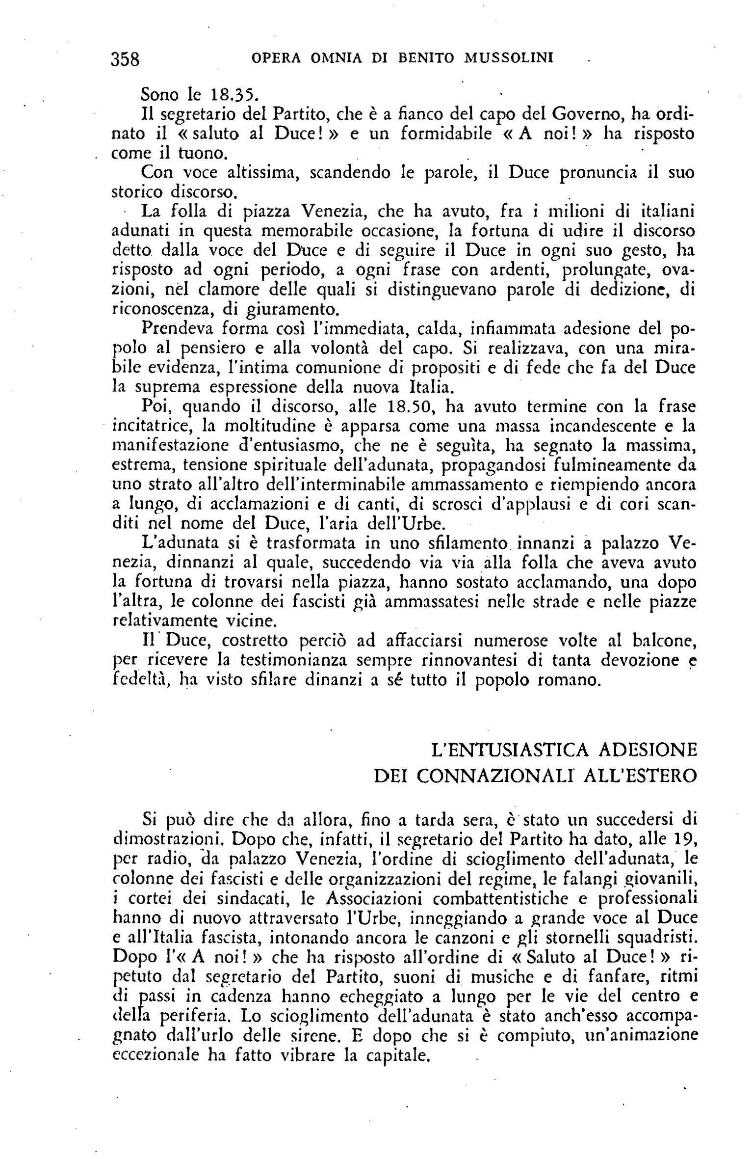 Tutto il popolo italiano intorno al suo capo. Lo storico discon;o