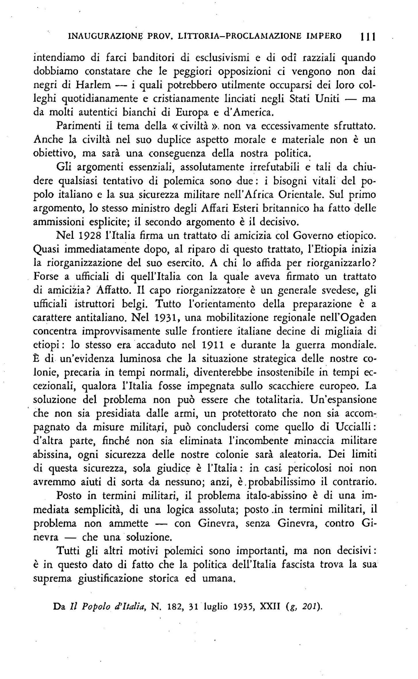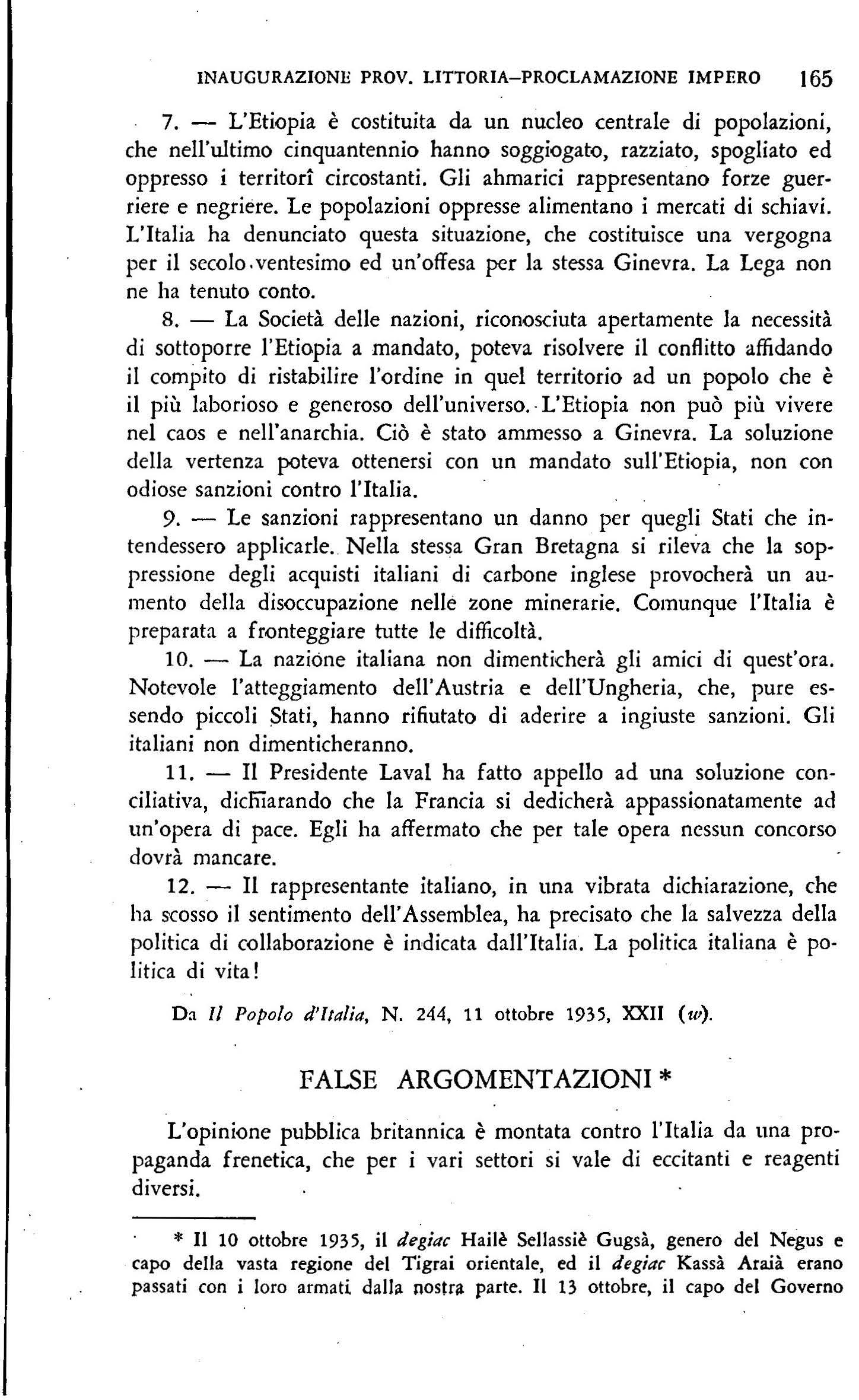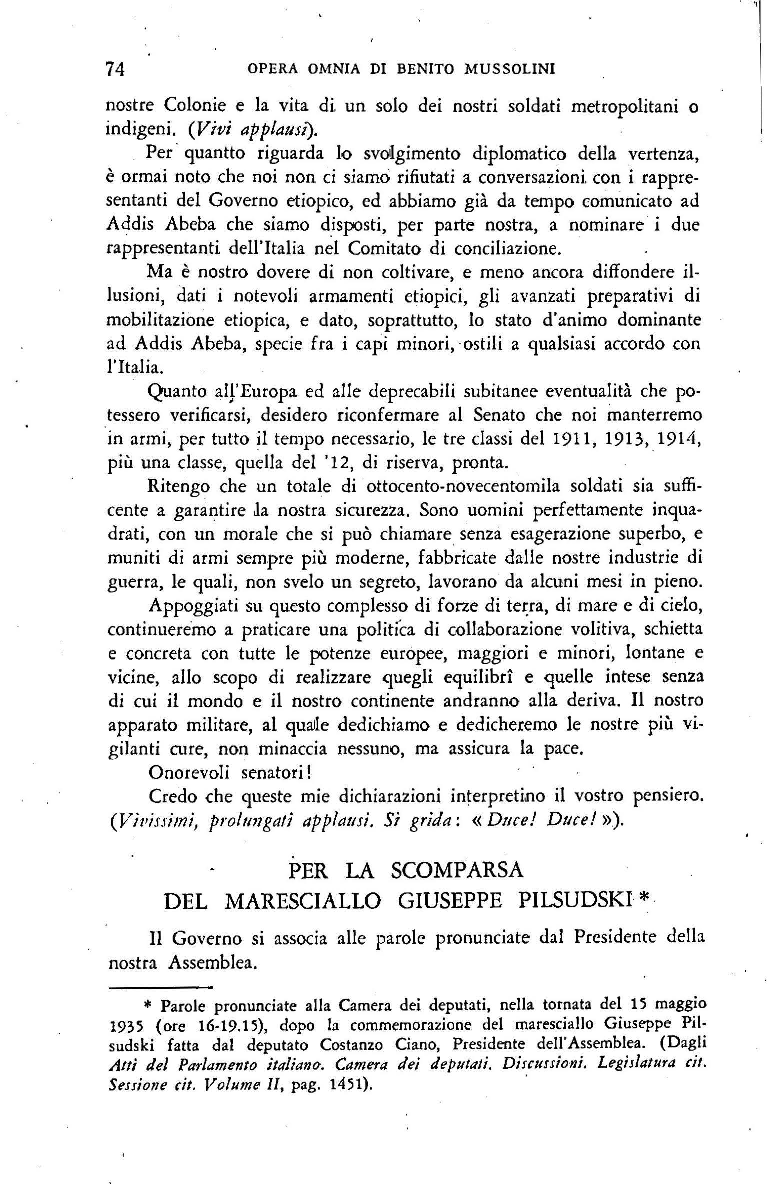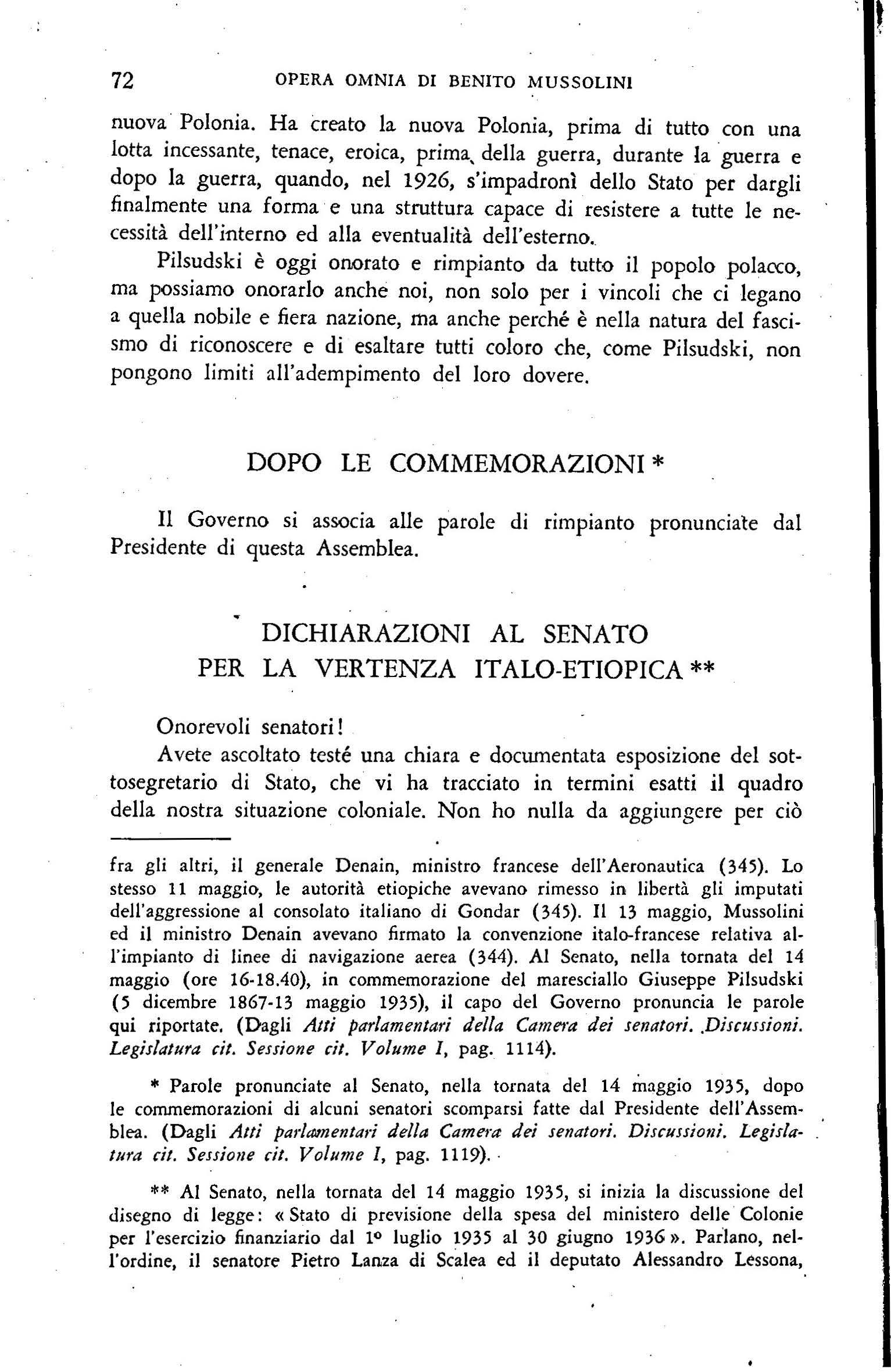 Dichiarazioni al Senato per 1a vertenza italo-et iopica ( l4 magg io 1935)