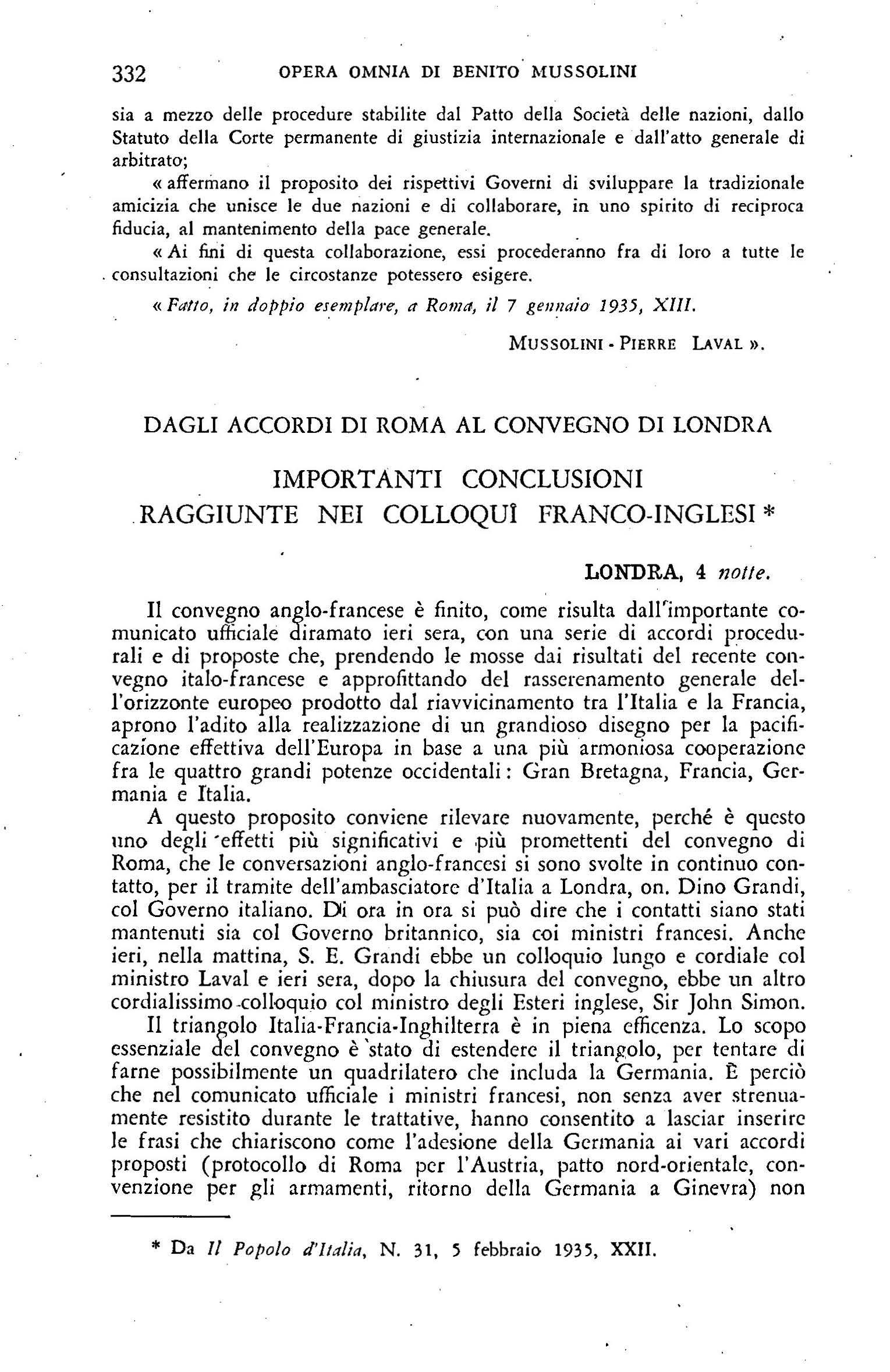 Dagli accordi di Roma al convegno di Londra. Importanti conclusioni raggiunte nei colloqui franco-inglesi (:; febbraio 193S) .