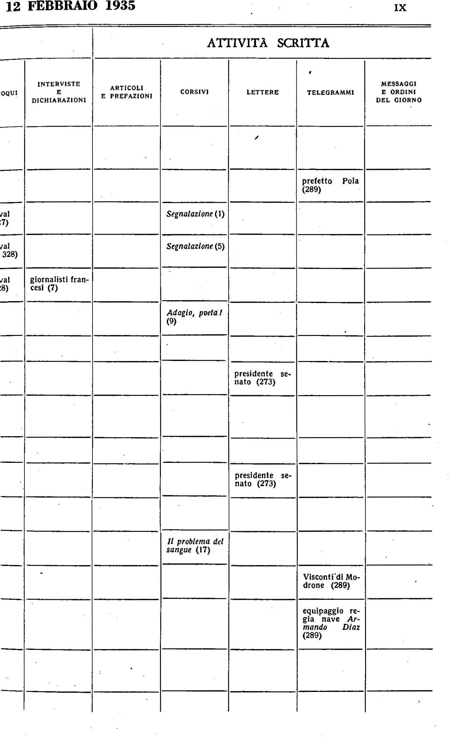 La scelta (21 maggio 1935) . . . , . . . . . . . . .