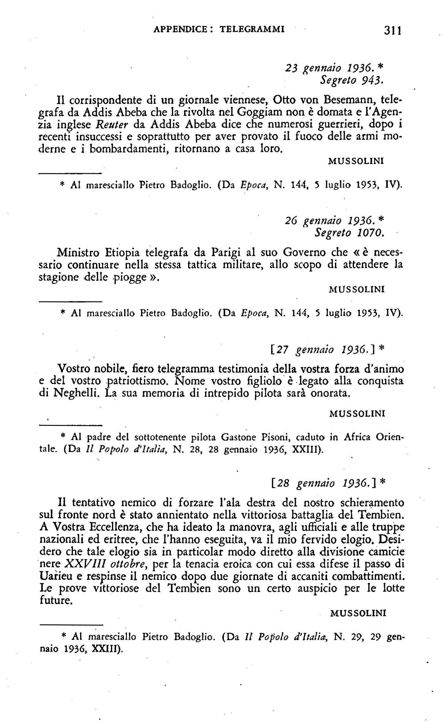 La gratitudine al Duce del maresciallo Badoglio ( 20. novembre ~ij . . .. ... ......