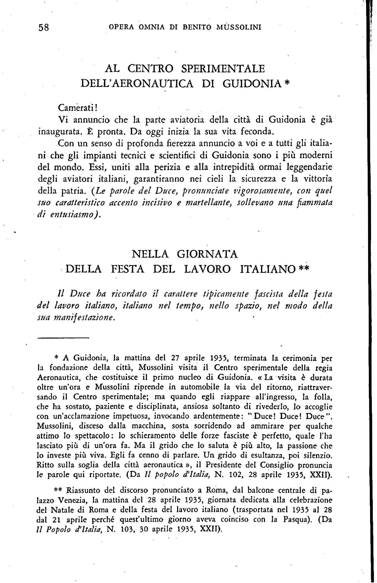N ella g iornata della festa dei'1avoro italiano (28 aptile 193 5)