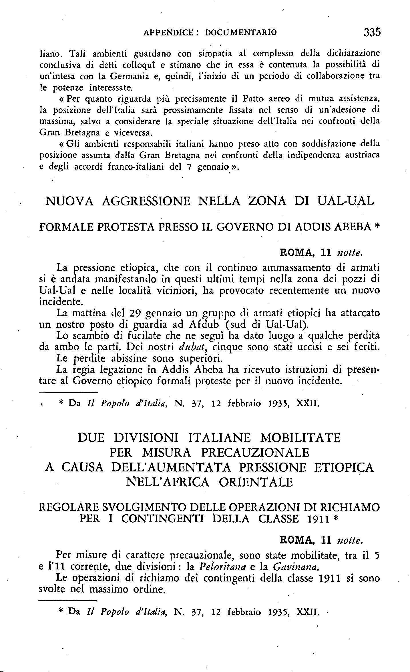 Nuova aggressione nella zo na di Ual-Ual. Formale protesta presso . il Governo di Addis Abeba (12 febbraio 193S) .
