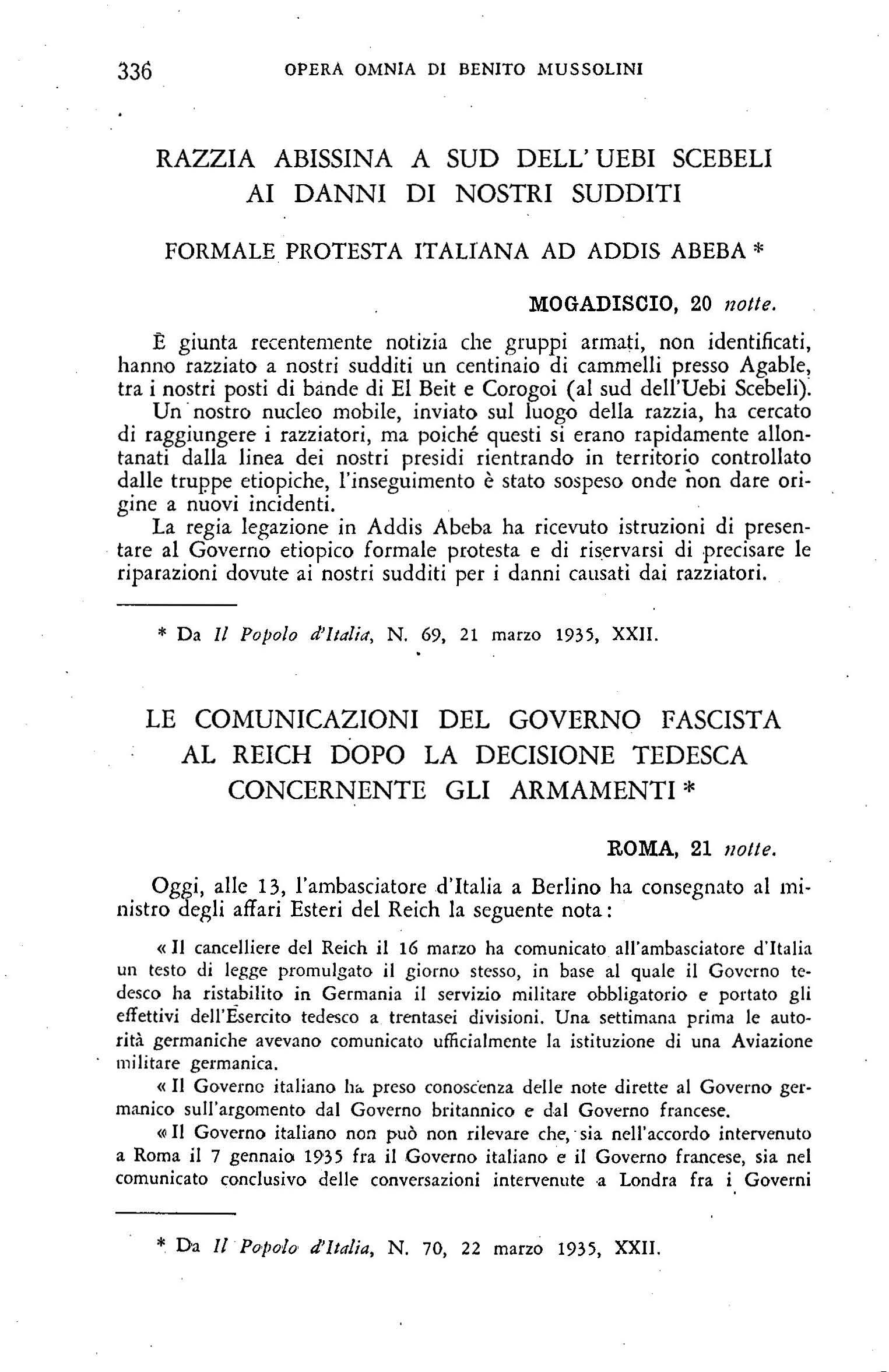 Le comunicazioni del. Governo fascista a l Reich dopo la decisione tedesca concernente gli armamenti (22 marzo 19}5)