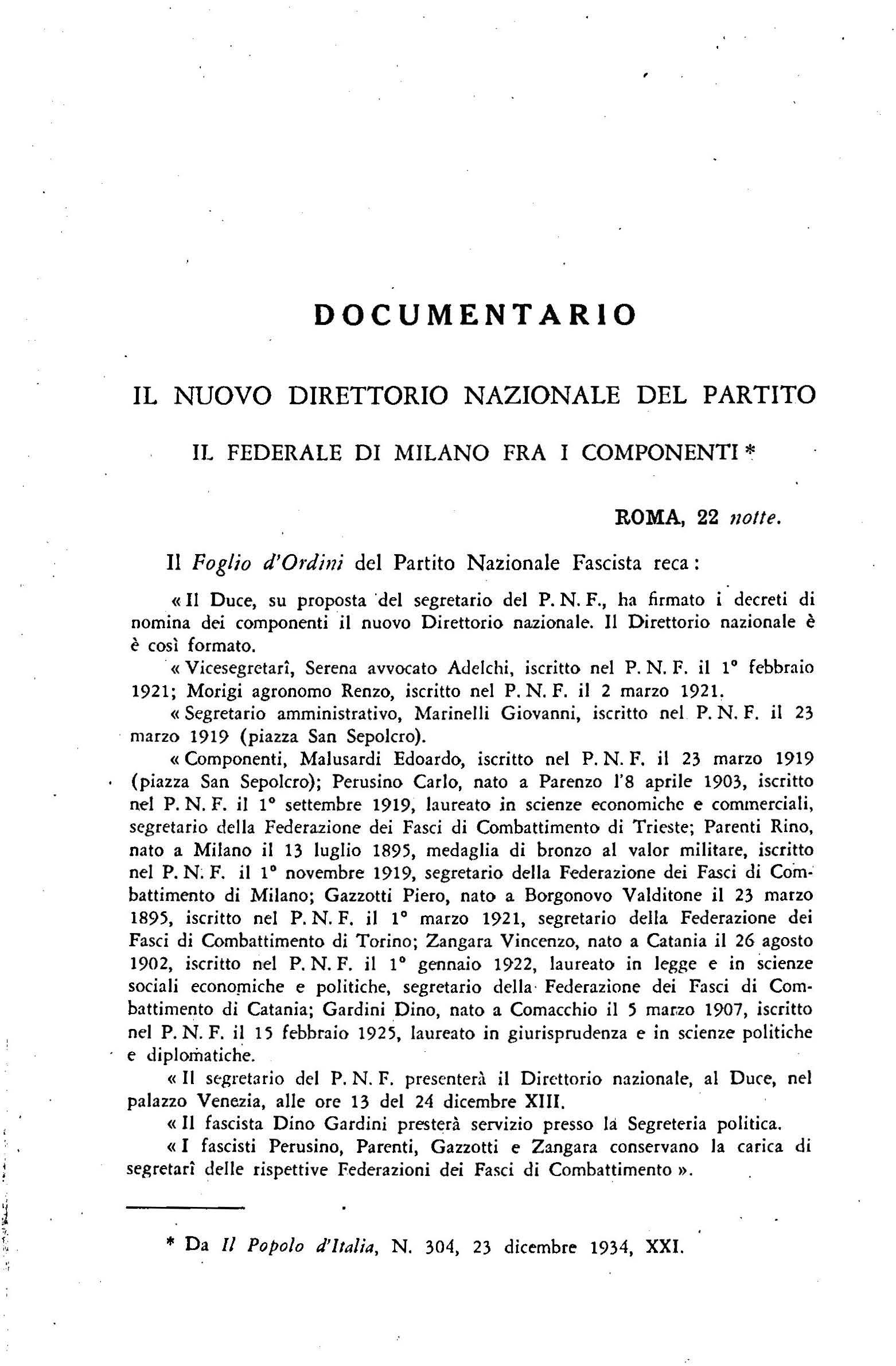 Gli scritti anonimi contrassegnati con (z) sono di Benito M ussolini , cqme risulta da : GmRc 10 PJNJ - Filo diretto ron palazzo V errezia - Cappelli, Bologna, 1950. Eccetto un «cappello» ed un commento, s i tratta S(fflpre di corsivi anonimi apparsi sulrultima colonna deUa prima pagina del Popolo d'I1alù1.
