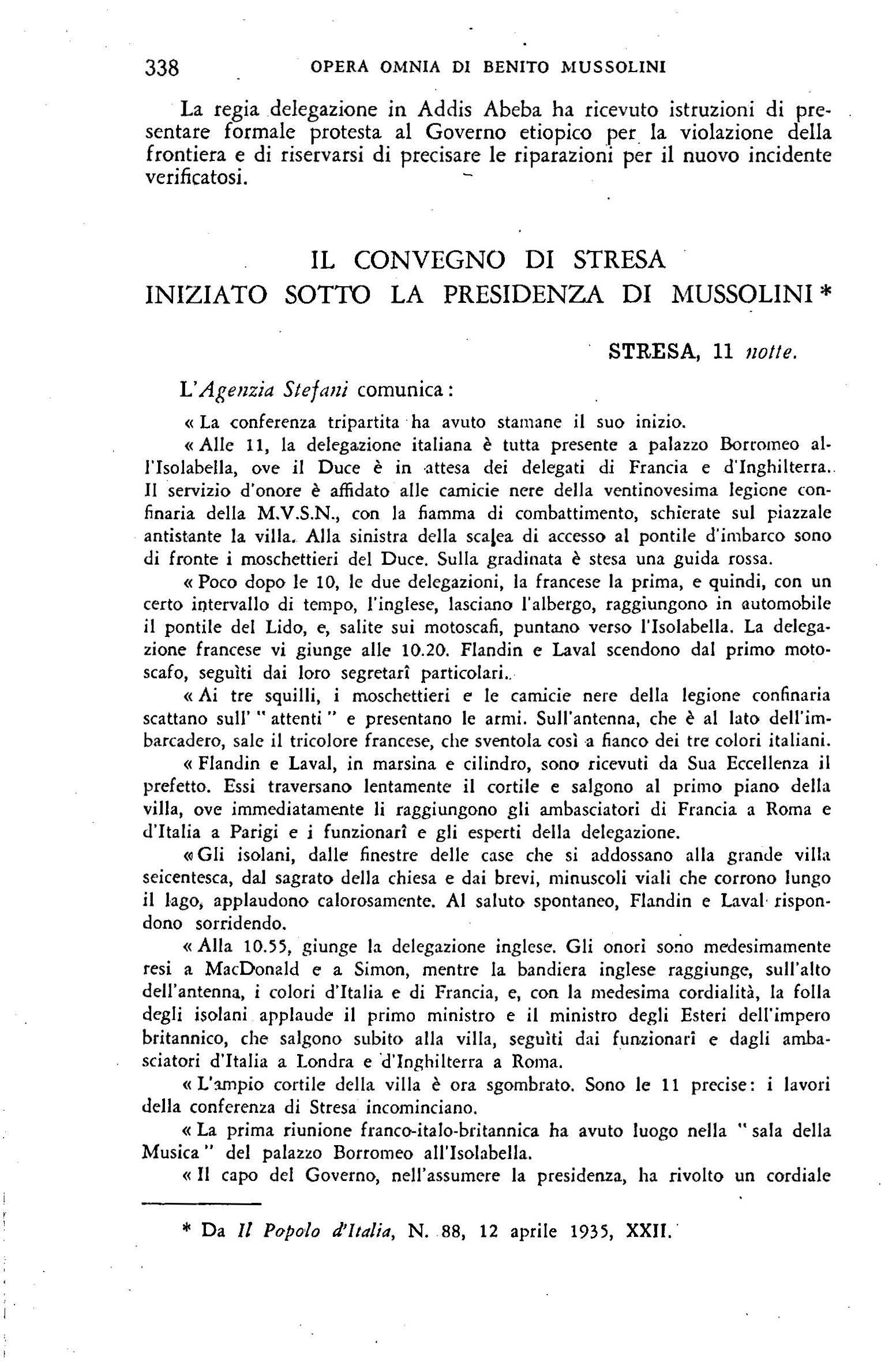 Il convegno di Stresa ini ziato sotto la p residenza di Mussolini (12 aprile 193 5) . . · · · · · · · ·