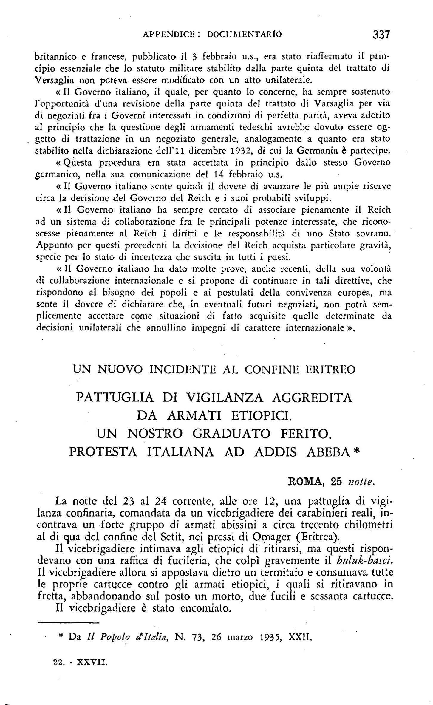 La vertenza italo-etiopica e la politica estera italiana alla Cameèa dei deputali {25 maggio 1935) . . . . . .