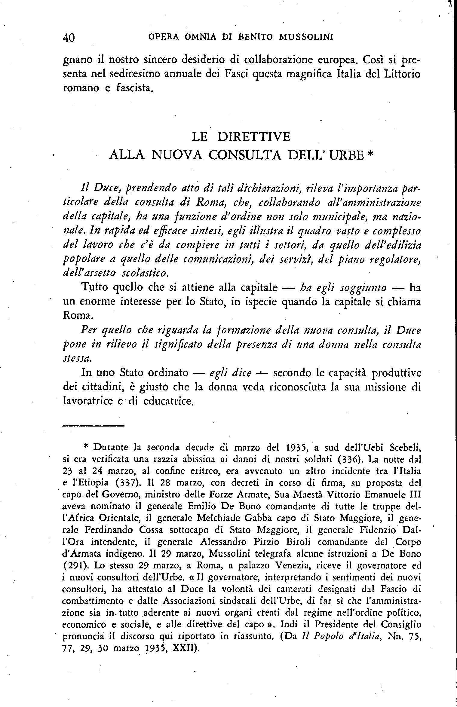 Le direttive alla nuova consulta ~ell'urbe (29 marzo 1935) .