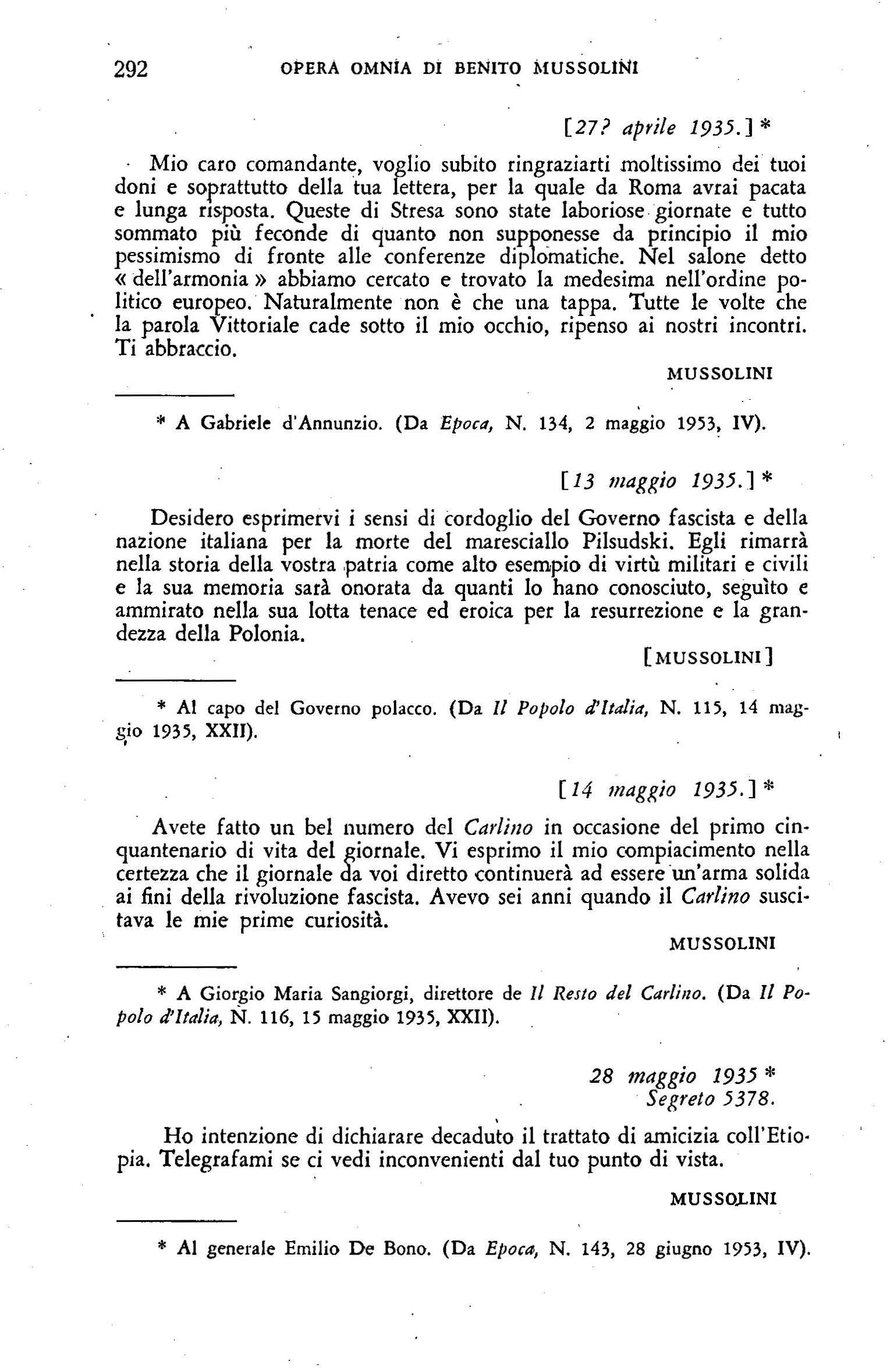 Dopo le commemorazioni (14 magg io 1935) . . . . .