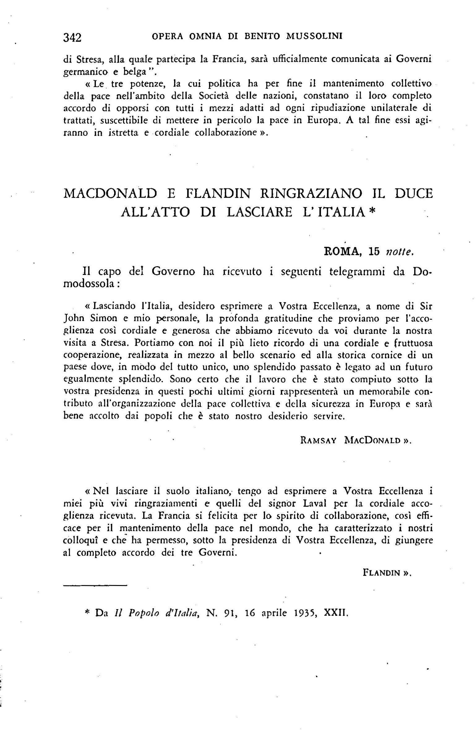 MacDonald e Flandin ringraziano il D uce all'atto di lasciare l'Italia (16 aprile 1935) .