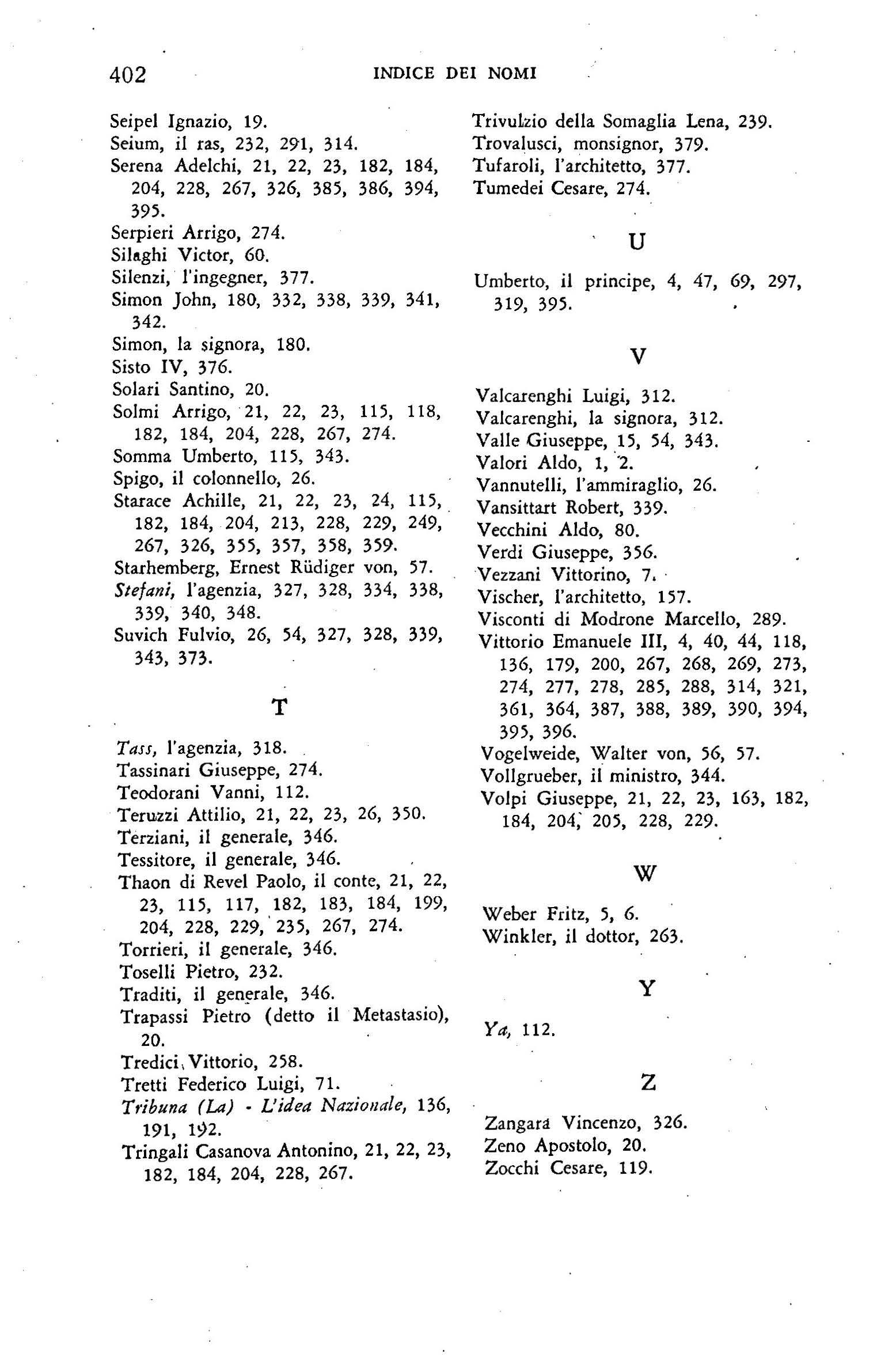 Thaon di Revel Paolo, il conte, 2 1, 22, 23, 115, 117, 182, 183, 184, 199, 204, 228, 229, . 235, 267 , 274.