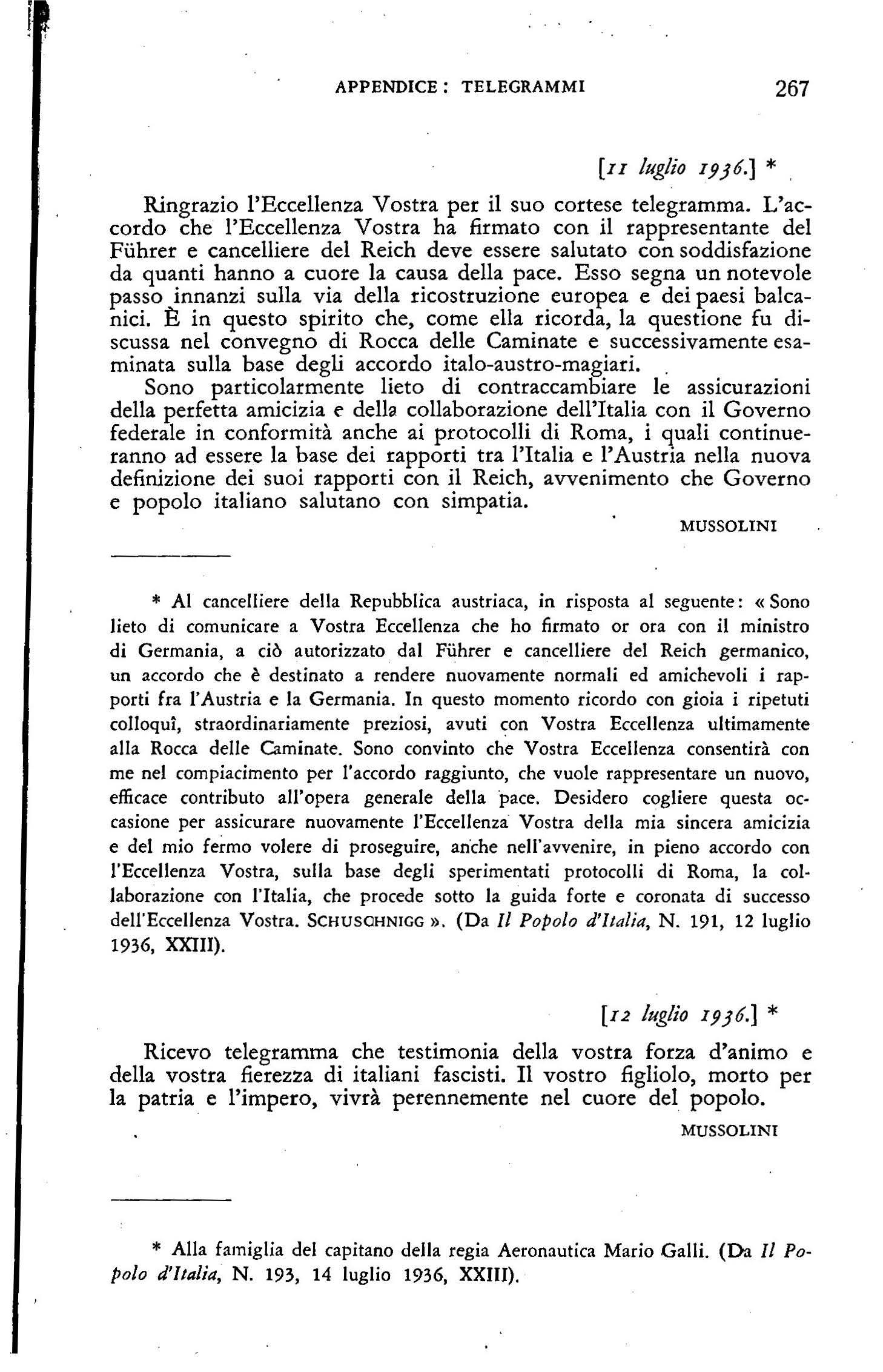 Gli scritti anonimi contrassegnati con (z) sono di Benito Mussolini, come risulta da: GIORGIO P INI - Filo direuo t011 palazui V,n~zia - Cappelli, Bologna, 19,0, Eccrito un II cappello» ed un commento, si tratta sempre di corsivi anonimi apparsi sull'ultima colonna della prima pagina del Popolo d'ltali4.