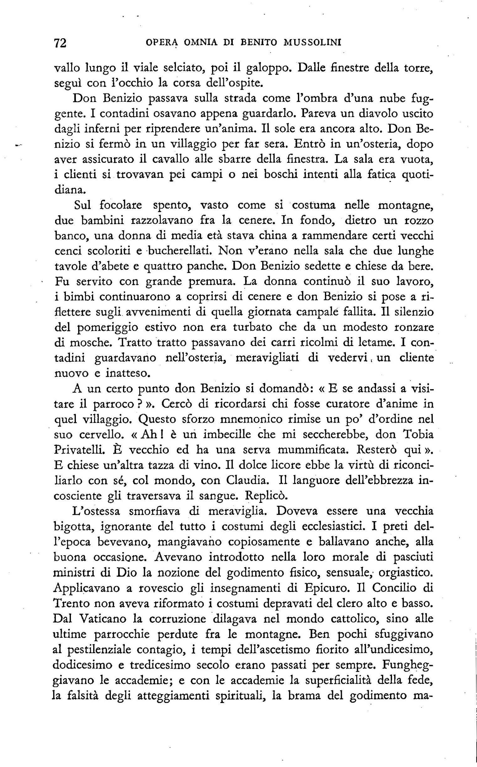 Mussolini non apprezzò mai que l suo lavoro (vedi pag . 2(iJ). Nel 193 2, parlando con Lud't'.•ig, dichiarò; « La storia dd cardinale è un orribile libraccio; l'ho scritta con intenzione politica, per un giornale. Allora. il clero era vera, mente fo quinato da elementi corcotli. un libro di propaga nda pol itica » . T ut· tavia non disconobbe mai i l suo peCC'3tO lettera rio giovanile; a nzi, d ura nte il reg ime, quando un produttore americano gli p ropose di ricavarne un fi lm, egli accettò (: stabili che i proventi sarebbero andati a favore dei fi gli di Cesare Battist i. Ma poi non se ne fece nulla.