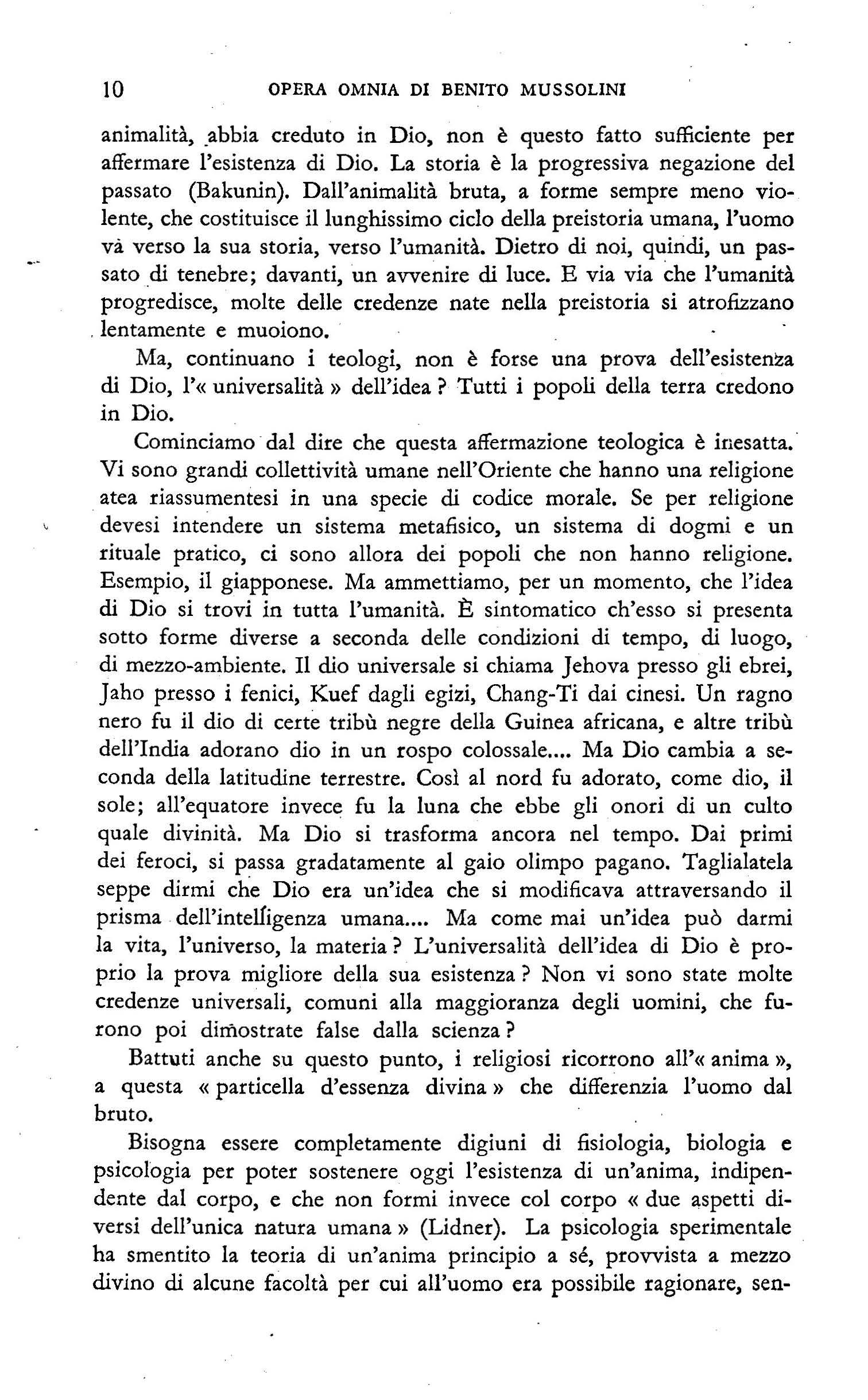 « Coll'opuscolo L'u omo e la divinità di Benito Mussolini, la nostra Bibli oteca inizia b serie delle sue pubblicazioni. Nostro scopo, nell'opera odierna che tende alla integrale em anci pazio ne dell'uom o, è di li be rare la mente dall" assurdo re[j. gioso, è la lotta contro tutte le forme di religiosità, contro tutti i .dogmi, nel nom e dei quali i pret i hanno 5ancito e 5anciscono la schiavitù economica, morale e intellett uale di un'immensa maggioranza del glènere umano.