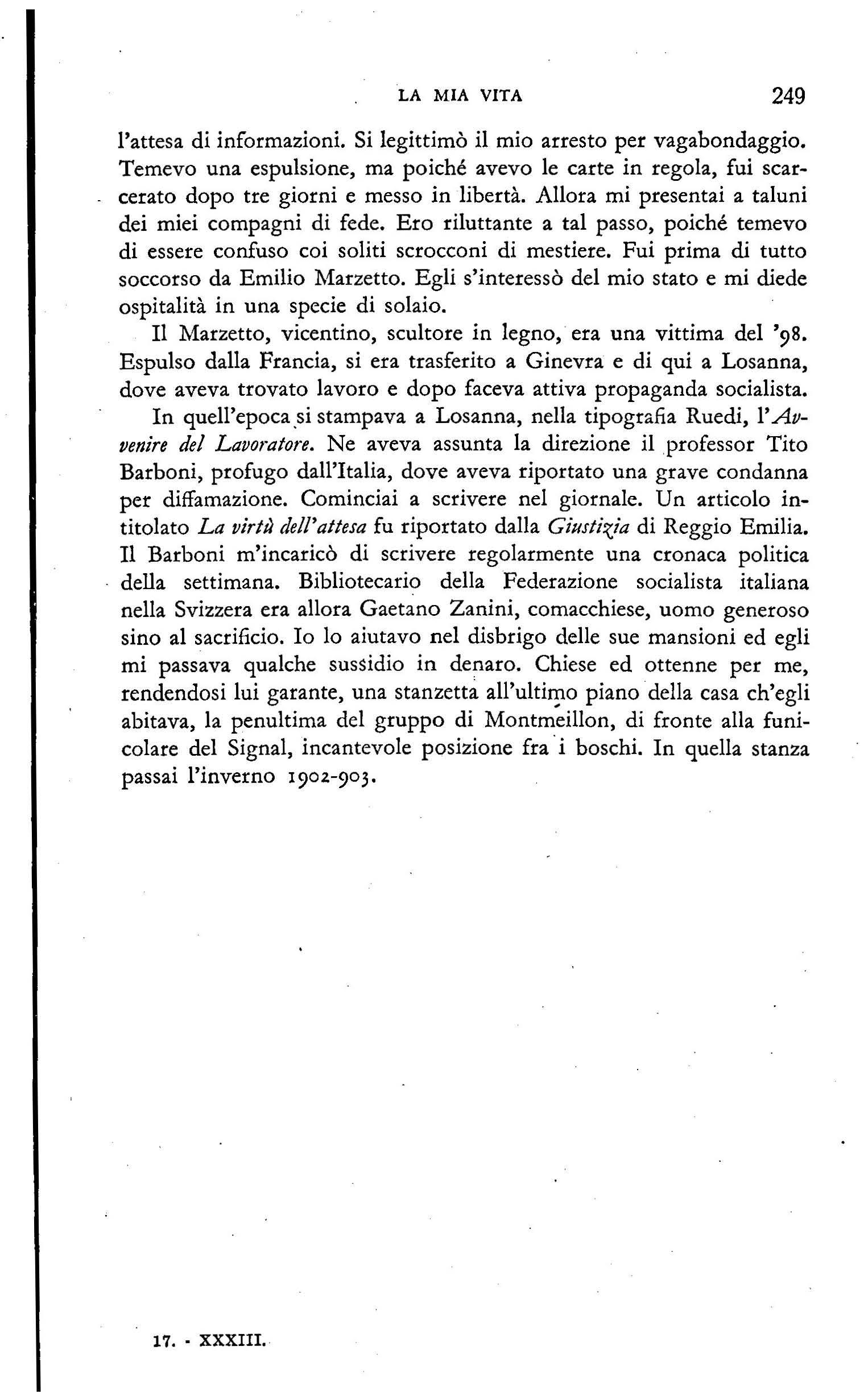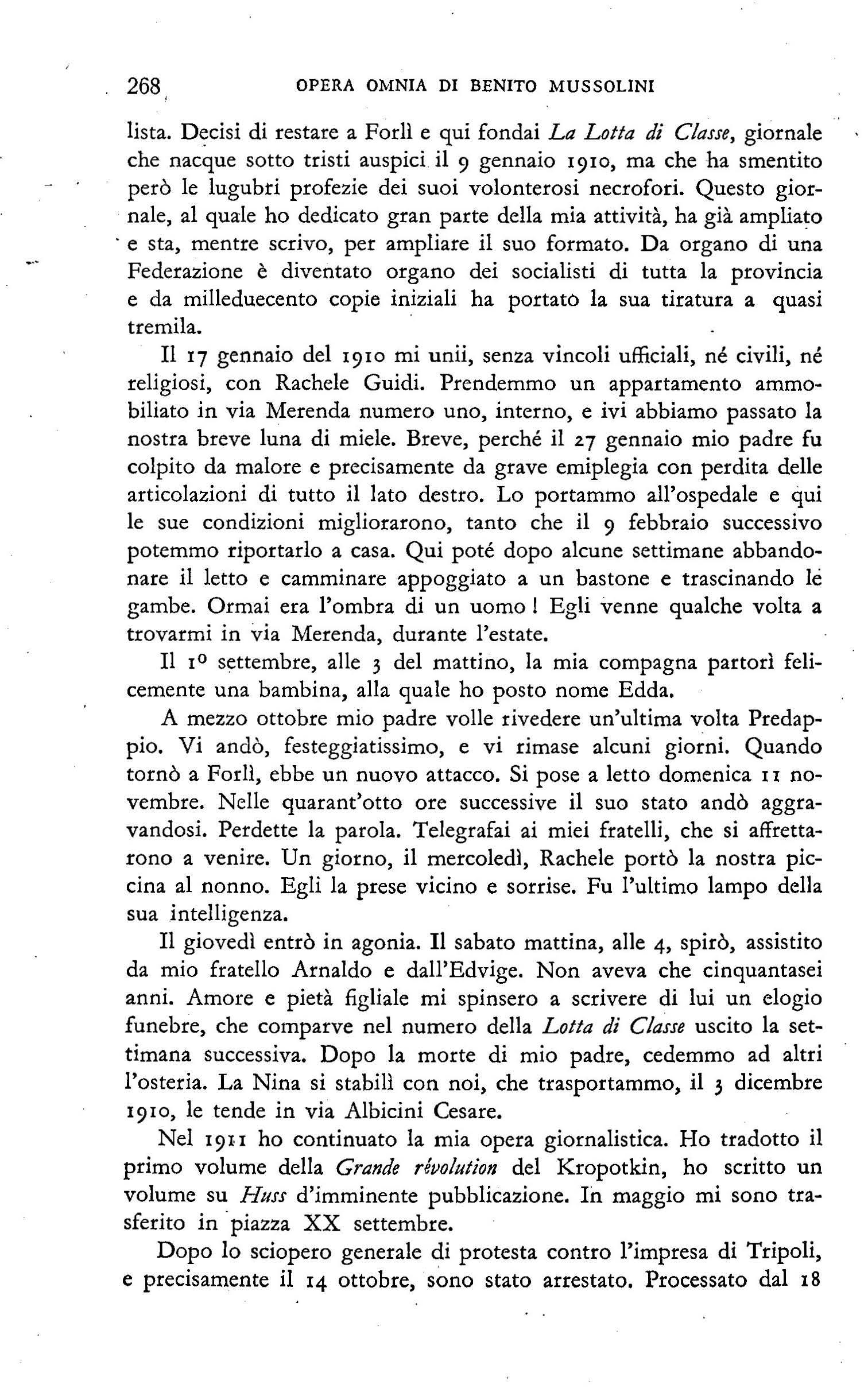 L'a utobiografia venne stesa su un piccolo qua~erno, il quale passò poi per le man i di Arturo Rossato e di Margher ita Sarfatti, che se ne servirono pu le foro biografie d i Mussolini. Ritrovato, fu pubblicato nel 1947 per i tipi dell'Editrice « Faro» di Roma.