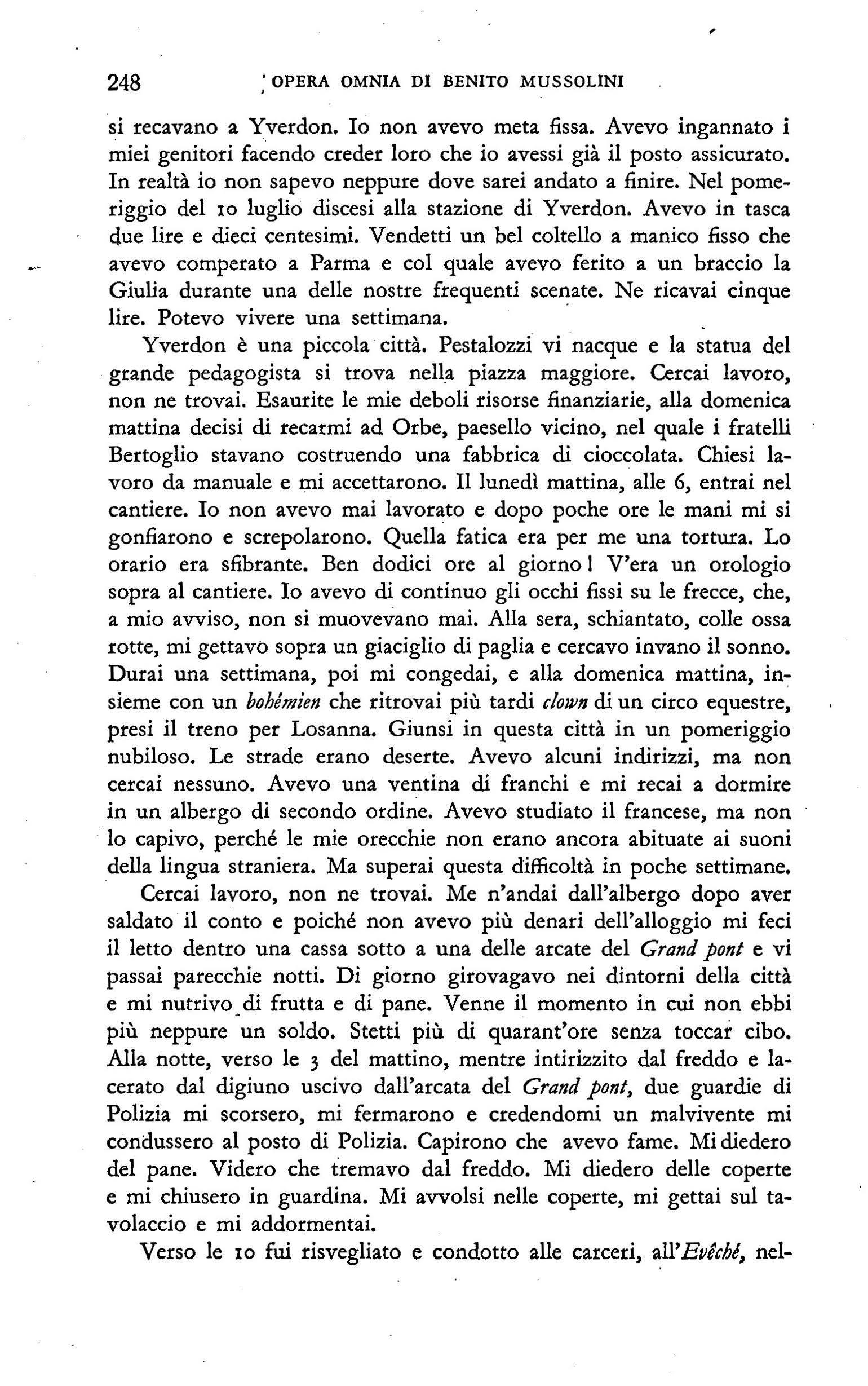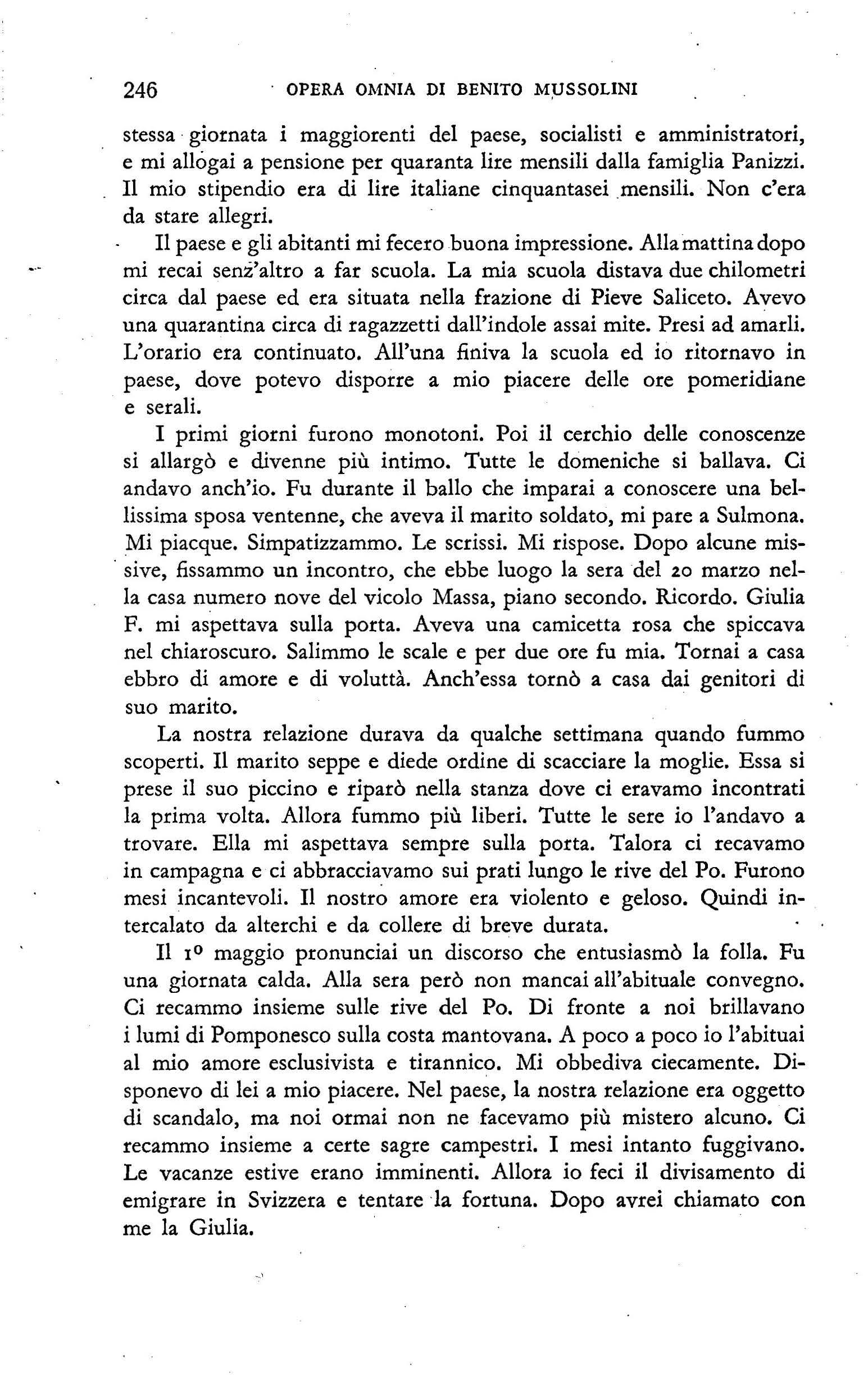 Su diversi numeri d ella Lolla d i ClaJJe (vedi voi. lll, pag. 7) del mese d i agos to del 19 1I è annunciata come prossima l'uscita dell' opera (vedi anc he pag 268). Essa fu poi differi ta, probabilmente a causa della detenzione d i M ussolini ; e pare che nelle carceri di Fo rlì egli abbia ri visto ed aggio rnato il lavoro. Comunque, tsso- vide la l uce negl i ultimi giorni di maggio del 1913