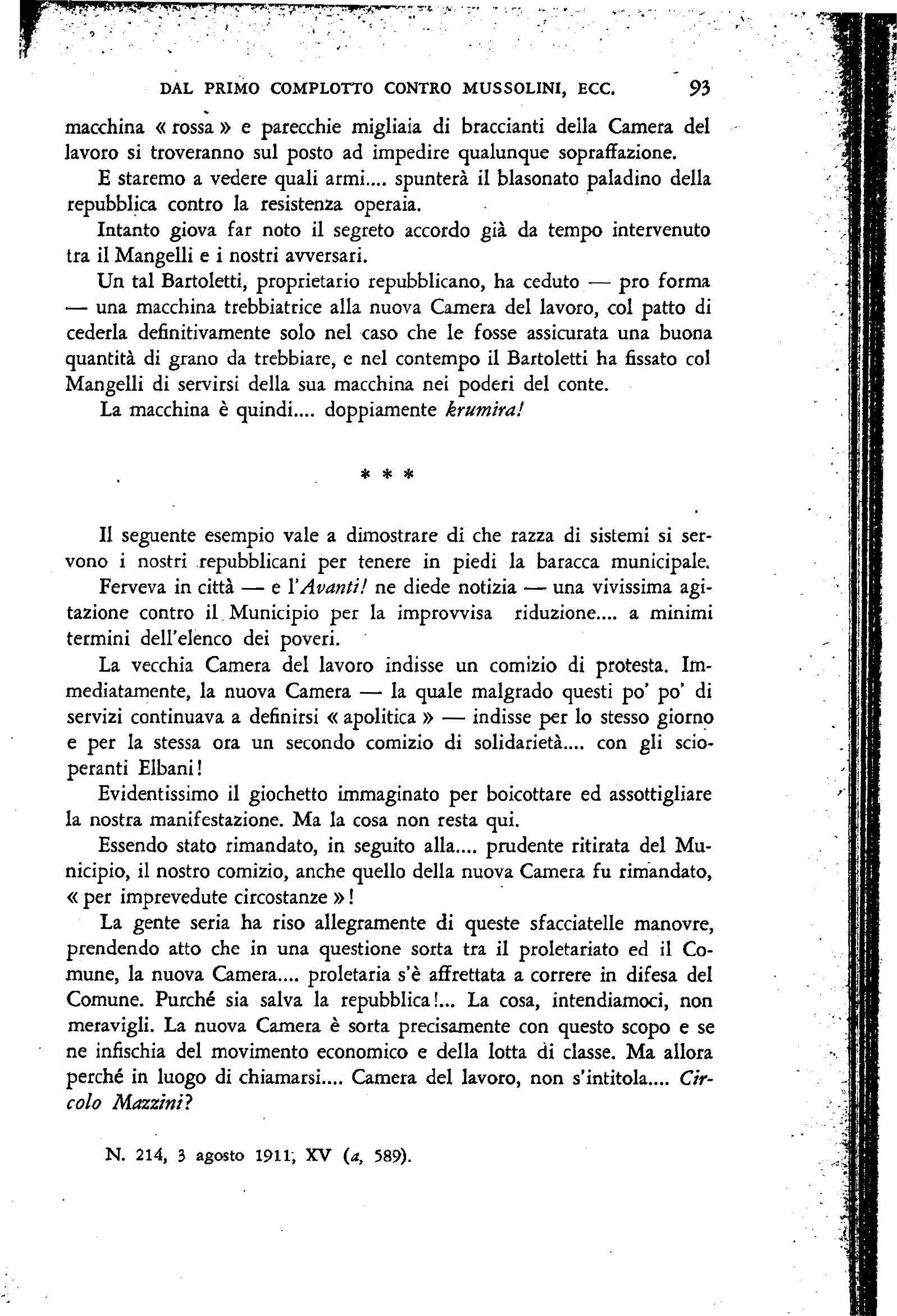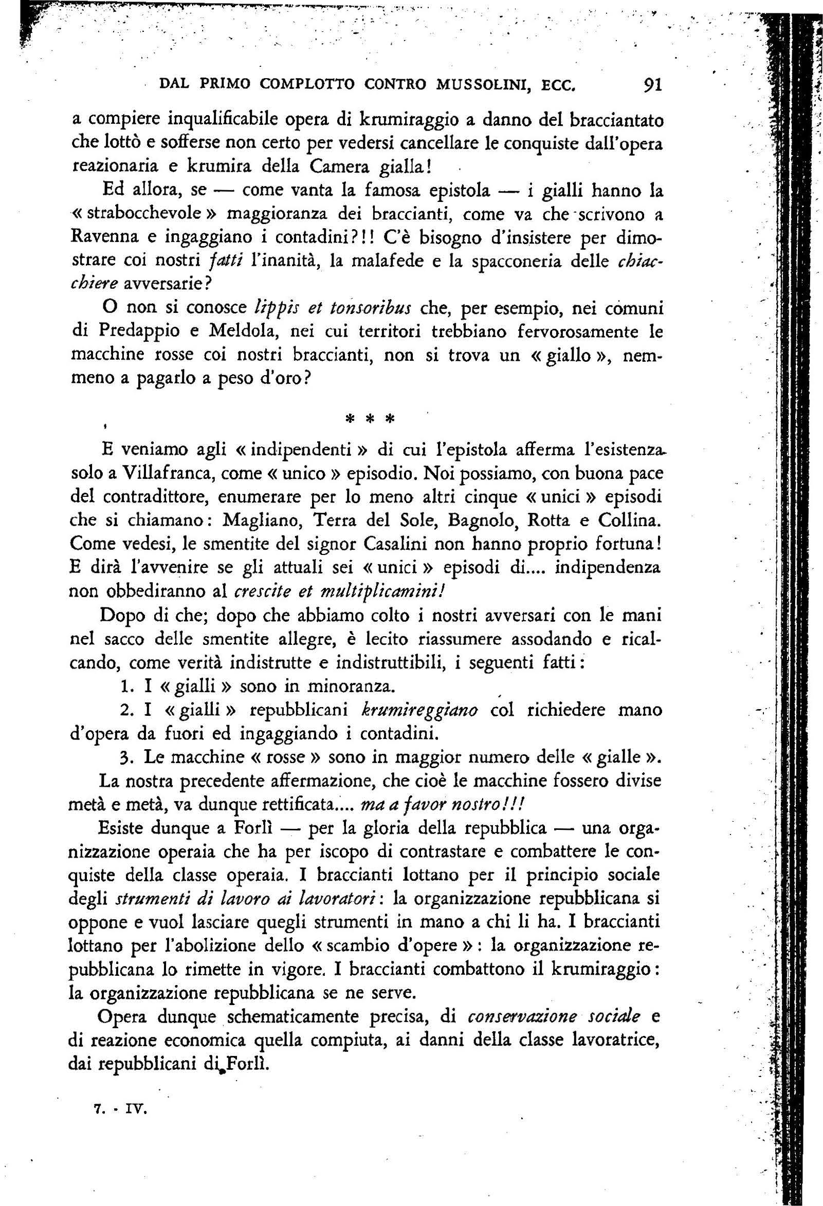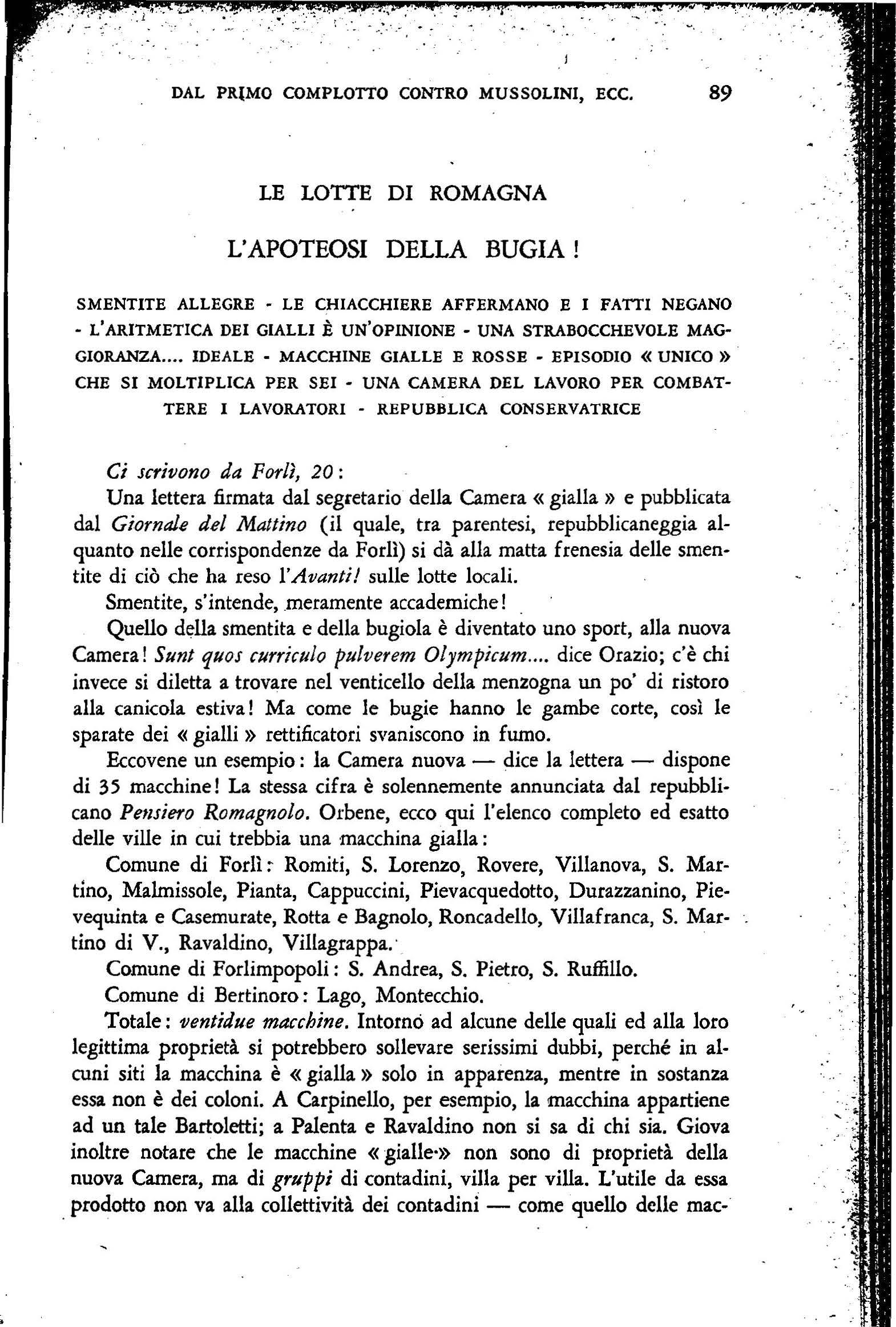 Le lotte di Romag na. Una camera del lavoro che organizza il krumiraggio Battaglia di manifesti , Nel regno della bugia. la grammatica di un napoleonide . Un comizio malgrado il divieto. Dimostrazioni e carich e sotto la canicola. Odor di polvere (20 luglio 191 1)