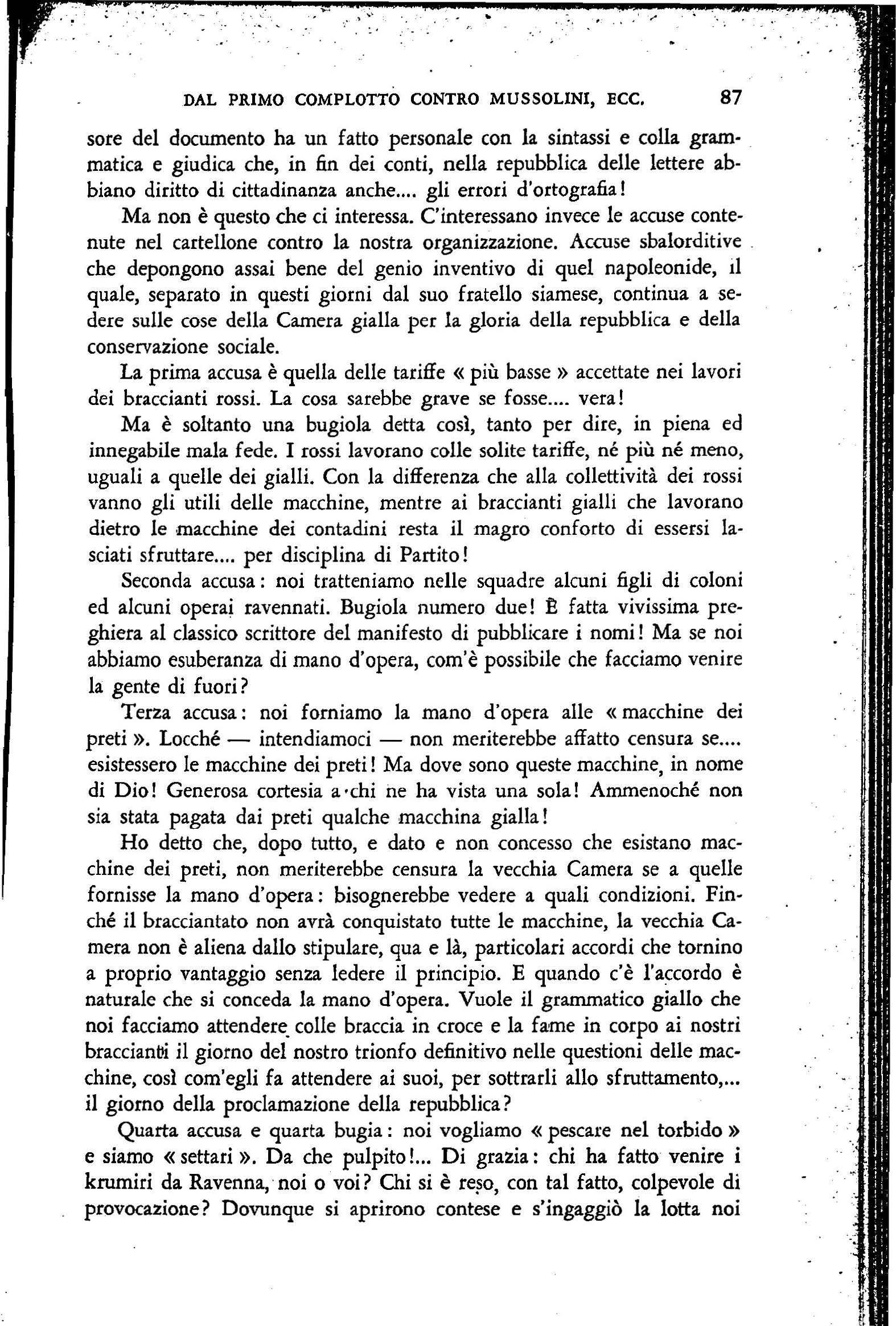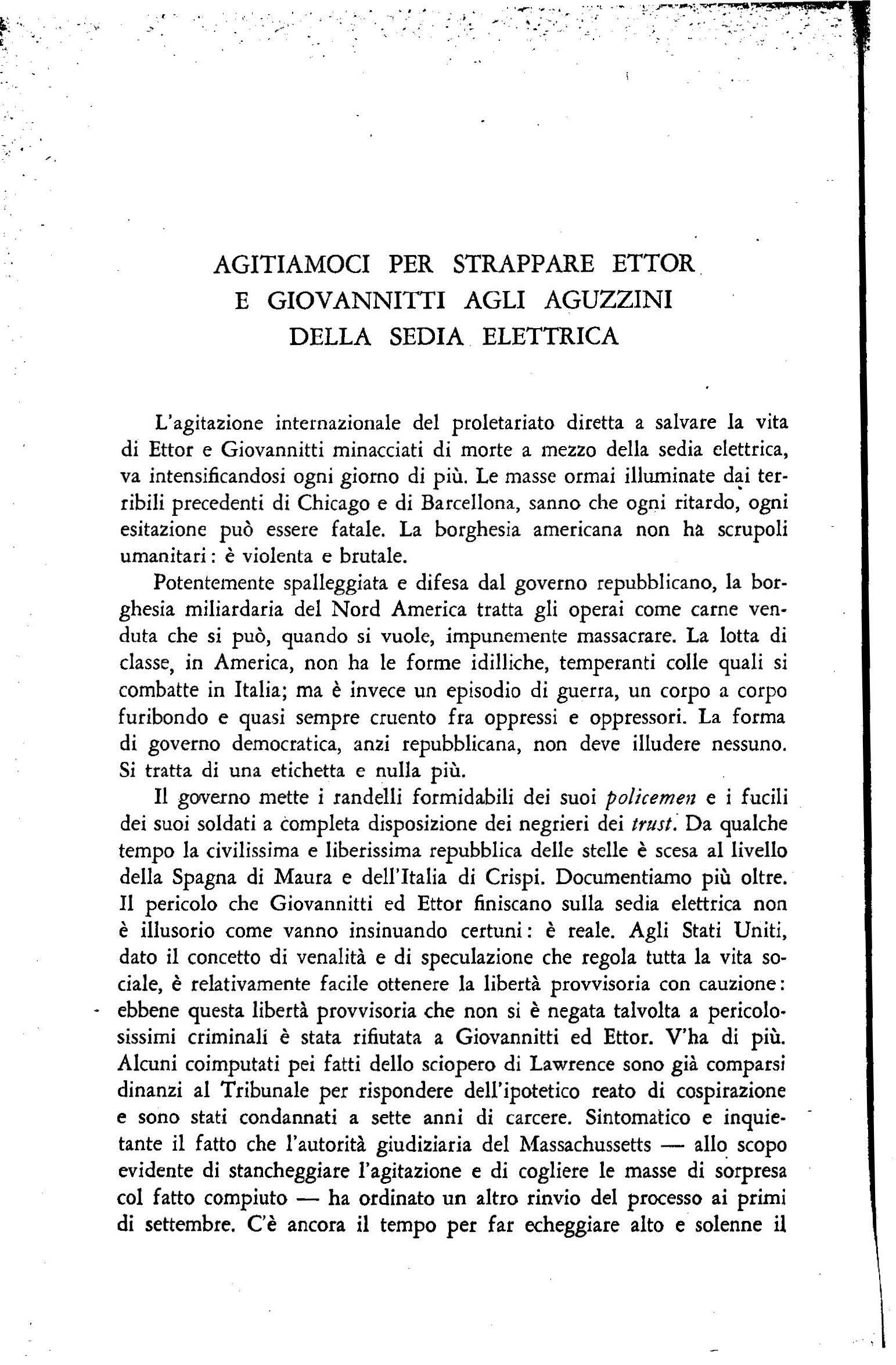 Perché rifare la storia, anzi la cronacà palpitante di ie ri? Fra voi che mi ucoltate ci sono coloro che sopportarono la bestiale violen za degli agenti monturati del disordine, ci sono quelli che udirono lo scroscio micidiale delle pallottole non ma i errabo nde, ci sono ì super~titi feriti, ci sono i condannati dalla g ius6zia borghese !