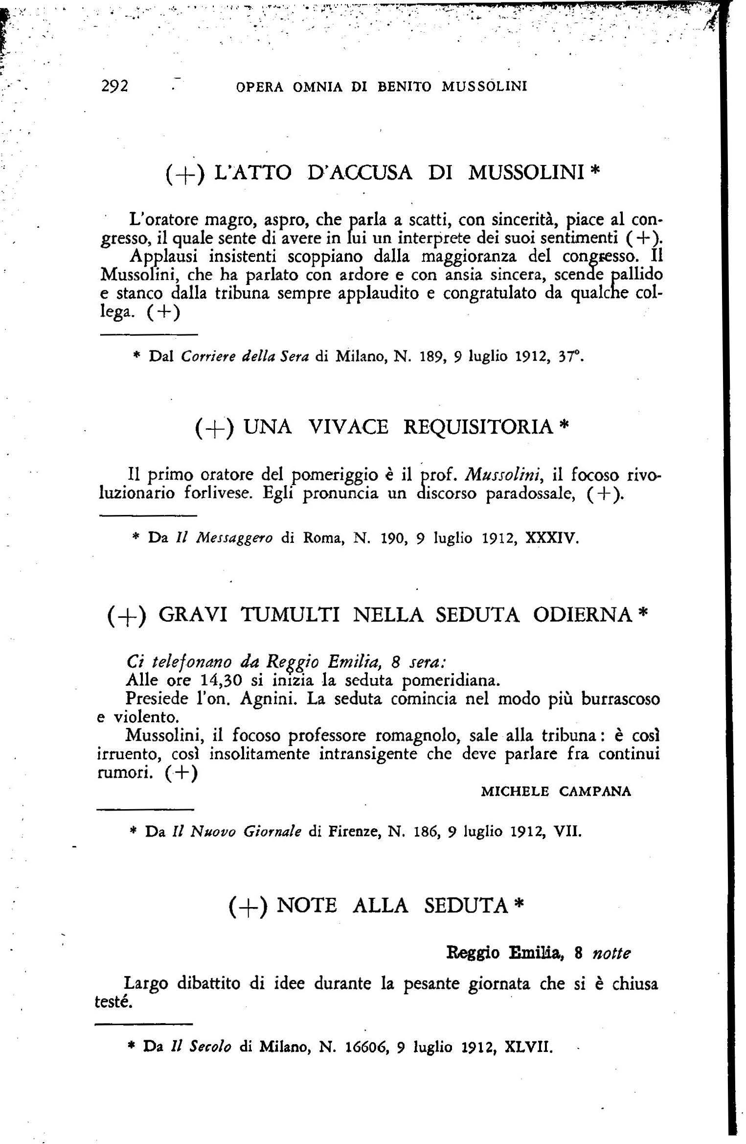 1a paternità degli scritti anonimi contrassegnati da un asterisco , risulterà dì Bmito Mussolini d al coofrOnto dei mcdc,simi con gli scritti cui si fa richiamo in nota.