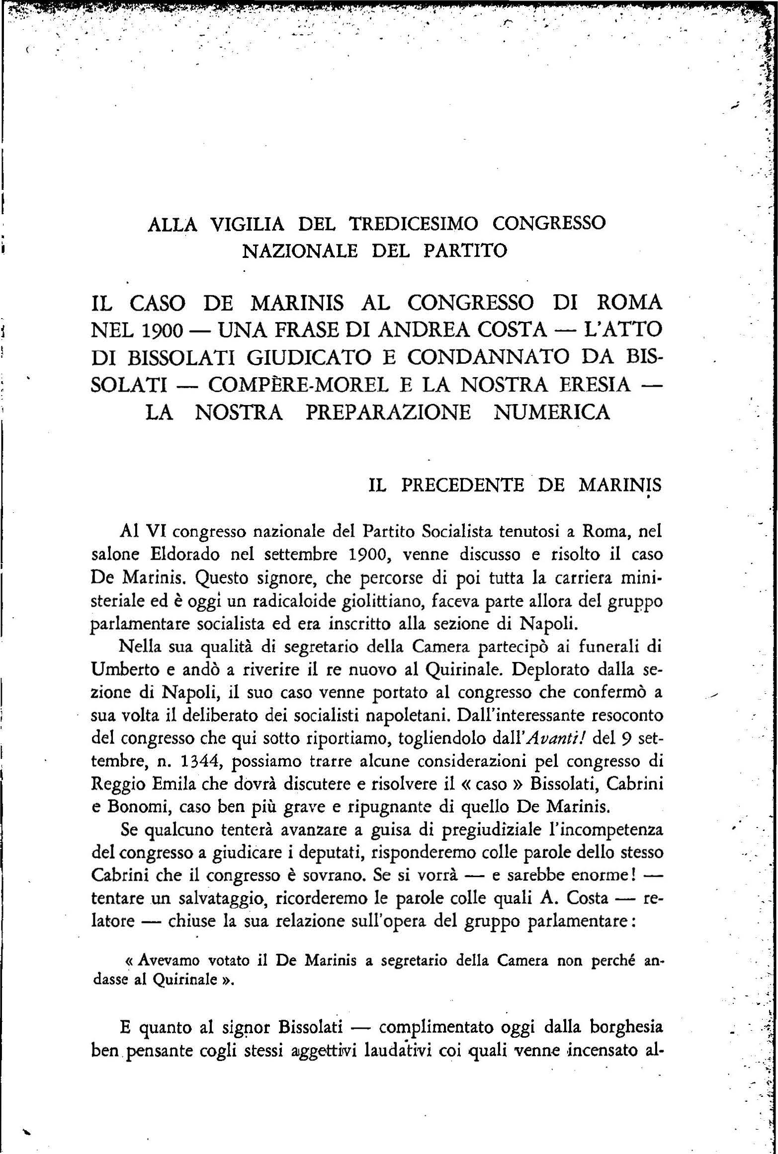 Ma le elezioni del 1909 cost ringono il Partito a compiere un'opera di purificazione; i massoni, g li affaristi, i tepidi, i bloccardi che avevano votato p er Gaudenzi vengono espulsi. ll Partito riprende la sua fisionomia proletaria. O ggi, su 2000 socialisti, 1950 sono operai. Il che, secondo il mio debole modo di vedere, è un gran bene agli effetti del socialismo!
