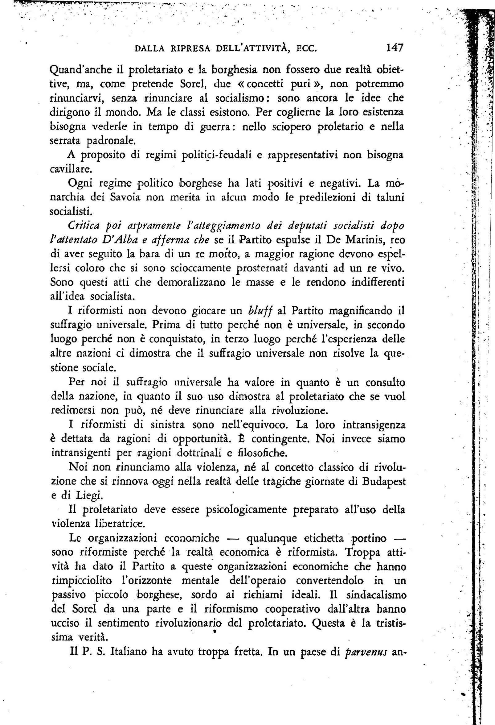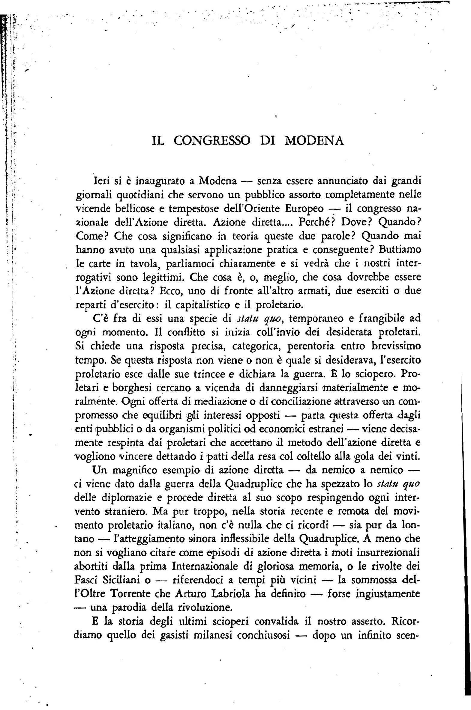 Ora noi crediamo che sia difficile far rientrare tali movimenti nei limiti delle concezioni proletarie attualmente conosciute. Qui non s i tratta di r iformismo, di sindacal ismo, di anarchismo. Qui è la babelica confusione delle lingue, insieme con una incontrovertibile documenta· 2:ione d' impotenza.