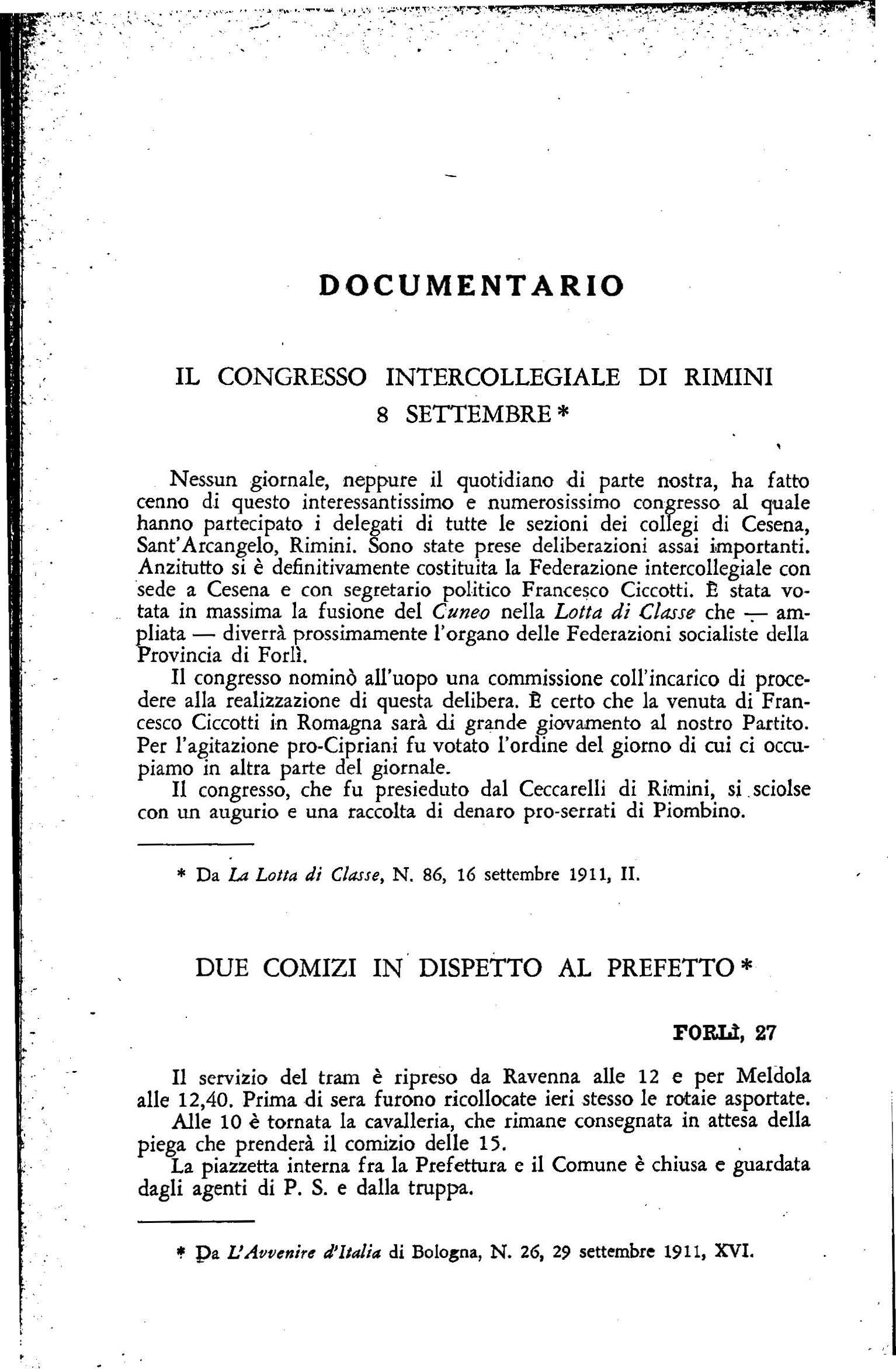 Jl cong resso intercollegiale di Rimini. 8 settembre ( 16 settembre 1911) :