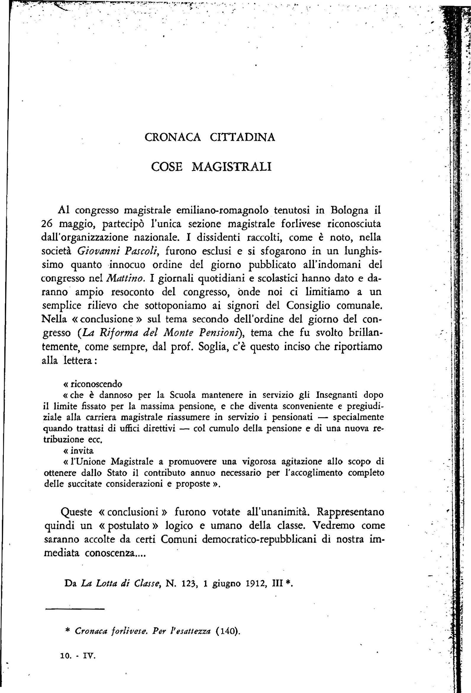 • Riusunto del discorso pronunciato a Conselice (Ravenna) il 2r maggio 19 11. (Da i.A Lo/111 di C!t1.Ju, N . 73, 27 maggio 1~ 11, II).