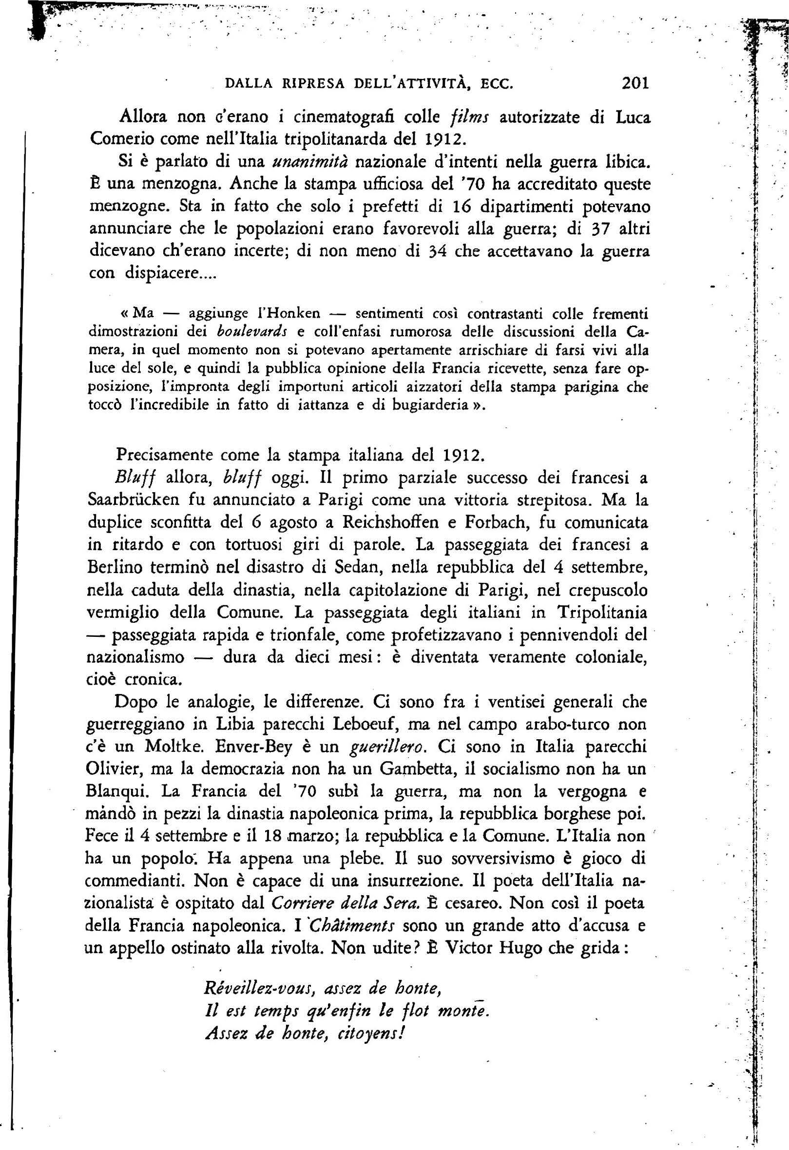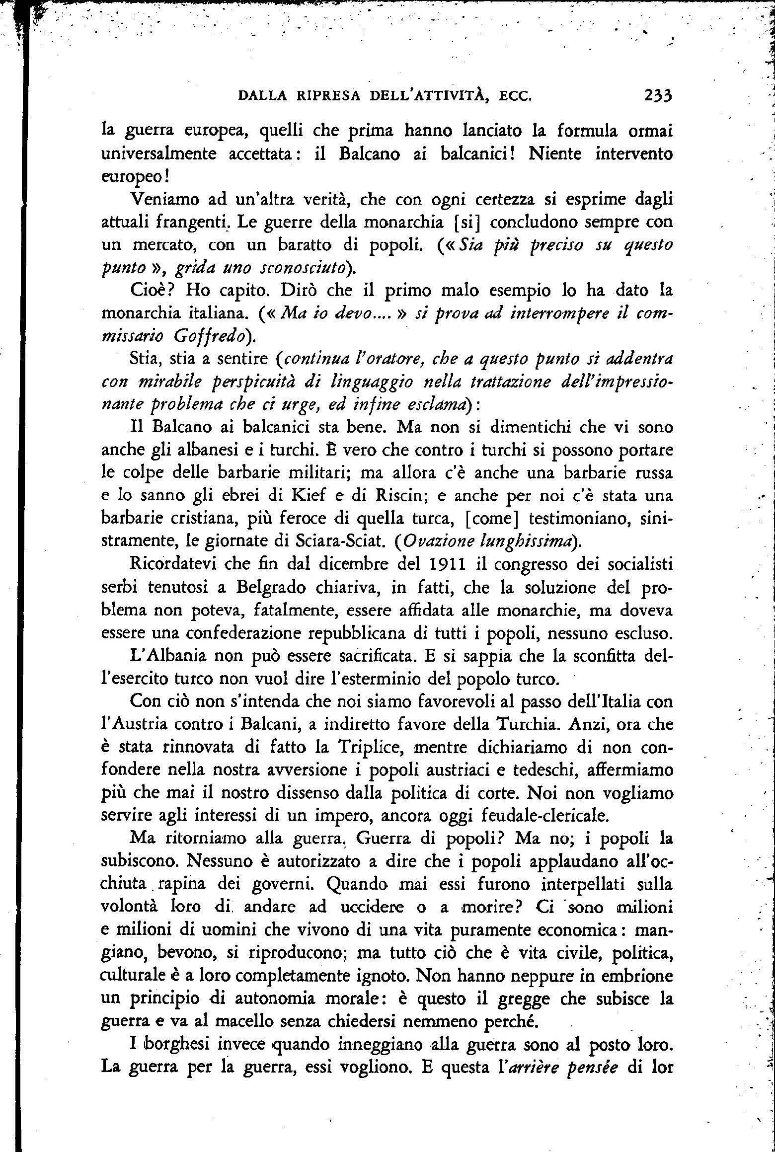 In questa libertà grande di critica è la mia piena giustificazione, e se la pacifica.iione invocata deve significare rinuncia a questa libertà, io rinuncio, per mio conto, alla pacificazione e mando all'inferno i conciliatori.