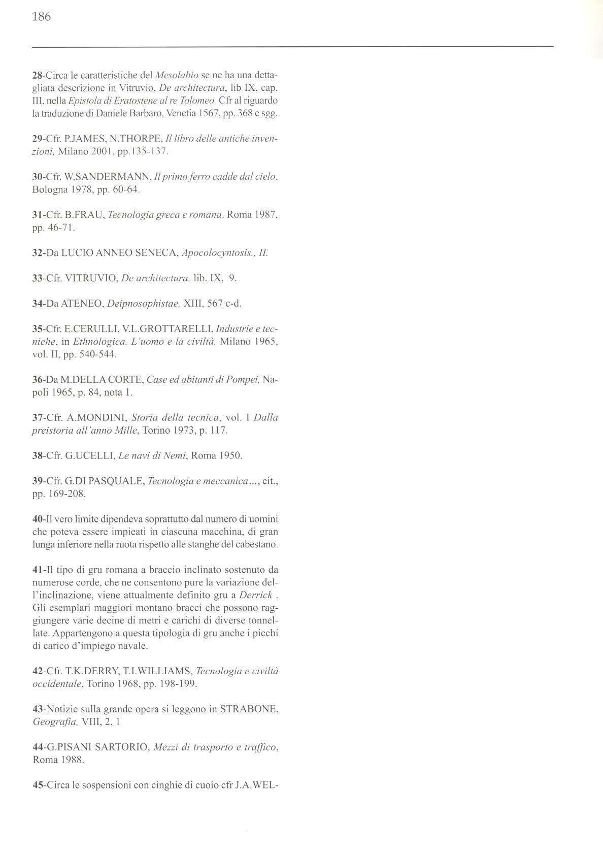 Per evitare il rischio, semp re in agguato per ricerche del genere, di ravvisare realtà tecniche anacronistiche si è ricorso a un triplice vaglio. L'interpretazione di qua lsia s i reperto non è stata considerata probante senza una men z ione, sia pur laconica, nelle fonti e ne l le raffigurazioni Tre l ivelli di riscontri, archeo logico, lettera r io e iconico per non cadere nella fantarchcologia.