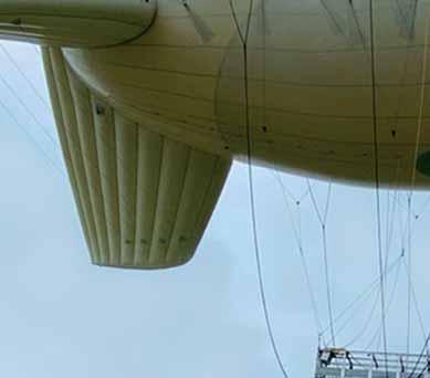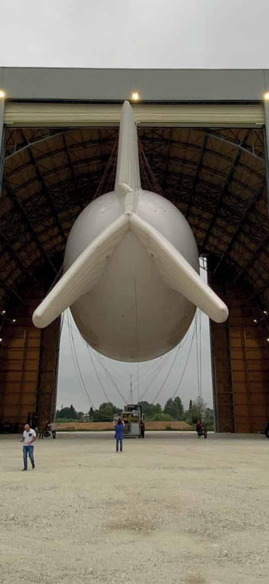 The operating principle is the same as the old airships and hot-air balloons, supported by the thrust ofhelium, which, being lighterthan airand non-flammable, floats according toArchimedes' principle, i.e. to the volume of air it can move. lt can reach 350 meters in height and launch up to 12 paratroopers for each flight exercise.