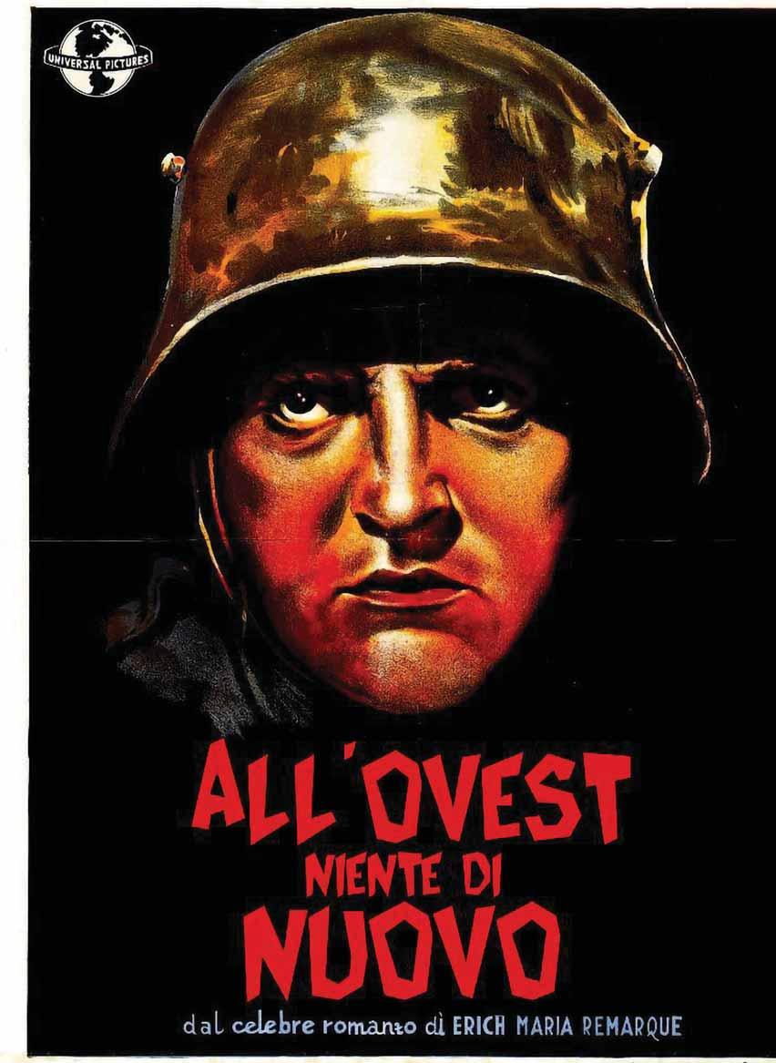 Germania, in un piccolo paese si fe-no tra fanfare, applausi e donne che abbandona la parata e attraverso unaincita i giovani studenti ad arruolarsi come volontari richiamandoli al dovere buttando a terra libri e quaderni, convinti che la guerra sia più importante(USA, 1930), tratto dal romanzo di Eridella guerra sovvertendo gli schemi che il cinema bellico aveva attuato allora erano stati offerti agli spettatoripietra miliare non solo del cinema di guerra, ma del cinema in generale sia per contenuti e modernità narrativa, se poi teniamo conto che il sonoro aveva fatto la sua comparsa solo 3 anni di Alan Crosland in cui la parte parlata era di poco più di un minuto (il restoviamo dinanzi a qualcosa di davverogia da cinema muto, ma andrebbe esplorato fotogramma per fotogramma per meglio poter apprezzare tutte