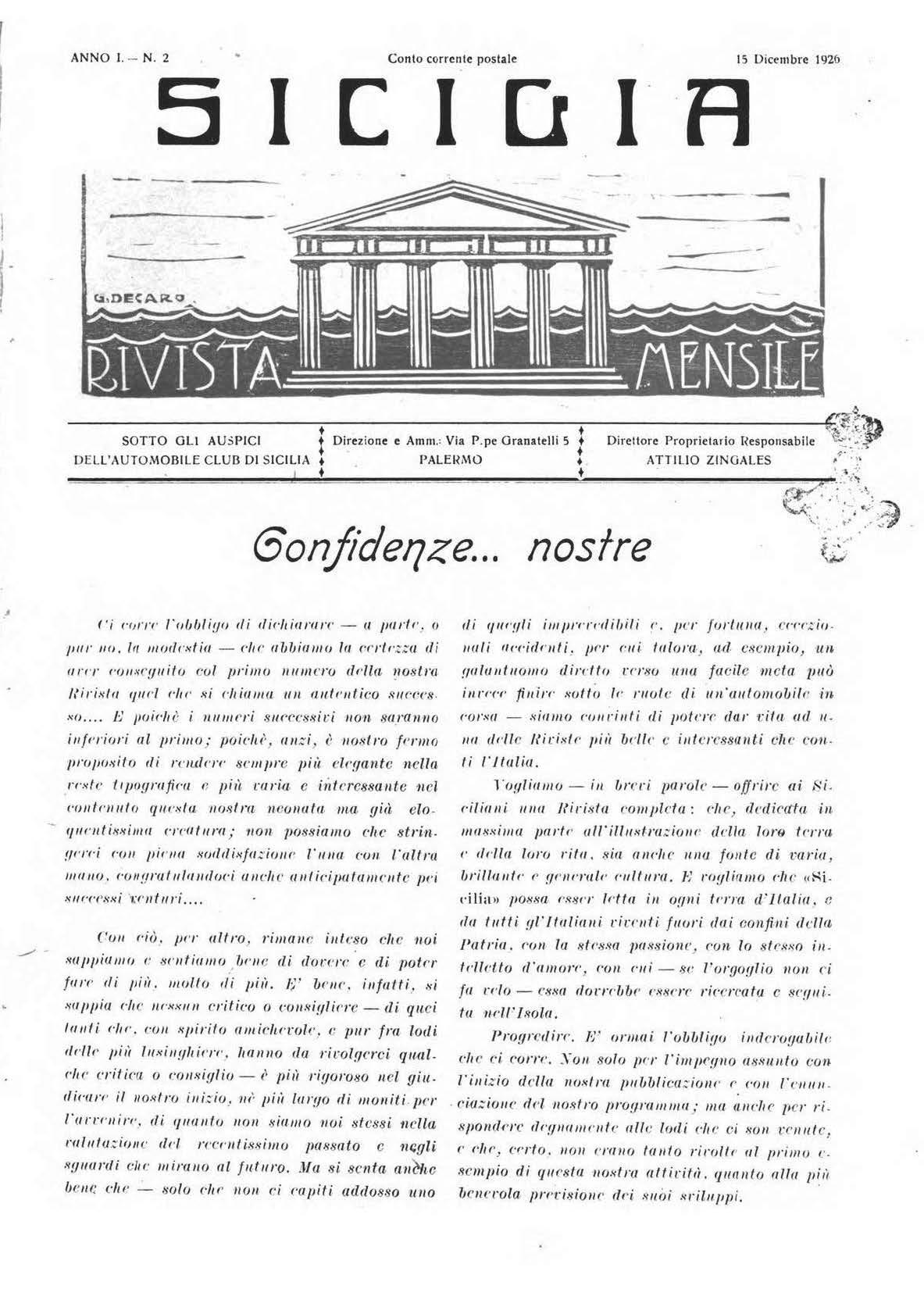 E an co m d i'i 11ostri tJrozJ os iti molto eli pitÌ vo rrem mo <lire: ma for se so t ta nti ch e a (·Ont,e ni entemente or co t-rcm•llbt:ro piÌlJJa!fin c tli qnant e ouestlun en t e ne comporti una so pportabile Solo. pt•r ji11Ìrt' 1 'l:ogliamo clt c al piiÌ p resto , fin dal pross imo IIIWllTO , Ùlizi r rt!llto la. J!Hhli li w:;ionc di u1w s zn<ci al f', co n 1111 num er o lH pagin e, da cli:fl imdt •rsi {fl'fllll i talll i· llt e all't )St ero. cowv i nti che asslti piìt 11tile tlel co mpito ch e JJOtrt'c lllO esercitanl lanciando in pat si vicini e lo11tani 'il ri ohiam o tlr.lla 110stra terNt, suscitato d tt 11 0 / e ecl assai JIÌ tì ttl ih sa rlt qu ello clt e cn llliCWIO d i dov er e e (li. potere .<wolg en• jrn -il popolo liO.'Itro, co n qu r sla normal e c/11.' 1:if1W cu1t:h all'Estero olt r e n el Conlillt' lllf: rl' Italia, ma ch e si rit•o lrt e J>ÌIÌ ai Sù: iliani. J>oi clt è è il popolo di Si c ilin chf , 1Jrim a , IH' II pi1ì clt e ogni altra gcnlt:, di'l'ti valuta re (t pi eno tuttr.. la ma estù dd StiO passato, tutto il ./èts oillo ddla suct lMTcr, luttct la ]JOtenza d elle su e stesse tropp o iguora te o mal co uost:iut e lif't·e sap1u·e iult•lld er e l ' in caut o clte l ' hola d el so l e suscita fra i l on taui , tratmdo ogni alnlo lli in amo1·el:o li e d evoti p ellf!!J1·inaggi; e d1•ve, dunqu P, sopt•r dil'lmlare un s1·mpre più d eff ii O Cltslotle di qu es ta tara millenna ria, 11n ospi t e semp r11 piiÌ prufl'l i o di ri ce rcatori fli !JlOri e e fli bell e::;a , c 1111 assiduo crl'atore di li/loti iu fJ IU 'sla ill r all l f'l'Ofr sr d e fornitagli dalla. natura, e cons a cr ata 11er · ffliO dall'm·t e merat:iftliosa di'gli al'i! "S IClLIA