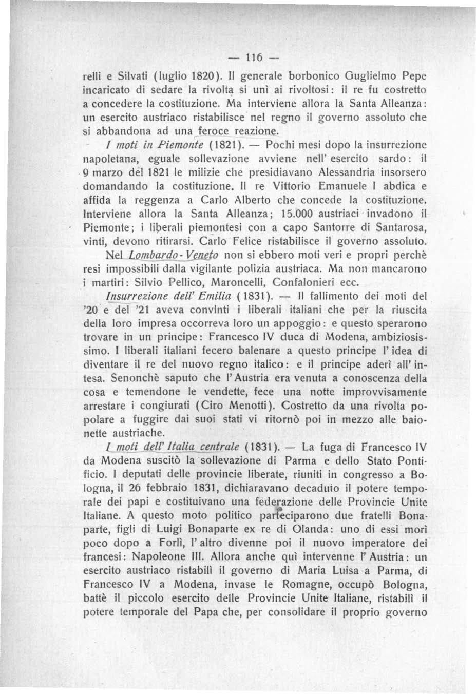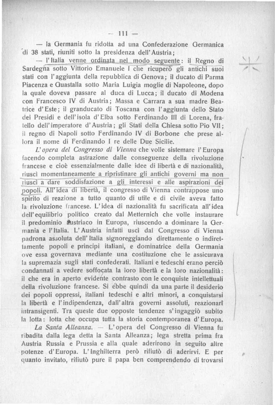 Il Congresso di Vienna e la Santa Alleanza. - Le restaurazioni . . » 109 moti popolari e le carte costituzionali. - Oli avvenimenti in Piemonte e nel regno delle Due Sicilie sino al t848 :. t 14 le Rivoluzioni europee fino al 1848. - l moti in Italia fino al 1848.