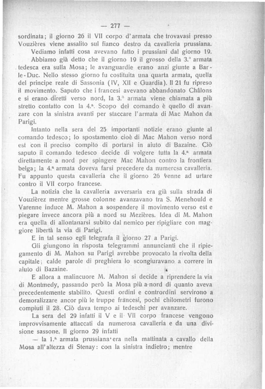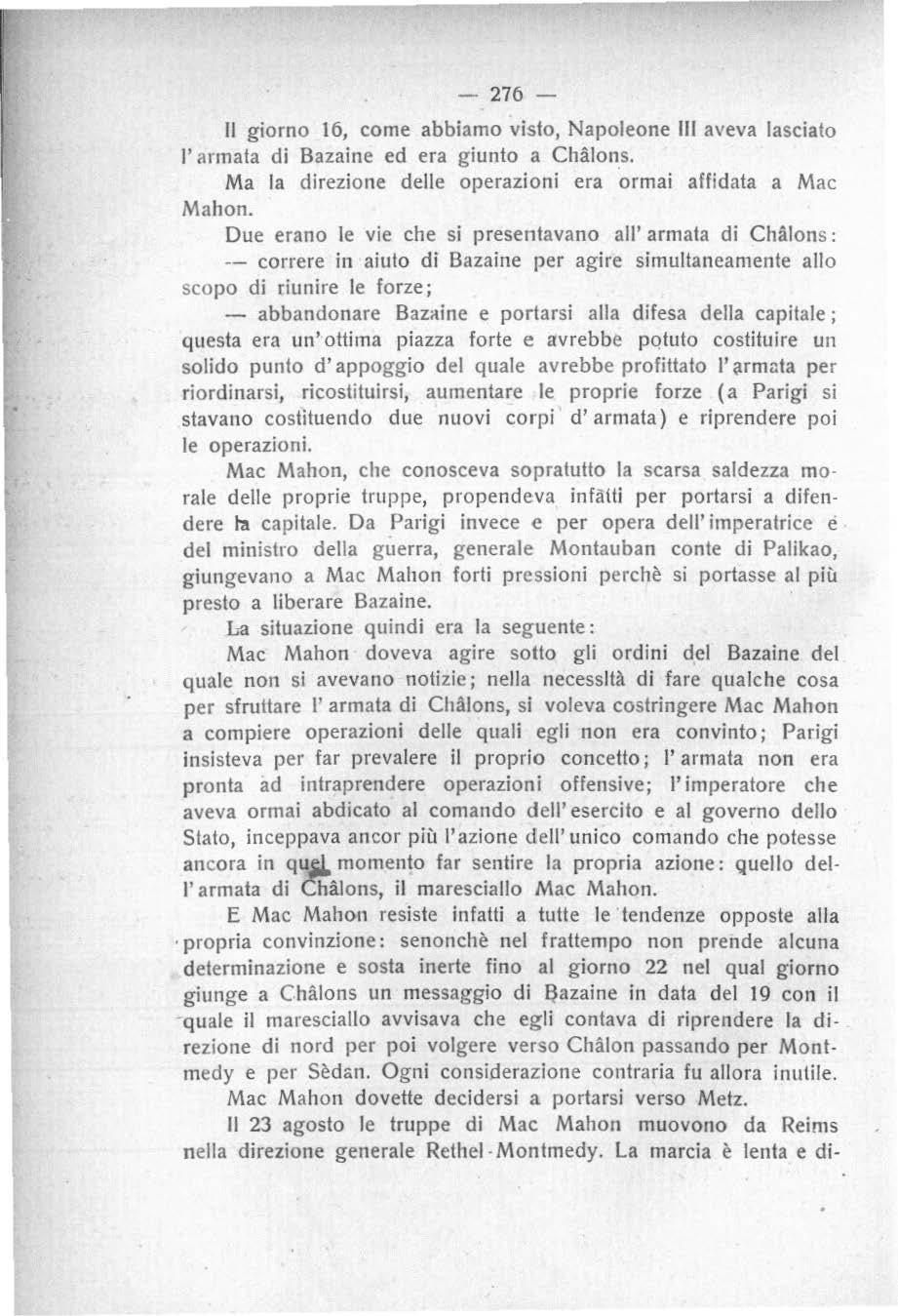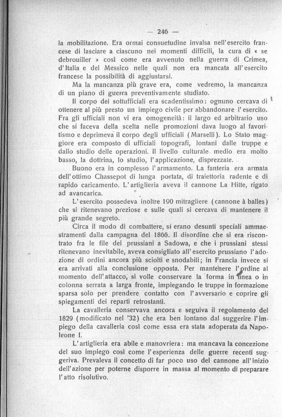 Il completamento dell'unità germanica attraverso la guerra franco prussiana del 1870· 71. - Le operazioni di questa dall'inizio fino all'investimento di Metz e quelle contro l'armata di Chàlons. - La resistenza francese dopo Sédan. - Il trattato di pace di Versailles. - La definizione della questione Romana. pag 243
